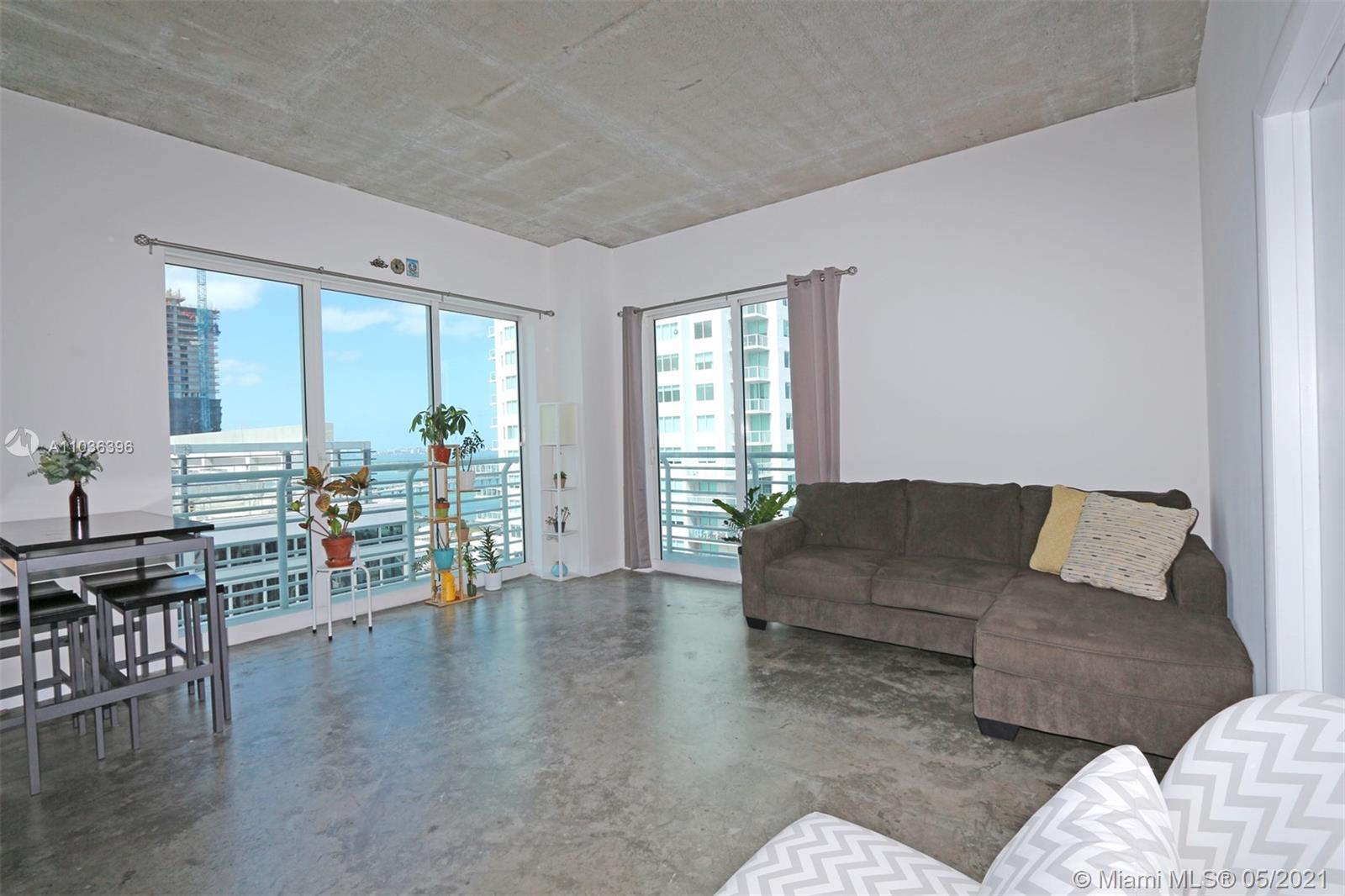 Beautiful corner unit on the 31st floor of the Loft II, with an amazing water view. Overlooking the city, and a wrap around balcony. Modern polished concrete floors with open floor plan. 2 bedrooms, and 2 full bathrooms with an open kitchen design. Both bedrooms are enclosed for full privacy. High 10' ceilings with sliding glass doors by the living room. Lots of daylight and stunning balcony view. All stainless steel appliances. Building has 2 pools, which includes roof top pool and lap pool, roof top fitness center, spa, jacuzzi, sauna, steam room, full service building, and club room. Walking distance to many shops, and restaurants. Five minutes away from Brickell.