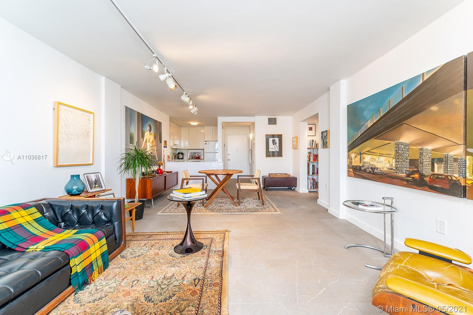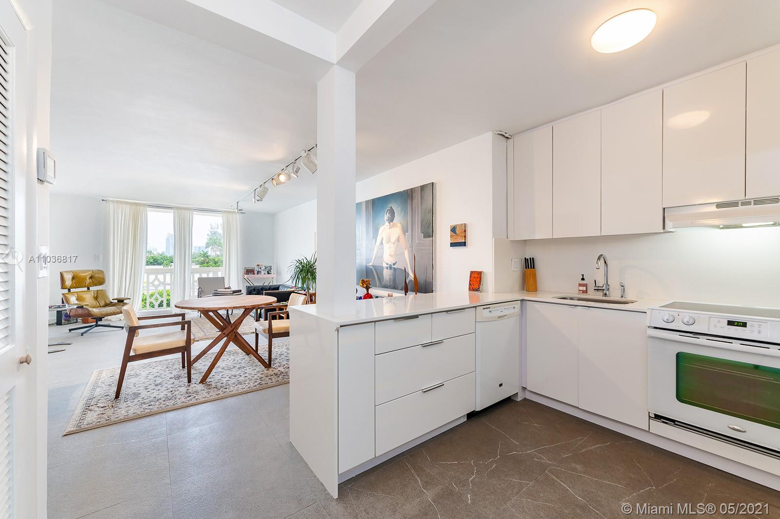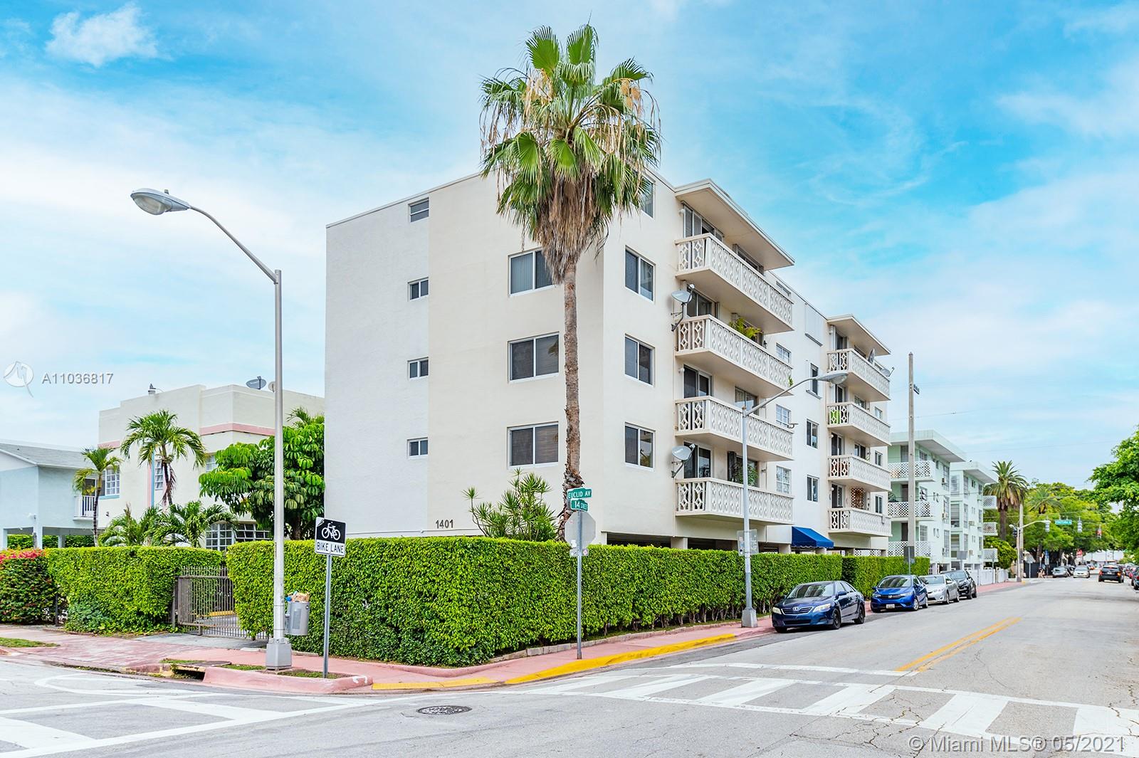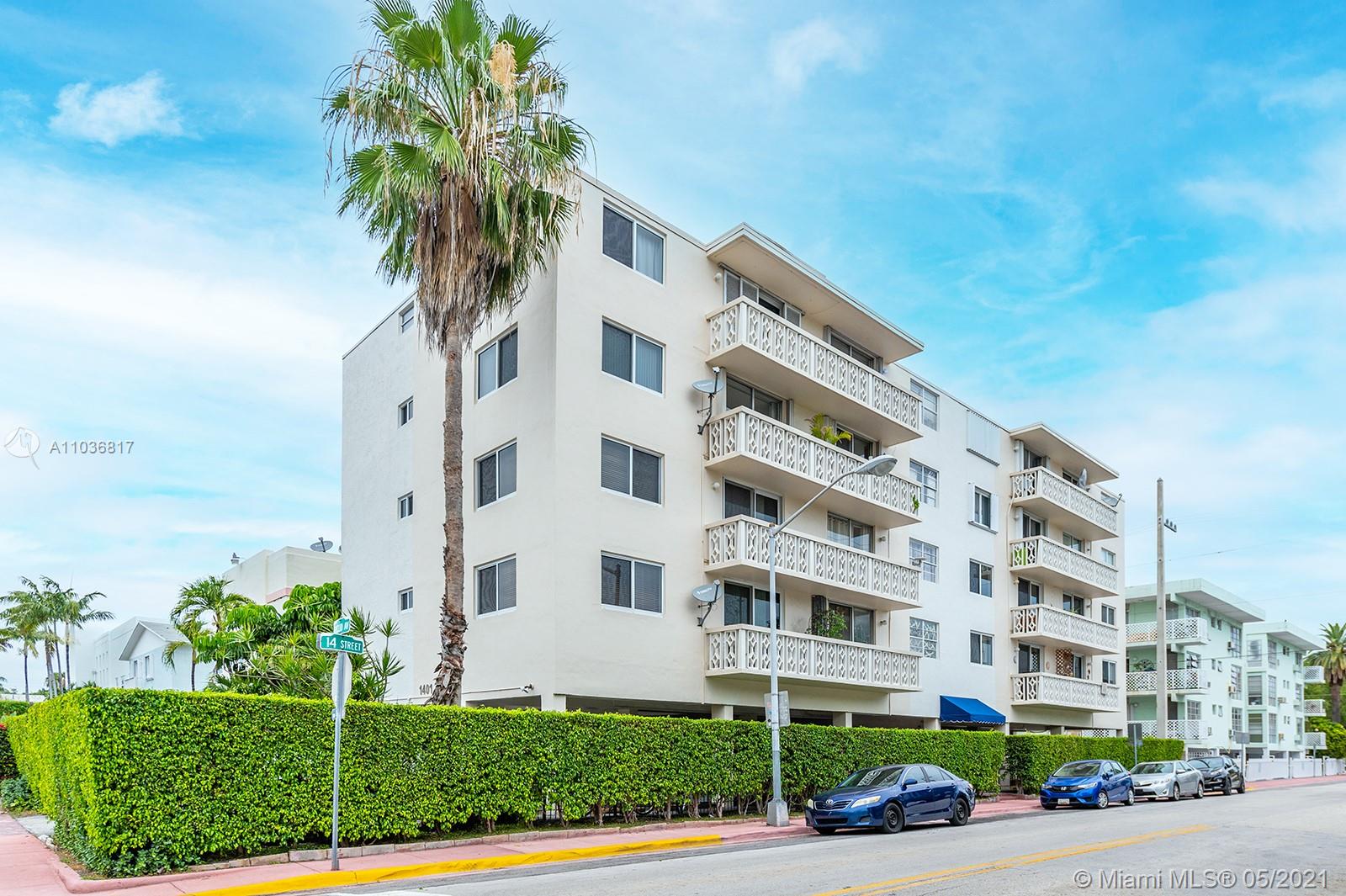 Renovated with style this well designed spacious corner residence is the perfect full time home or pied-a-terre. Fantastic layout, completely renovated, open modern kitchen, porcelain floors, south facing living room with balcony offers a peek of the South-of-Fifth skyline. High end bathroom with beautiful vanity. Generous walk-in closet plus extra storage throughout apartment. Impact windows, brand new A/C! Monthly maintenance includes reserves. Secure covered parking space. Amazing location is close to beach, Lincoln Road and Espanola Way cafes and shopping, and Flamingo Park amenities.