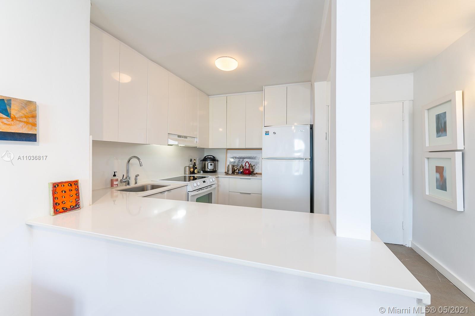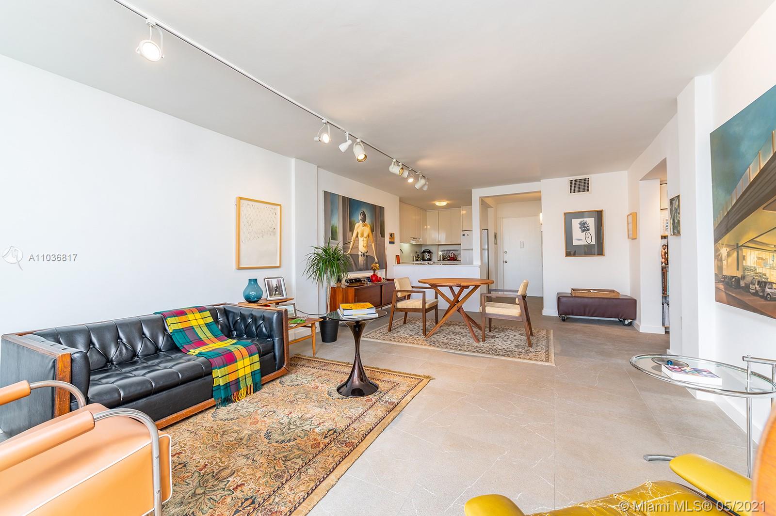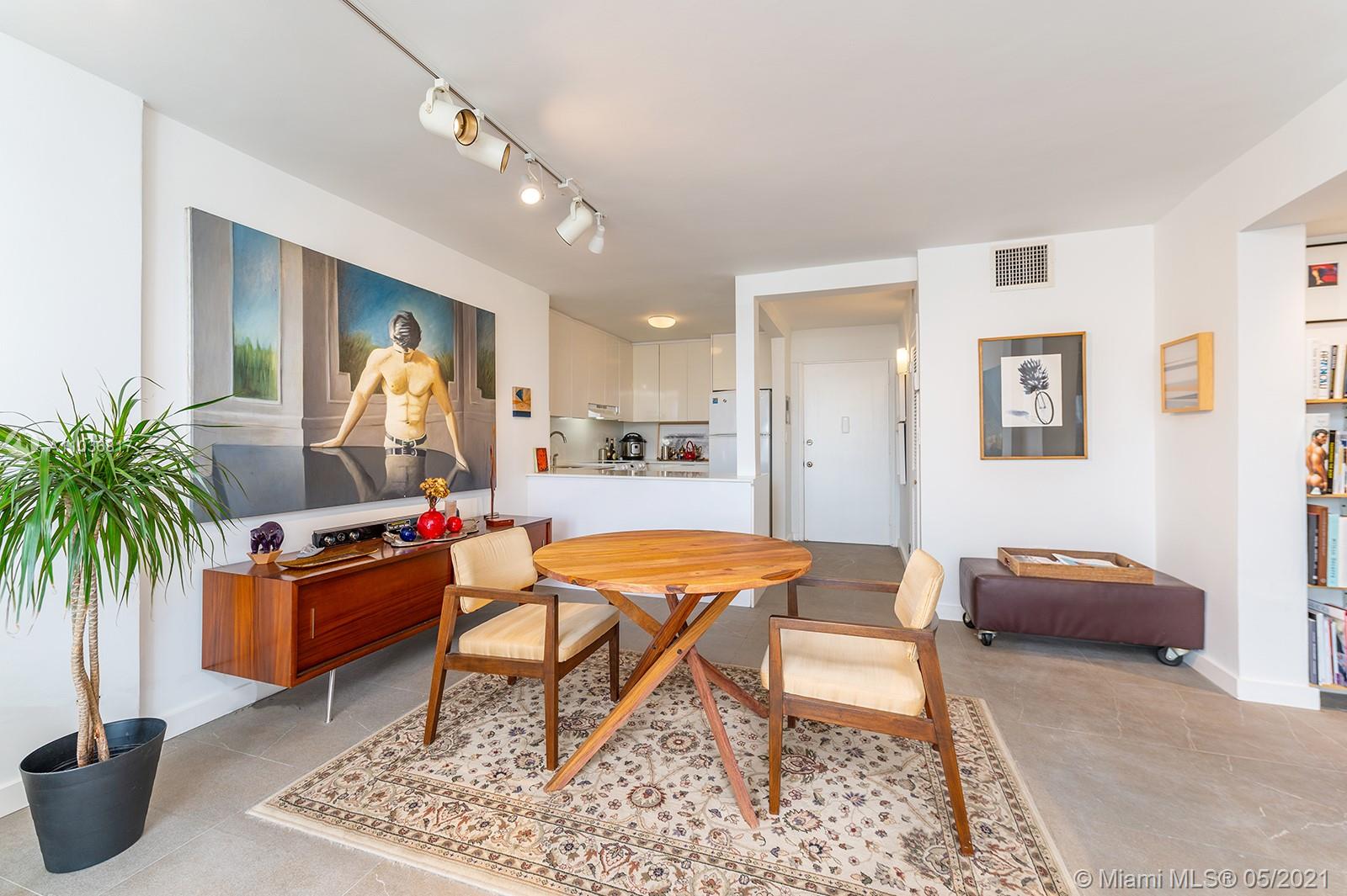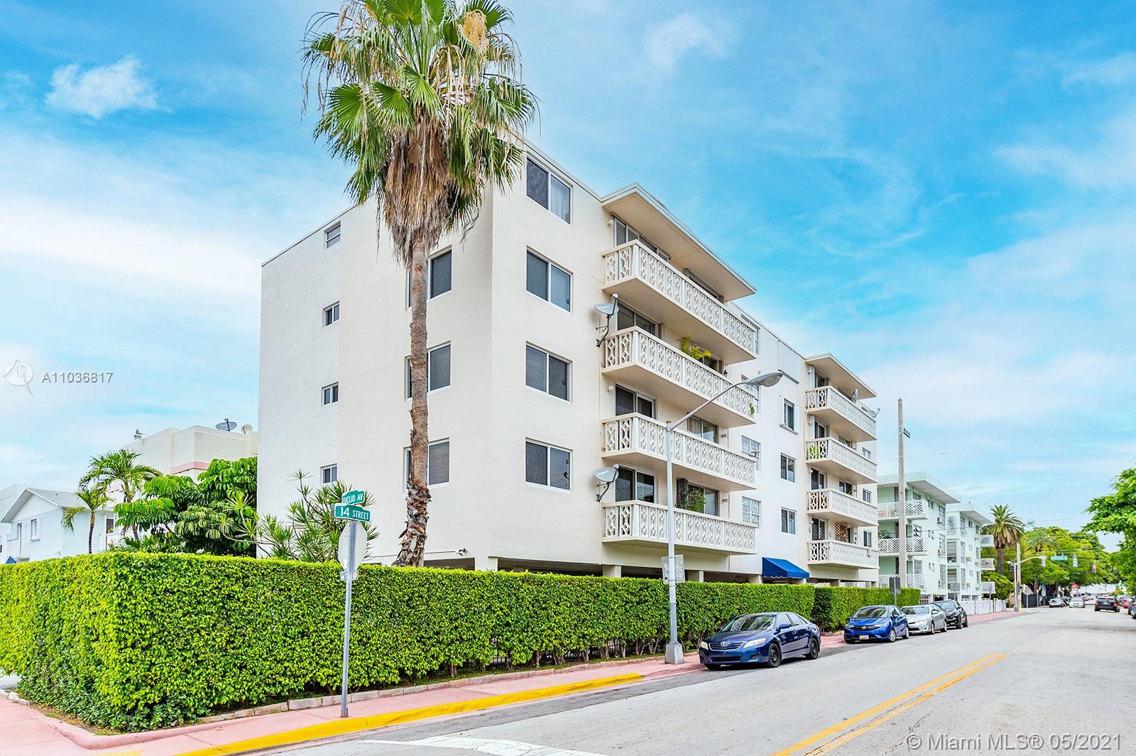 Renovated with style this well designed spacious corner residence is the perfect full time home or pied-a-terre. Fantastic layout, completely renovated, open modern kitchen, porcelain floors, south facing living room with balcony offers a peek of the South-of-Fifth skyline. High end bathroom with beautiful vanity. Generous walk-in closet plus extra storage throughout apartment. Impact windows, brand new A/C! Monthly maintenance includes reserves. Secure covered parking space. Amazing location is close to beach, Lincoln Road and Espanola Way cafes and shopping, and Flamingo Park amenities.