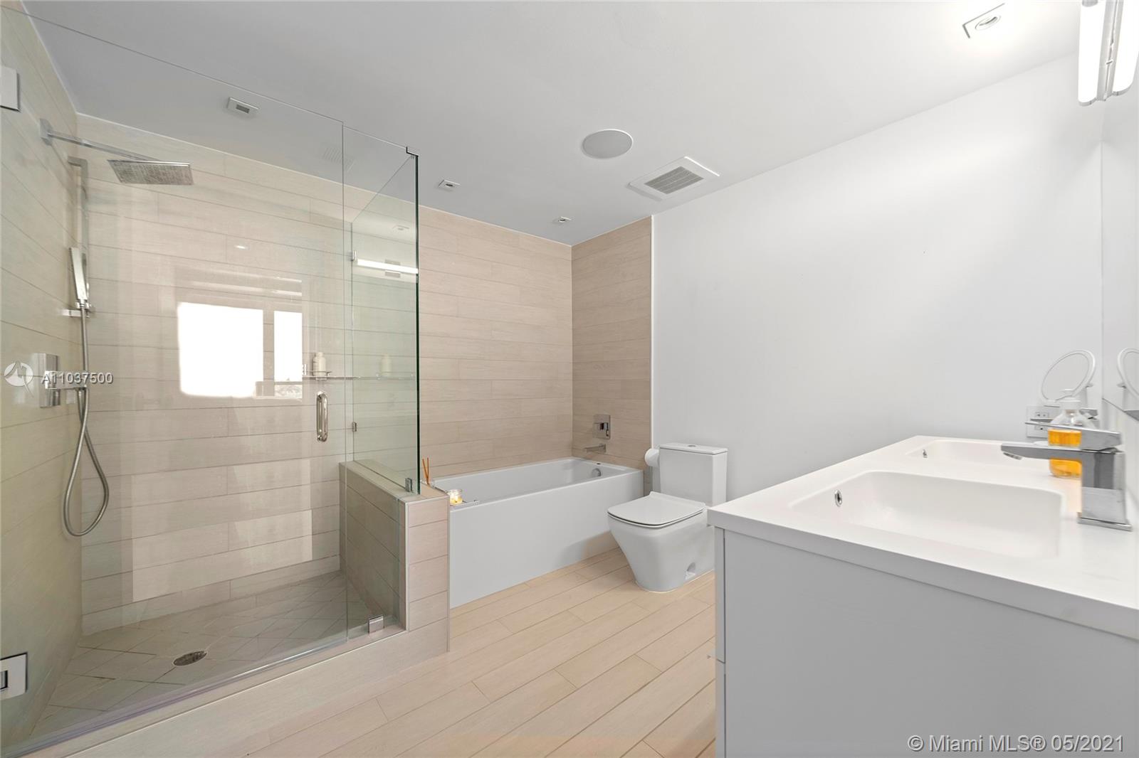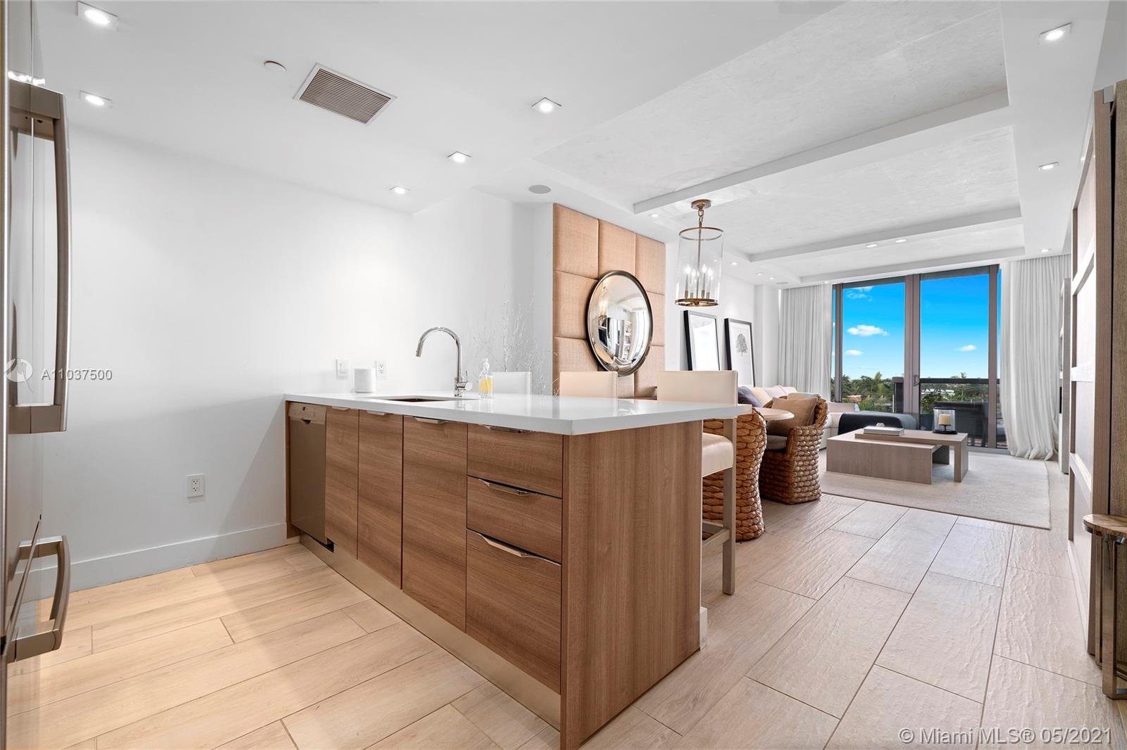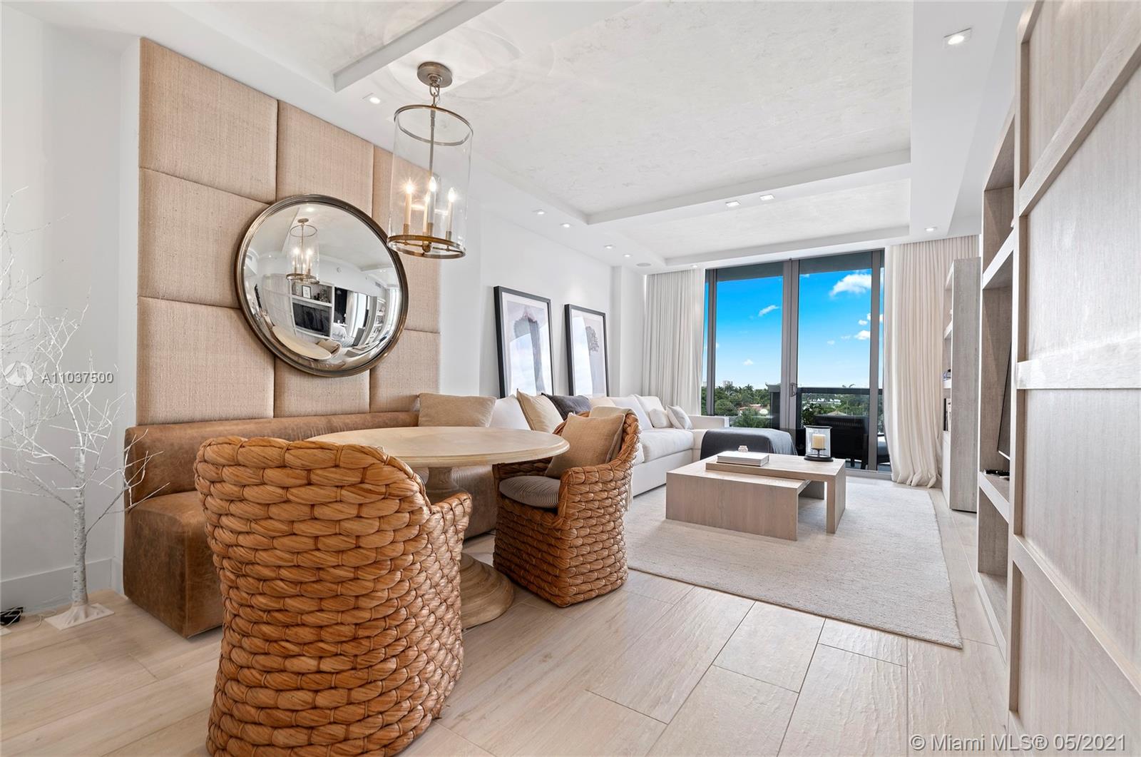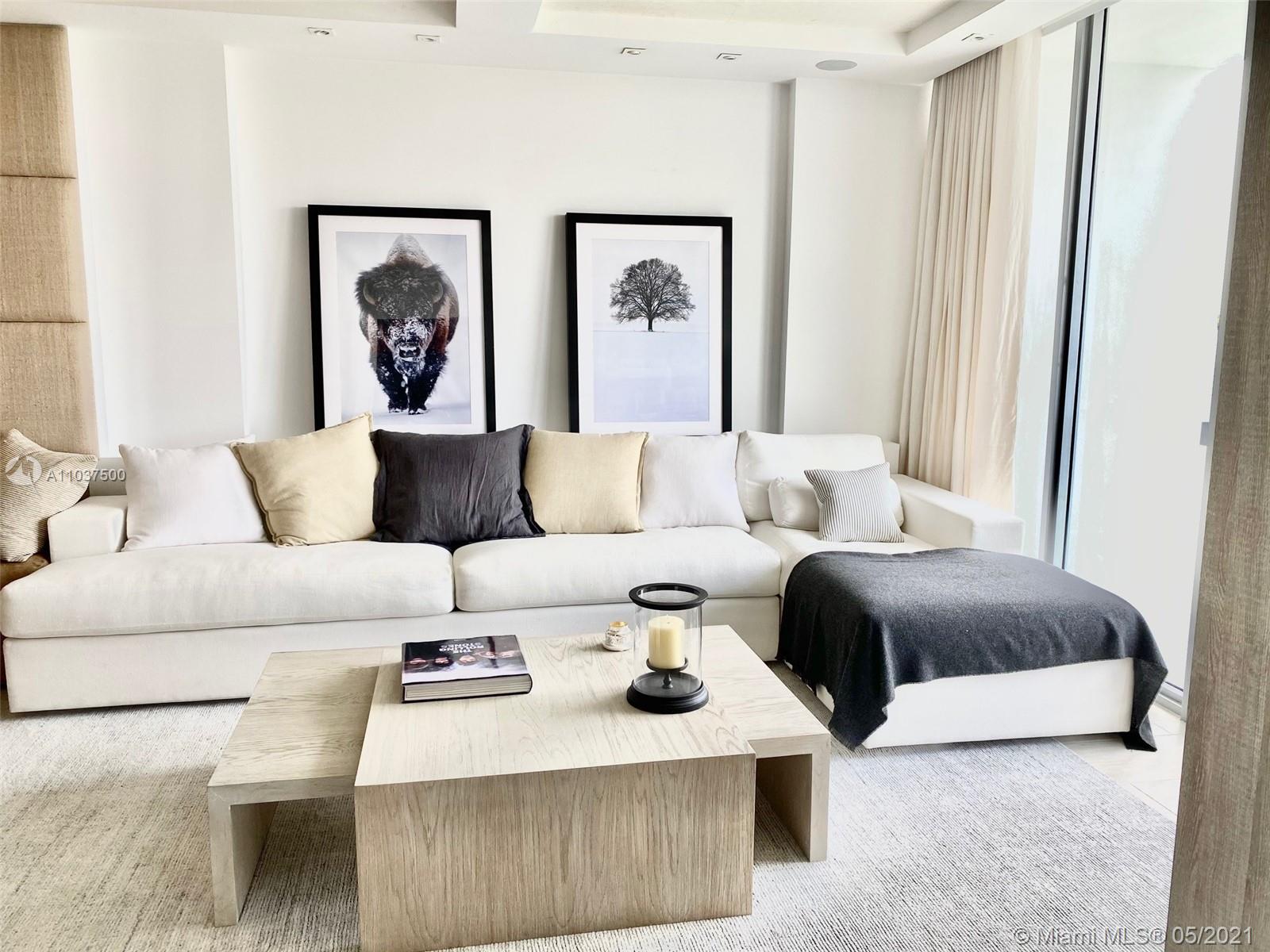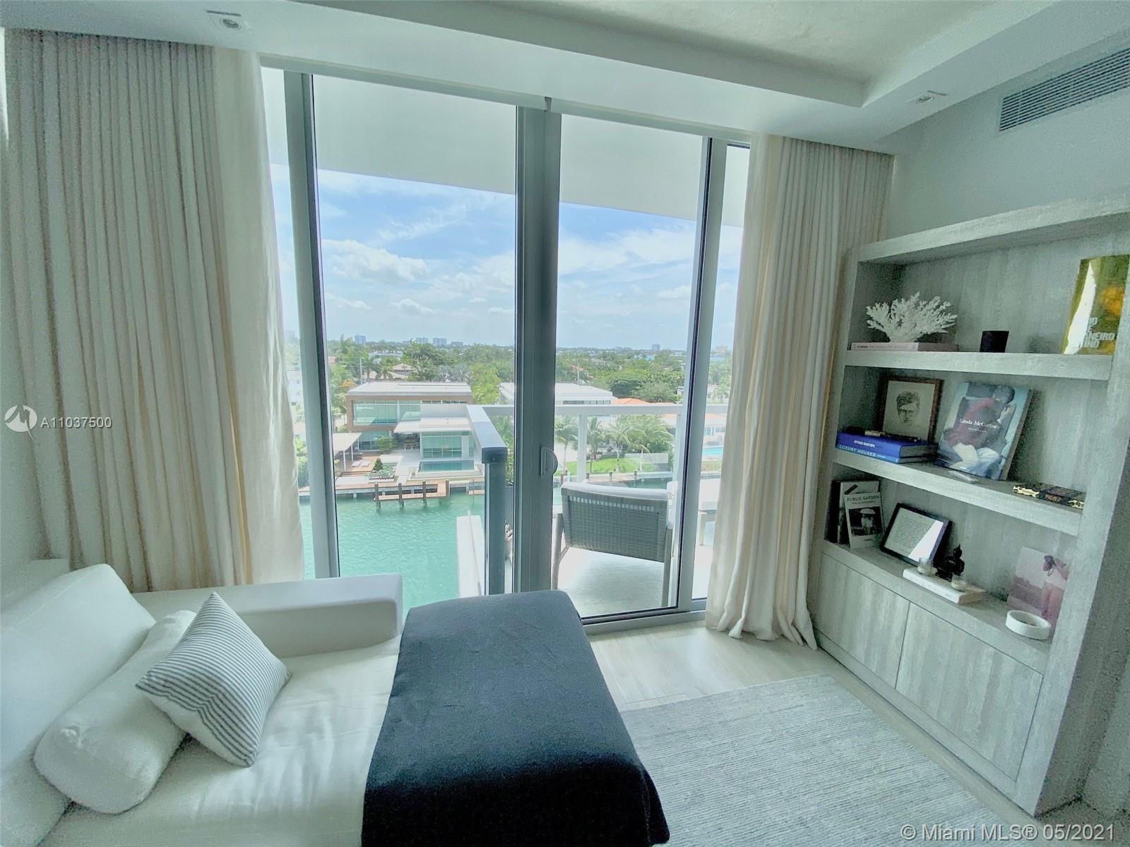 Waterfront living & enjoy westerly water & sunset views from modern 1 Bed + Den & 2 Bath residence at KAI Condos in Bay Harbor Islands, FL. Boat slips possible for purchase or lease. Use as a 2/2. Unit features 9' ceilings framing unobstructed views from wall-to-wall, floor-to-ceiling glass walls and balconies. Building amenities include rooftop infinity-edge heated pool, Jacuzzi, fireplace, BBQ area, gym & party room. KAI is a boutique waterfront 57 unit building walking distance to Haute Shopping at the Bal Harbour Shops, fine dining, local cafes, & beaches, as well as Houses of Worship. Quality Public Schools include: Ruth K. Elementary, Nautilus Middle, & Miami Beach Senior High. Offered unfurnished, but furniture negotiable. Pet friendly (1 pet < 40 lbs). 1 assigned parking.