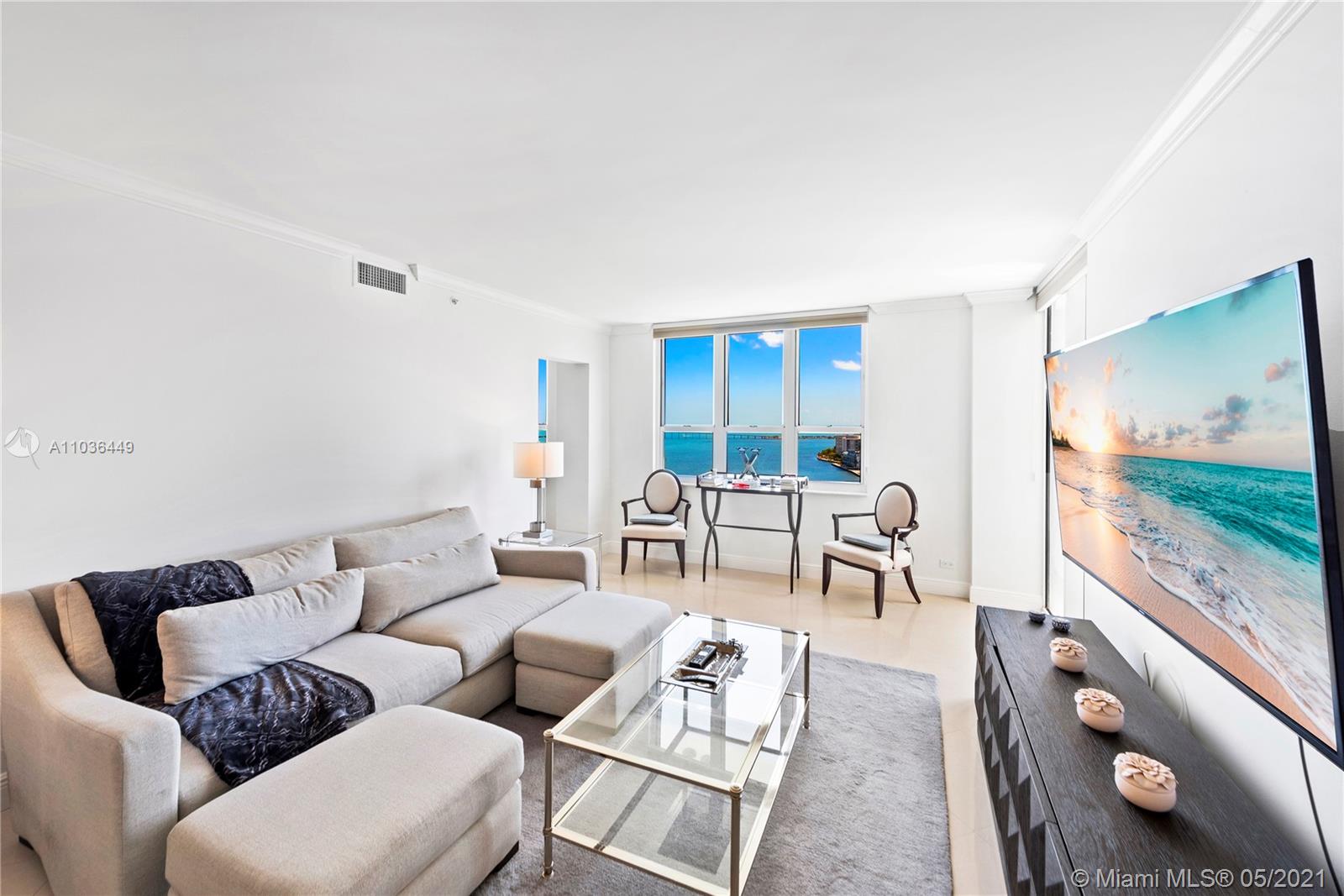 Enjoy breathtaking water views from this stunning 3/2.5 corner residence at the luxurious Courvoisier Courts in the prestigious Brickell Key Island. This unique split floor plan provides stand-out features such as a blend tile and carpet flooring throughout, 2 balconies, and 2 parking spaces. Resort-style amenities such as racquetball courts, a billiard room, a bayside pool, a 2-story state-of-the-art fitness center, 24-hr concierge, valet, security, and more make it easy to enjoy the Miami lifestyle.