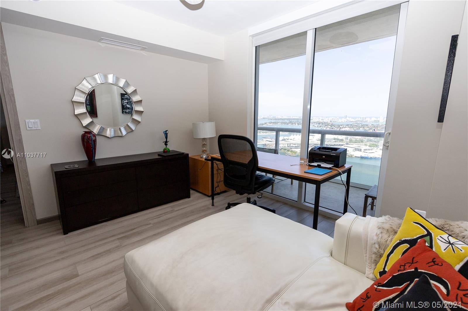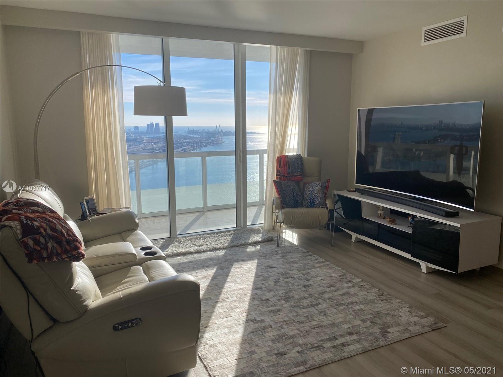 LOCATION! Heart of city with a multimillion dollar VIEW!! EVERY ROOM and your FINISHED balcony unobstructed VIEWS bay, cruise ships, port & Bayside Fireworks! Pride of ownership in 2-2+DEN is evident! Meticulous detail built ins, his/her closets, flooring, doors, hinges, handles and trim! The contemporary soft colors reflect downtown lifestyle, all within steps of the secure entry. Walk to The Perez Art Museum, AAA arena, Bayside Park and Marketplace, Dine & shop WholeFoods are only part of location! 50 Biscayne has it all, the 3 story lobby with lush greenery and soothing water feature, the 10th floor Oasis features infinity edge pool, cabana, state of art gym. The revitalization of "FLAGER STREET" will be the BEST of Miami's New Downtown! FURNITURE Negotiable! Den unit is included!