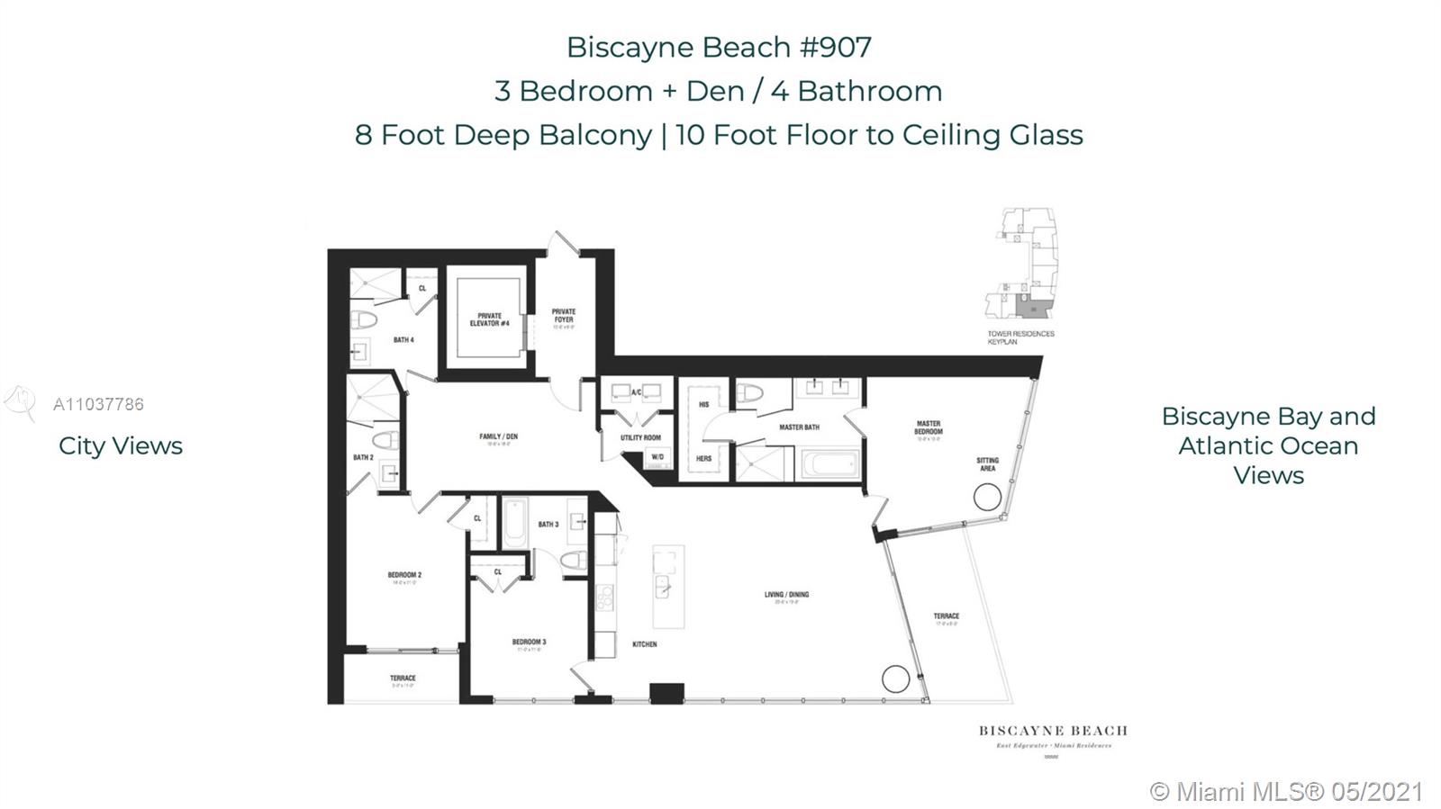 ***COVETED SE CORNER** Hear the bay breezes passing over palm leaves, bask in the sun, and take in the beauty of Biscayne Bay with unobstructed views through floor-to-ceiling windows and doors. This fabulous 3 bedroom + den w/4 bathrooms includes 1 parking spot, private elevator and foyer, 2 balconies, and, storage, Miele appliances. Building amenities are among the best in Edgewater with concierge; security; valet; 2 tennis courts; basketball; dog park; 2 pool decks w/cabanas, day beds, chaise lounges, and summer kitchens; spa w/ treatment rooms, locker rooms, sauna & steam room; fitness center; library; theatre; pool tables; business center, and bay-walk!