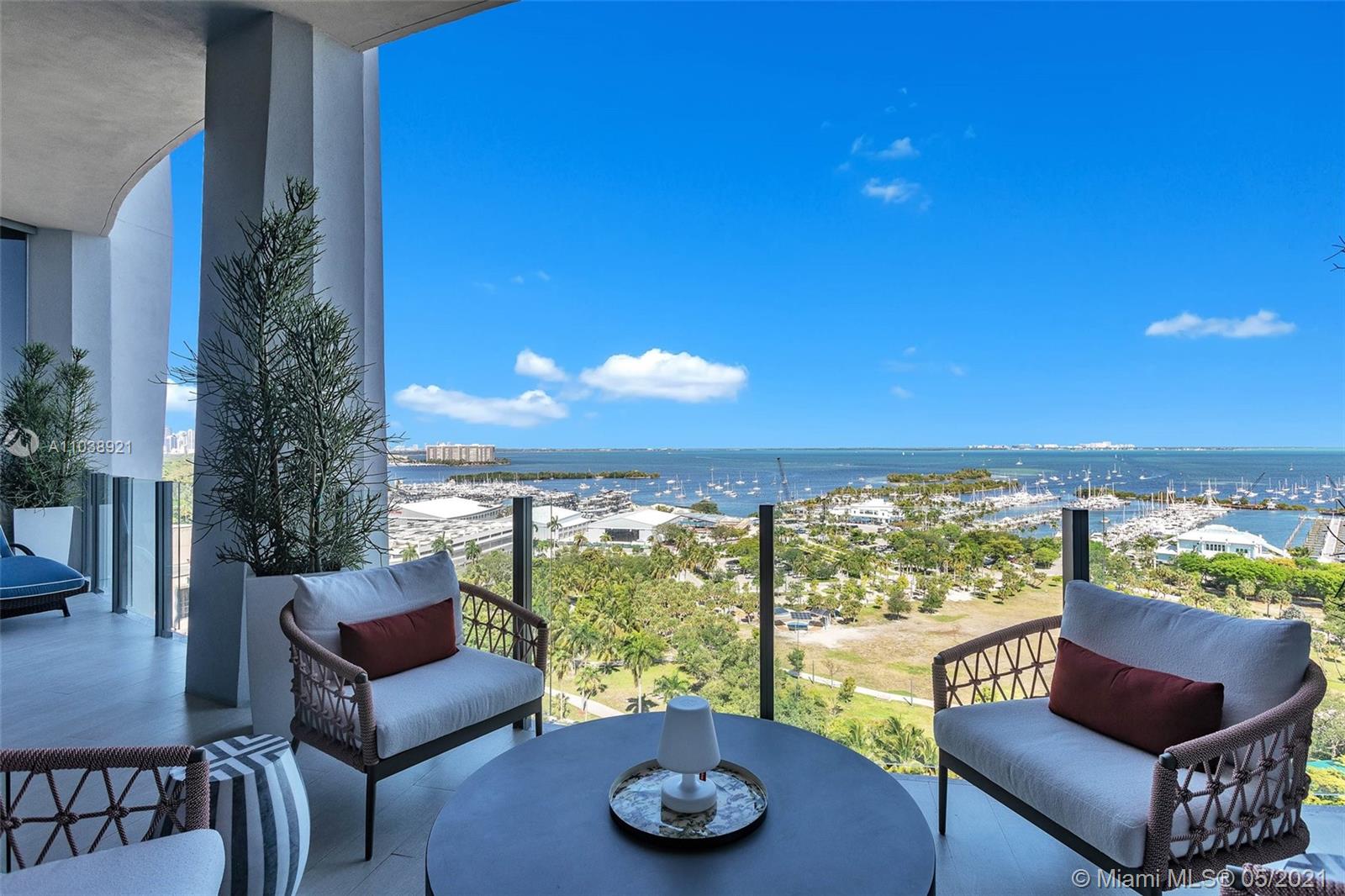 Welcome to 15C at One Park Grove, a beautiful 2,232 Sqft, 2 bedroom 2.5 bathrooms + den unit located in the heart of Coconut Grove. This decorator-unit has access via a private elevator and features 12ft. ceilings, tons of natural light and an open floor-plan with unobstructed panoramic views of Biscayne Bay, Key Biscayne, the Port of Miami, South Beach and the Miami Skyline. The chef’s kitchen comes with Subzero/Wolf, appliances, marble countertops and an ItalKraft Kitchen. Both bedrooms feature en-suite bathrooms and custom walk-in closets. Furniture and decor also available for sale. Arguably Miami's top building, Park Grove offers an in-house concierge and butler, 4 pools, library, screening room, gym, in/outdoor yoga, outdoor event space & wine cellar.