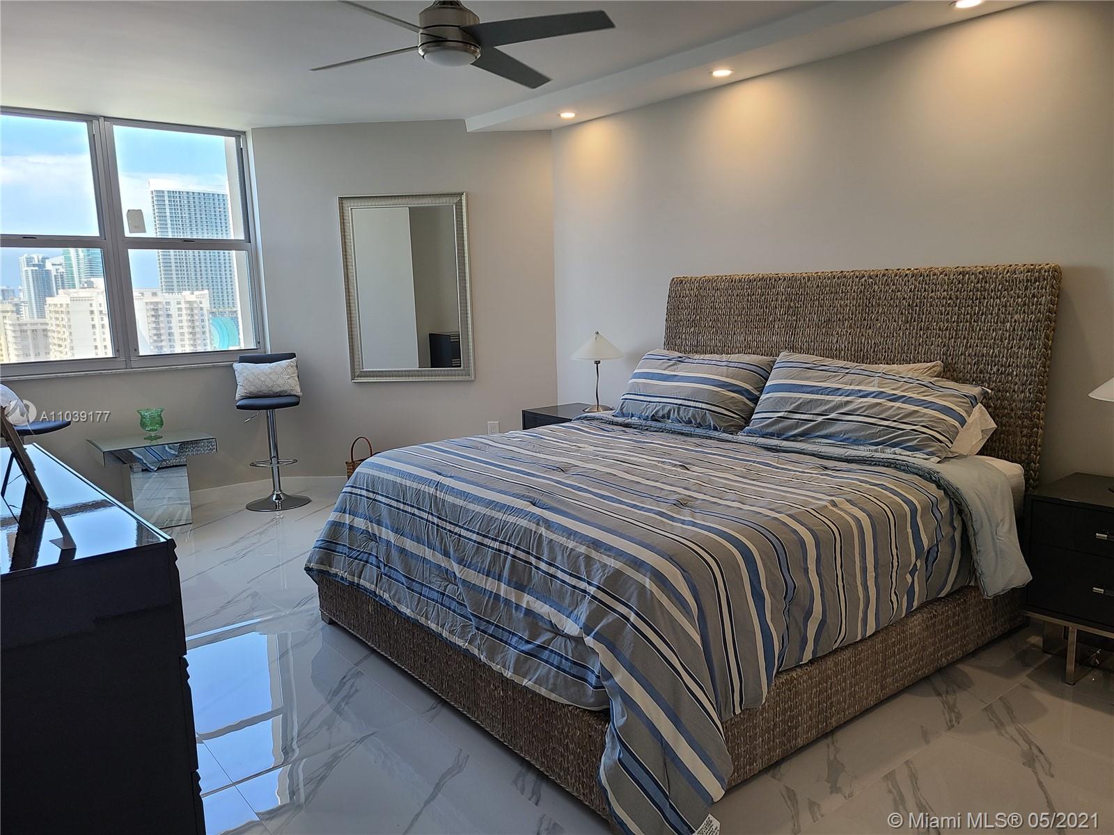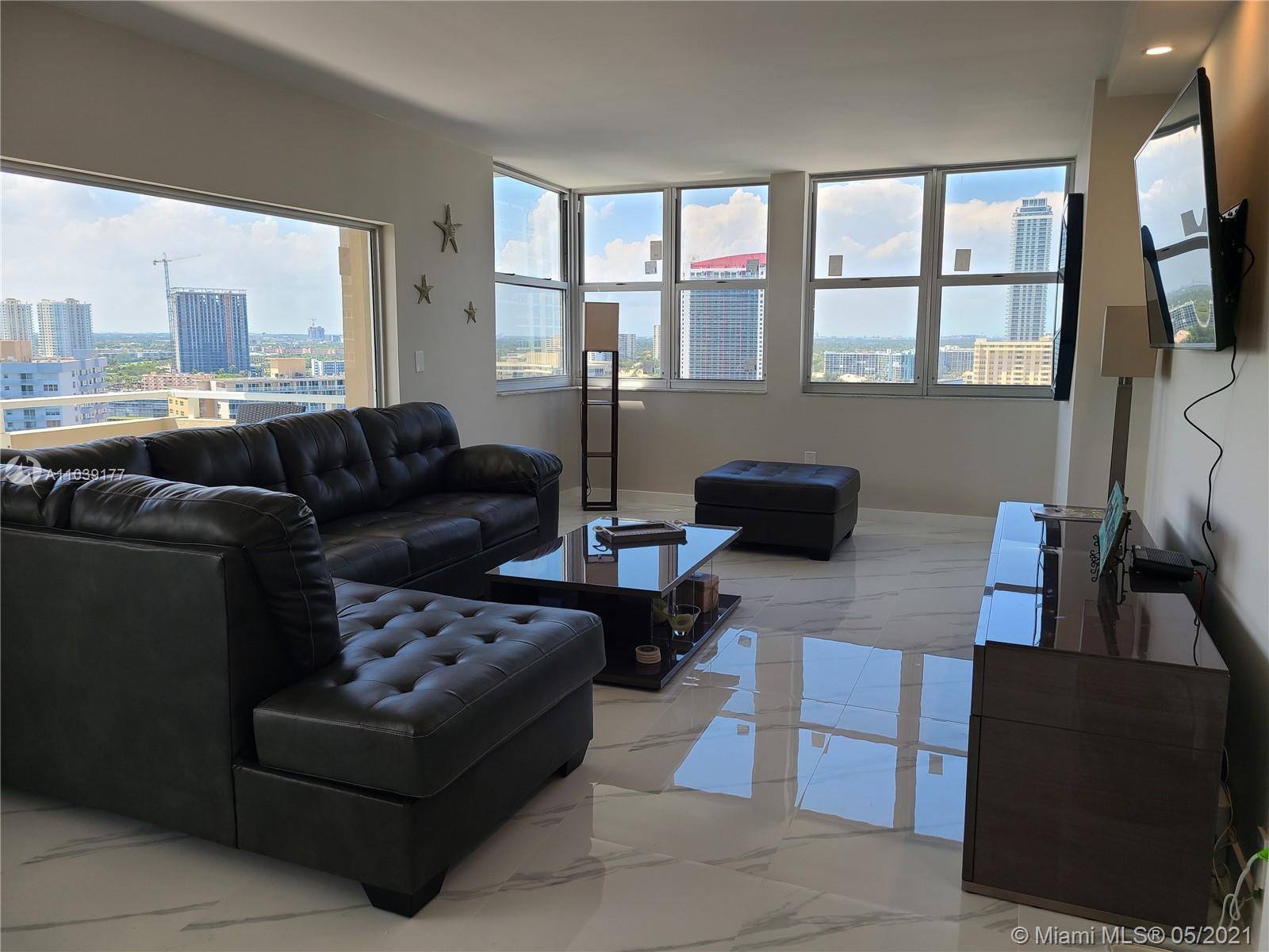 Absolutely Gorgeous, recently and completely renovated and remodeled to exacting standards. 2bd/2bth corner Penthouse with hurricane impact windows and doors, top of the line appliances with waterfall quartz countertop . Amazing Intracoastal, Ocean and Panoramic city views compliment this modern unit. It truly is breathtaking. Resort style amenities include, Beach Access, 2 Restaurants, 2 heated pools, snack bar, 2 mini-marts, 2 Fitness gyms, Sauna & Steam rooms, Beauty salon, Tennis courts, Marina w/dock available, Putting golf, Billiard rooms, Shuffleboard, Basketball, Children's playground, Barbecue area, Beach Service, 24 hr Security, Valet. Air conditioning, Basic cable & internet is included in the maintenance.