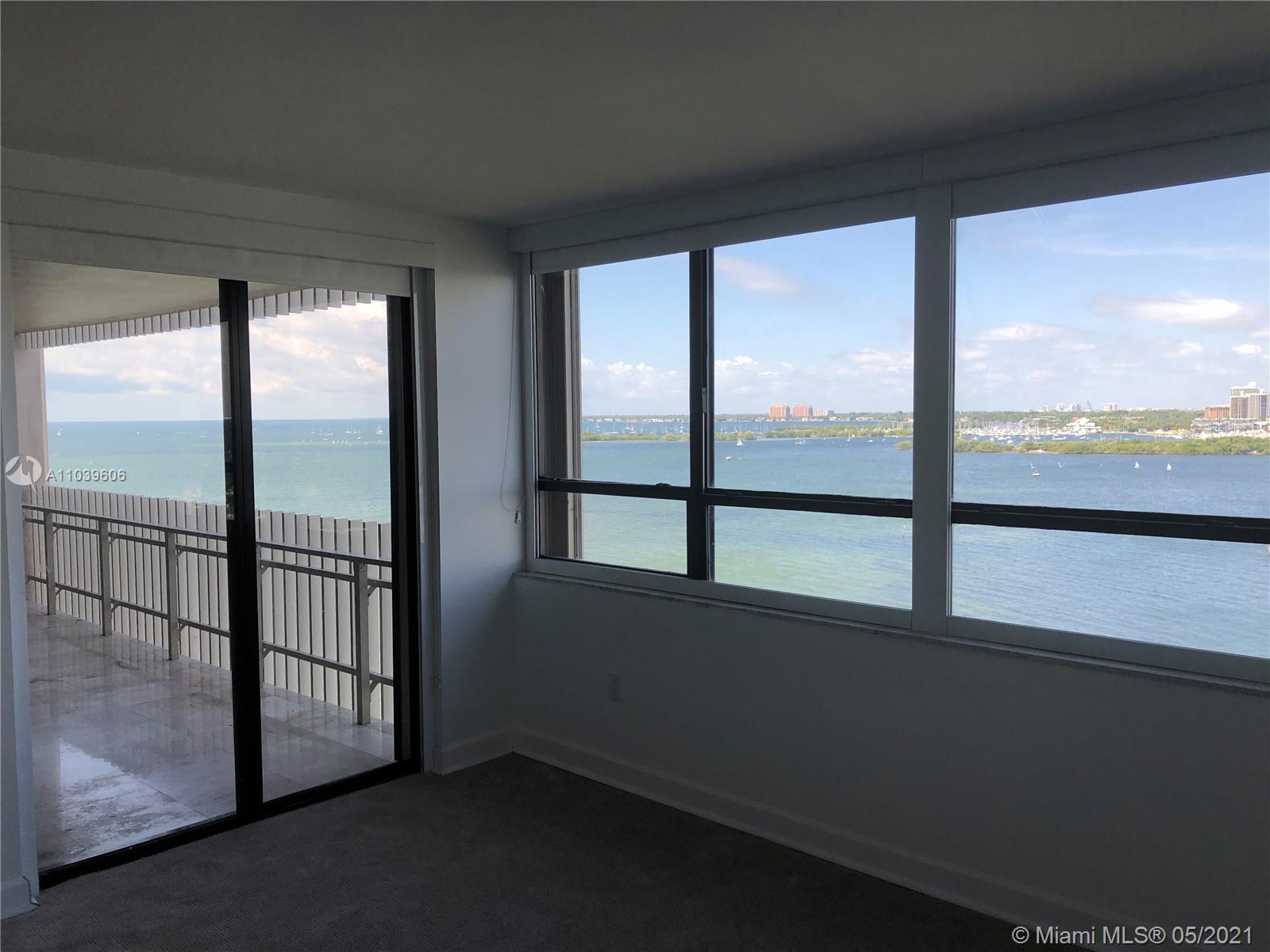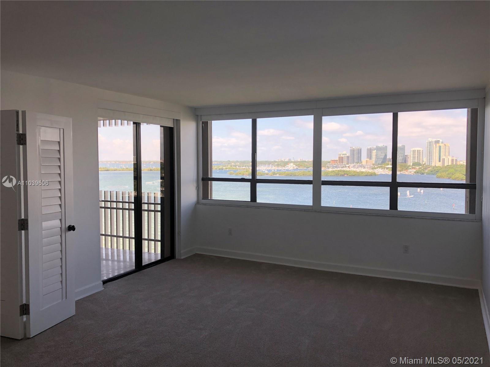 Spectacular rarely on the market, 2 bedroom 2 bath Split plan, with unobstructed 180º southern views of the Biscayne, Dinner Key Marina, Coconut Grove and Coral Gables. This rarely on the market apartment, comes with French doors in the bedrooms with a large walk-in closet in the master bedroom. Both bathrooms have been recently remodeled and the master bath features a separate bath and shower. The master bedroom features a large walk-in closet with built-in cabinetry. The kitchen is open to the living area with brown cabinets, black granite countertop, wall mounted oven and Sub Zero Refrigerator. This Island paradise features a full marina, Lit clay tennis courts, a malecón walkway to view the bay a small beach with bar b q area and storage for kayaks and paddle boards.