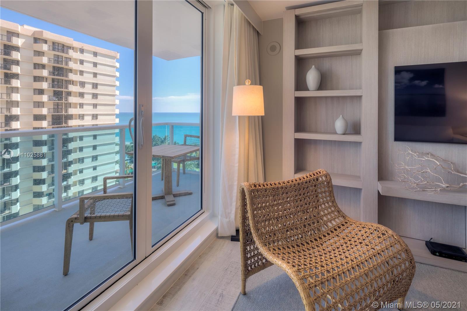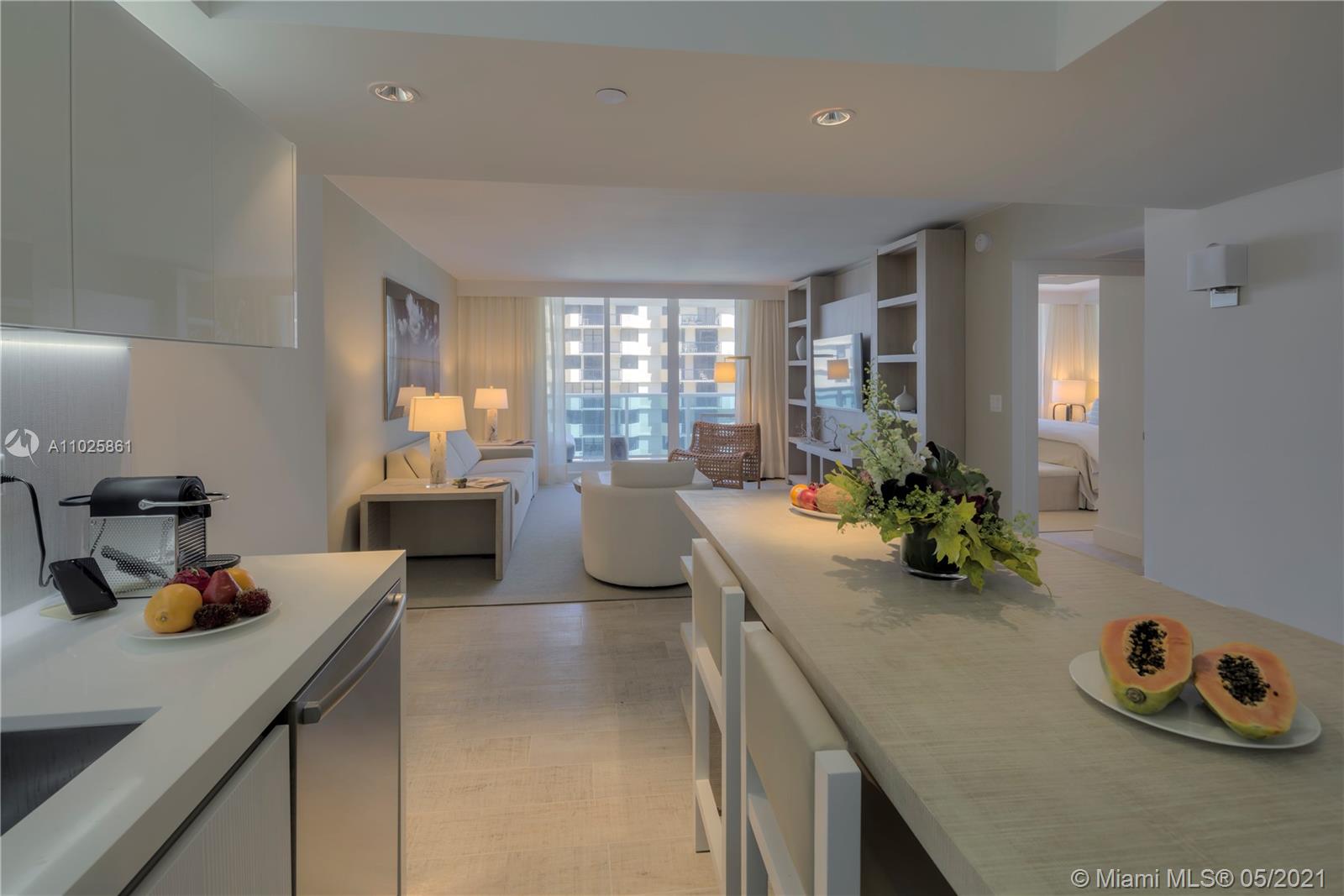 This gorgeous 985 Sq. Ft. 1 bedroom, 1 bathroom is the perfect combination of all things natural and organic in a luxurious setting. Enjoy the private fully furnished balcony complete with a custom double chaise lounge and a table set for two overlooking the Atlantic Ocean and Intracoastal. The living room has a plush white organic sofa that converts into a bed, and a gorgeous maple dining table. ItalKraft gourmet kitchen, sensual limestone bathrooms with luxurious Dornbracht fixtures. Enjoy a variety of services including a private fully-staffed residence lobby, valet attendants, personal concierge, and chauffeured Tesla SUV's. Eco-conscious amenities to include 4 pools, 4 restaurants, 3 bars, 14,000 sq. ft. gym, Bamford spa, hair salon, Soul Cycle, and mjuch more.