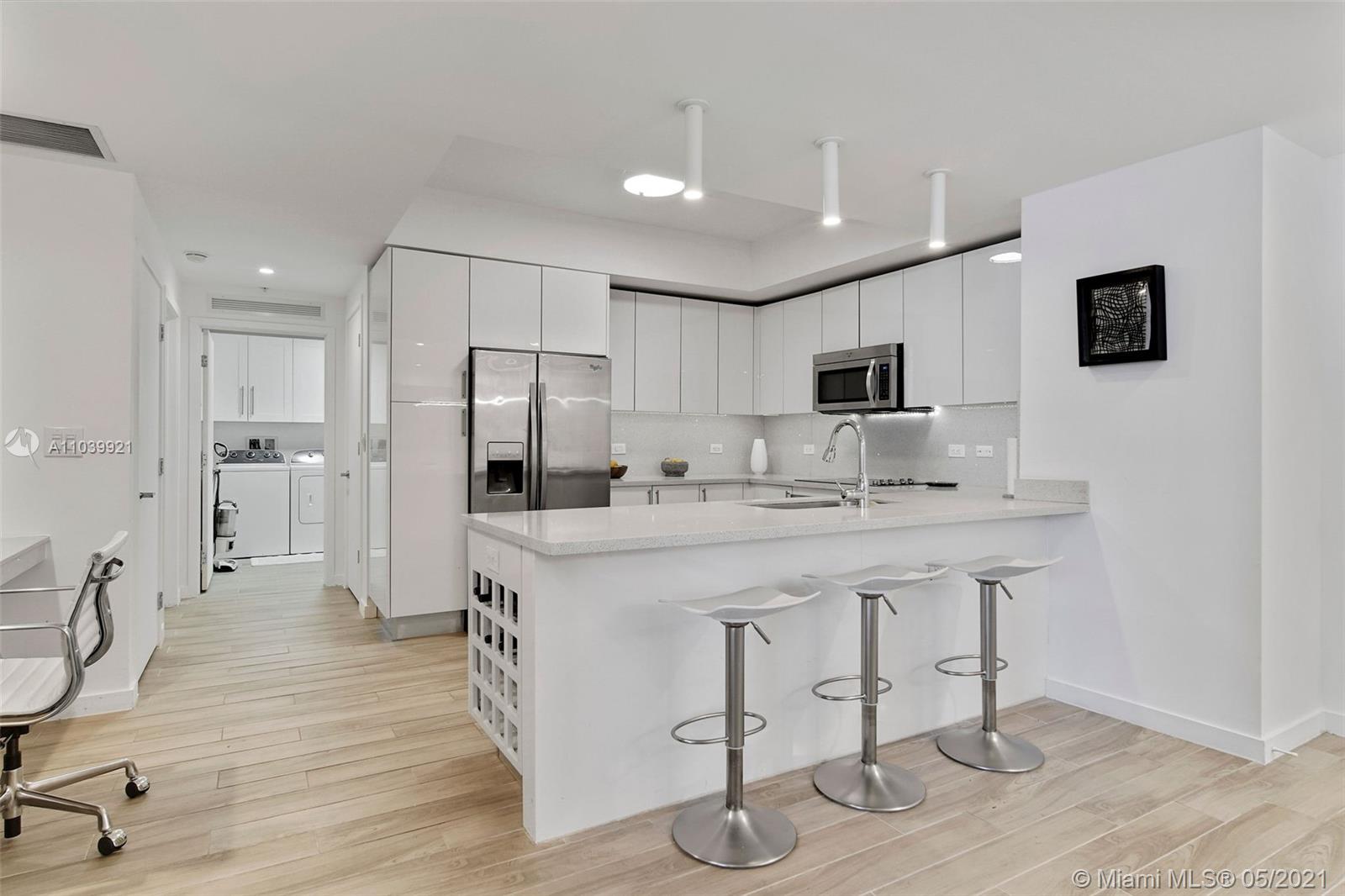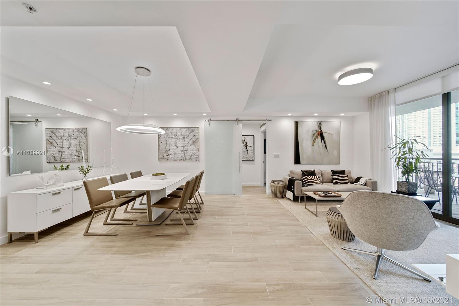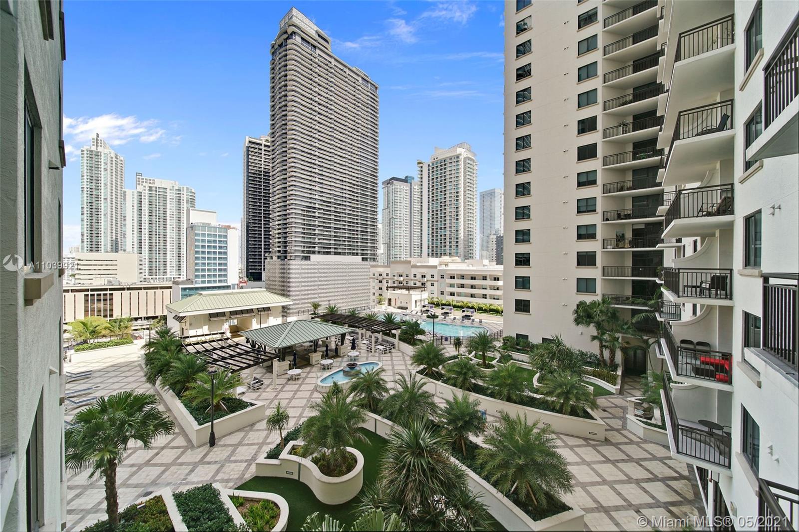 Walk everywhere! This beautiful, spacious, split plan two bedroom, two bath unit is 1,501 sqft!! The generous open living area was made for entertaining. It features the dining room, living room and an open kitchen with plenty of counterspace for someone who loves to cook. The separate laundry room is a great convenience. A glass door separates the second bedroom from the living area making it more of a private suite. Both bedrooms feature large walk-in closets. The master bathroom, double sinks. A courtyard view ensures the tranquility one needs to step away from the hustle and bustle of Brickell. The building offers a multitude of amenities including a pool, gym, business office, kid's playroom, as well as others. Work from home or nearby? This is the perfect place for you!