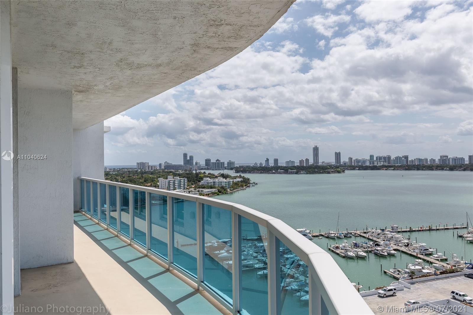 MAGNIFICENT 360-DEGREE VIEWS FROM THIS CORNER WATERFRONT CONDO IN NORTH BAY VILLAGE. BIGGEST WRAPAROUND BALCONY IN THE BUILDING. CEILING TO FLOOR GLASS WINDOWS IN ALL AREAS. TOP OF THE LINE APPLIANCES. DOUBLE SINKS IN MASTER BATH. WASHER AND DRYER IN THE UNIT. THE BUILDING IS FULL OF AMENITIES: GYM, BBQ AREA, POOL, HOT TUB, BOARDWALK, ATTENDED LOBBY, COVERED GARAGE. PET-FRIENDLY BUILDING.