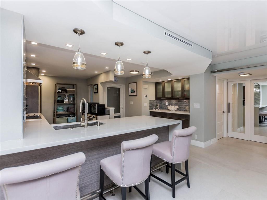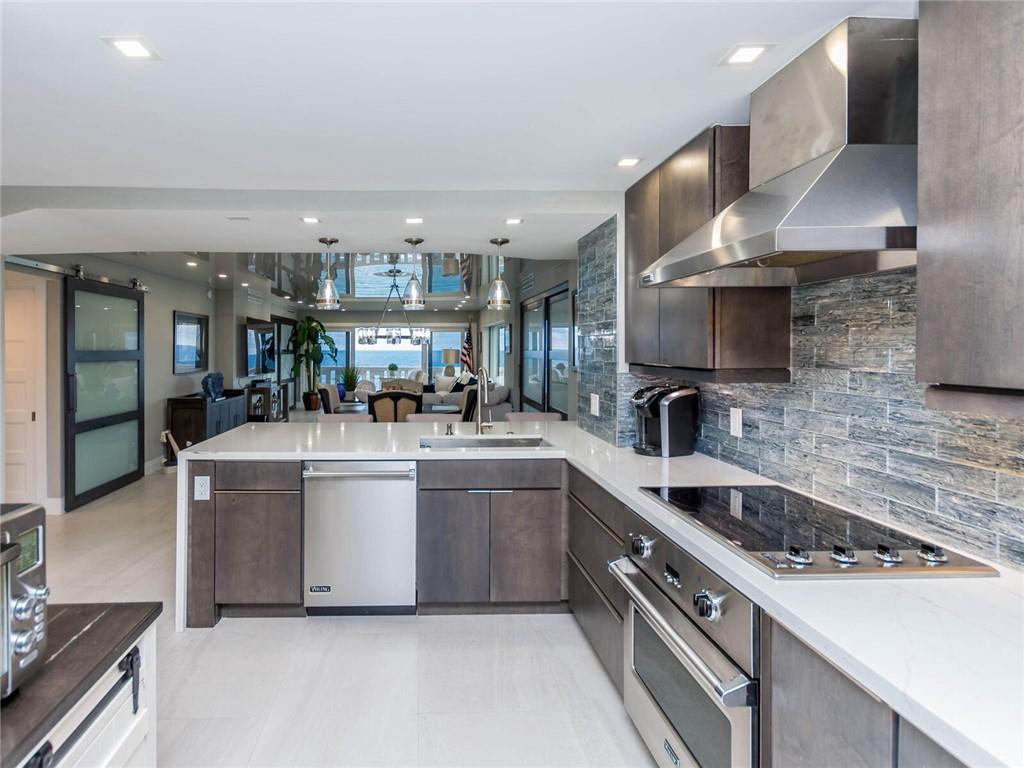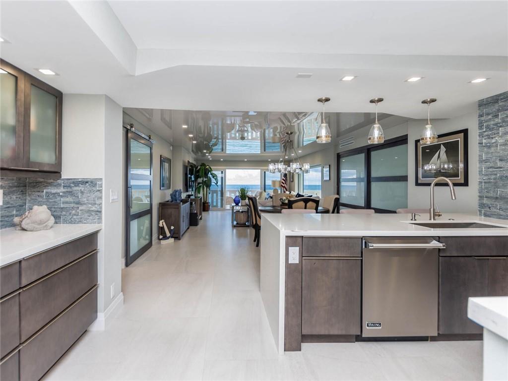 Amazing Custom Transitional/Modern Renovation Professionally Redesigned unit being sold turn key. Direct Unobstructed 3/3 SE Corner Ocean Front. Kitchen & Bar area with Custom Cabinets, Glass Backsplash & Cambria Quartz Ella Countertops & Viking Appl.. Porcelain Floor throughout. Soffit Recessed Lighting & LED Lighting in Livingroom with reflective ceiling. Impact Windows & Slider, Doors Expanded for Total Optimum Ocean Views. Infinity Sinks & floating vanities all baths. Custom Walk In Closets & Reach In Closet Systems, Full Size W/D, Whole house surge protector. Sand paint, porcelain tile backsplash in baths and, custom barnwood accent wall in master BR. Electric roll-down shutters. Located on the Widest Beach with Views as far South as Miami. 24Hr Security, Underground Parking, 55+