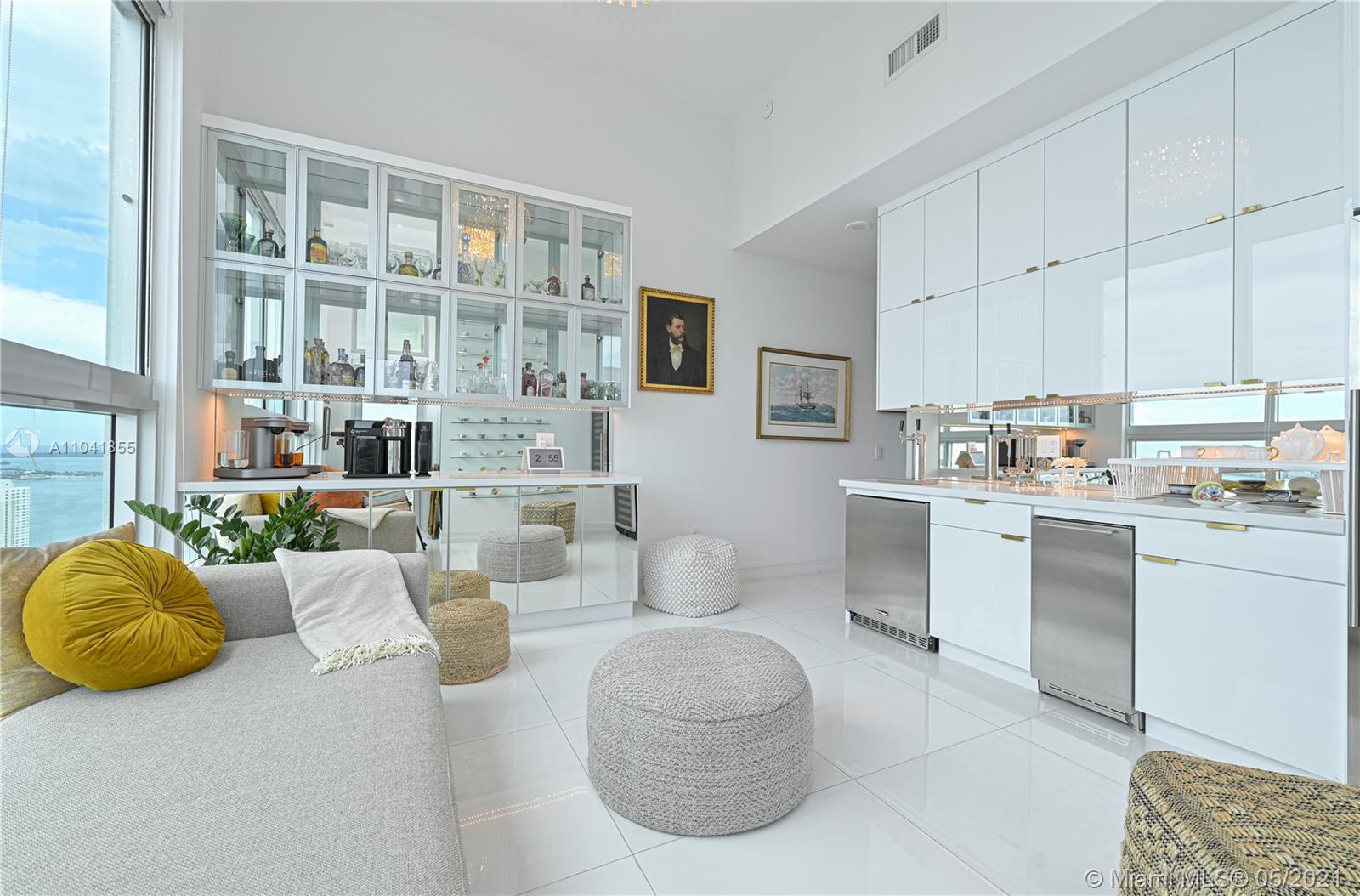 Welcome to 4006 at Met 1, where beauty and luxury meet comfort and leisure. Completely redesigned in palatial white and gold, this Downtown Miami penthouse offers a unique opportunity. Entertain effortlessly in your very own tasting room complete with custom cabinetry boasting a 100+ wine bottle cellar, built-in ice maker, sleek dual tap draft beer refrigerator, and direct access to the wraparound balcony. The stunning kitchen has been expanded and finished with high-end appliances. As you walk through the art-filled hallway, you’ll encounter the impeccably designed bedrooms, each with custom walk-in closets, spa-like bathrooms, and a second balcony to enjoy privately. And lastly, this is a very rare opportunity to own five (5) designated parking spaces in the heart of Downtown Miami.
