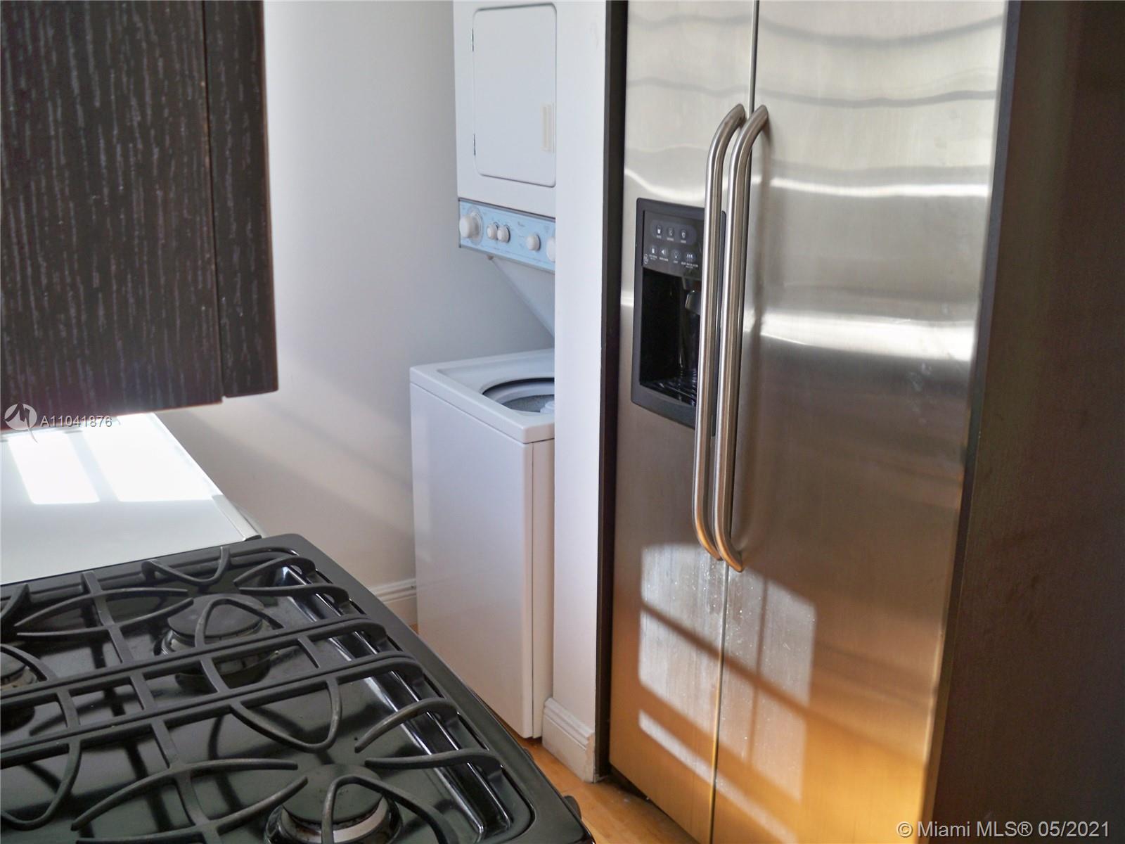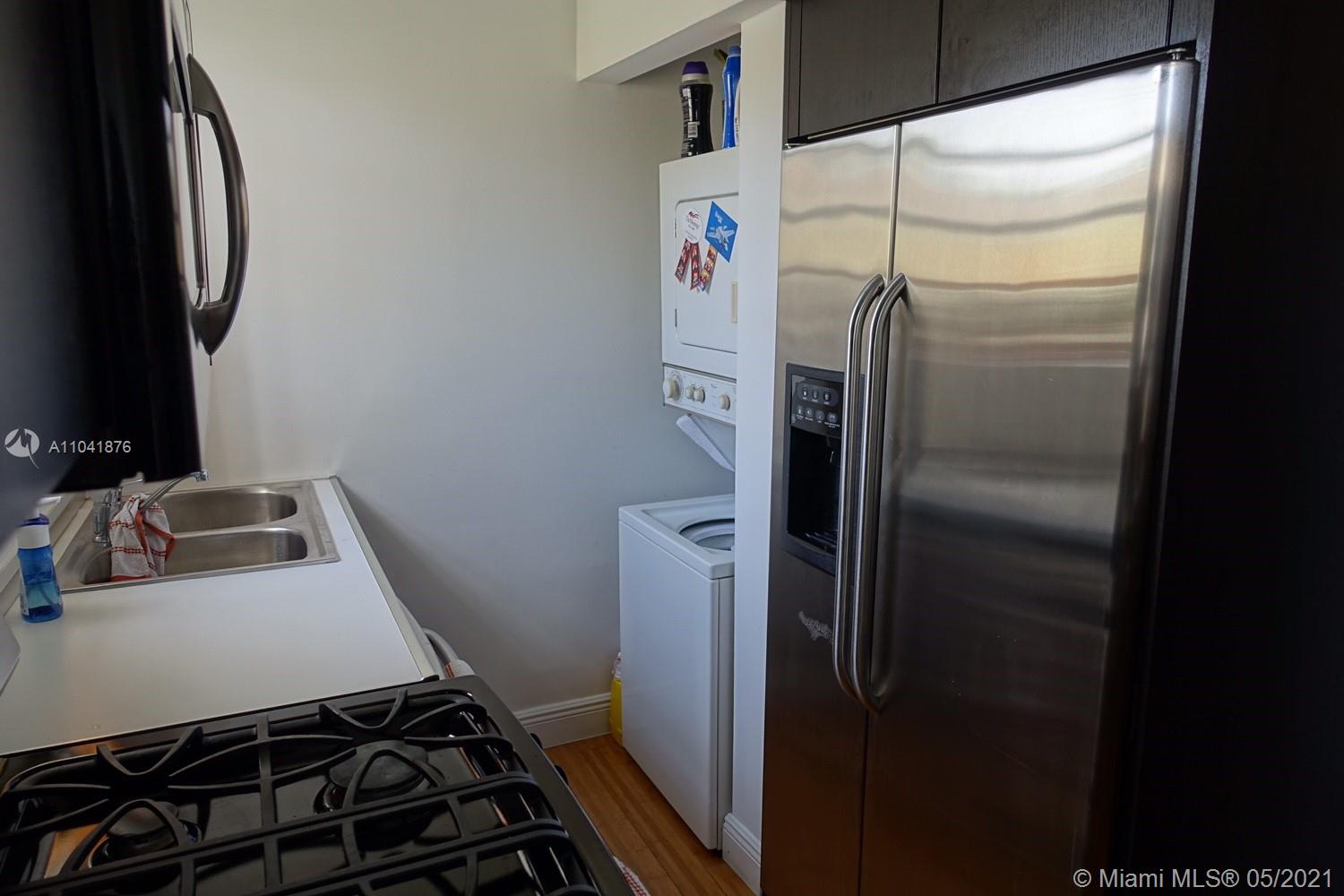INVESTORS !!! Charming one bedroom and one bathroom in beautiful colonial style building with waterfront pool and lavish patios. Fenced garage and access wit one assigned parking space. This 2nd floor unit has stainless steel appliances including stacked washer and dryer, beautiful bamboo floors and modern bathroom. Little den at the living area can be used as home office. The pool and lounge area have stunning views of the water and skyline. A pet friendly building with a great location, minutes from the beach and quick access to highway. Equal Housing Opportunity.