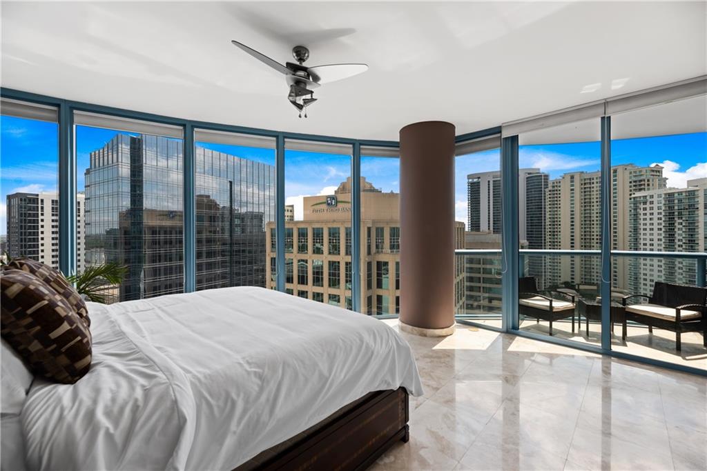 Iconic Las Olas River House, 25th floor 2 bedroom/2 bath SOHO unit being offered fully furnished. Split bedroom plan. Semi private elevator with entry into Foyer. Gorgeous city views from every room through floor to ceiling glass. Amazing amenities including gym, pool, clubroom and a new lobby renovation underway. Located off Las Olas Blvd., walk to world class dinning, shops, nightlife and the New River promenade.
