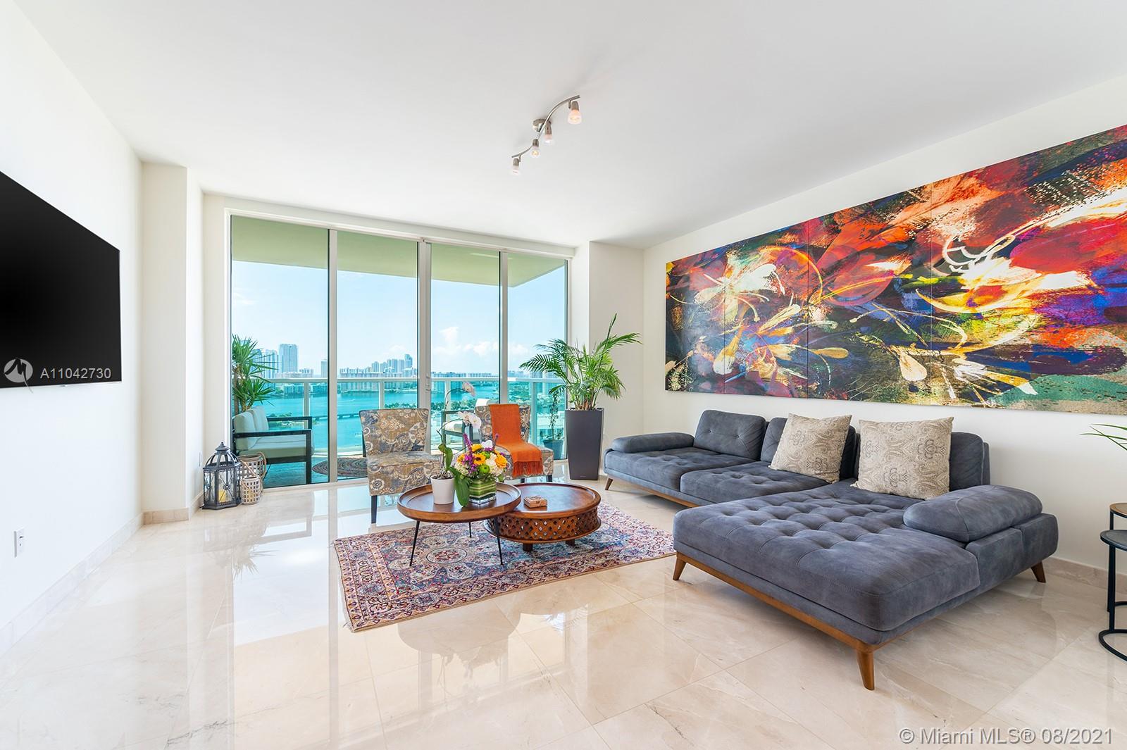 Fantastic 3 bedrooms and 2.5 bathrooms unit in one of the best buildings of Aventura. Enjoy the sunset and sunrise with panoramic and gorgeous water views from the comfort of your balcony. One of the largest Unit on the building which features a modern kitchen with top of the line appliances, granite countertops, marble floorings throughout, walk-in & built-in closets, electric curtains, smart thermostat, 3 balconies and two assigned parking spaces. Take pleasure in the multimillion resort amenities the community offers: heated swimming pools, fitness center, sauna, library, game & billiard rooms, business center and much more! Bring your boat and give you the chance to use the marina in place. Make your appointment, it will not last!!