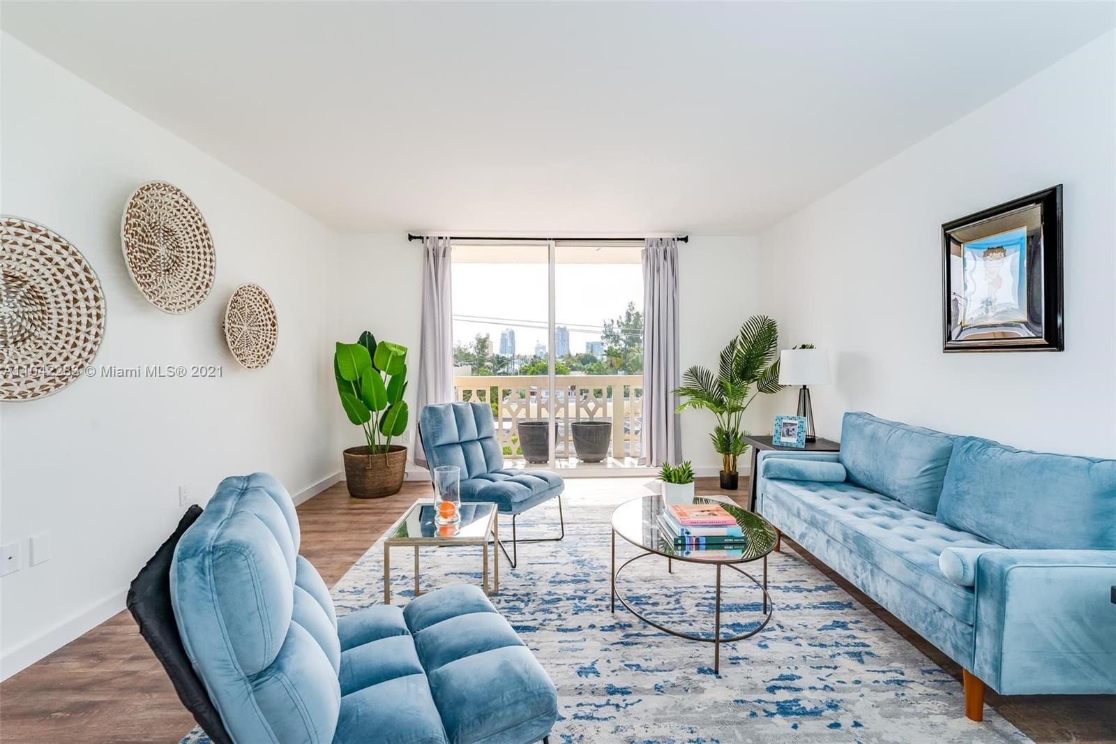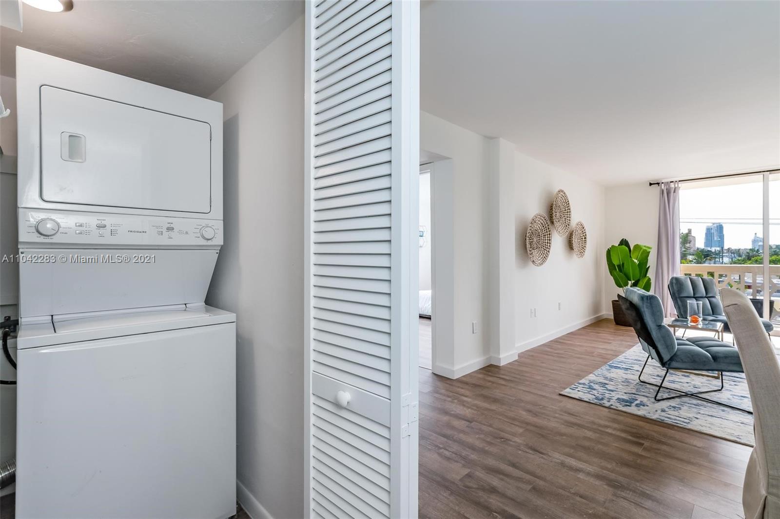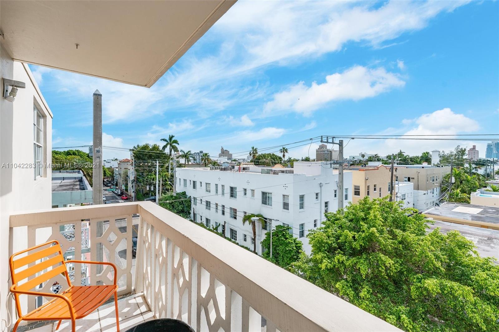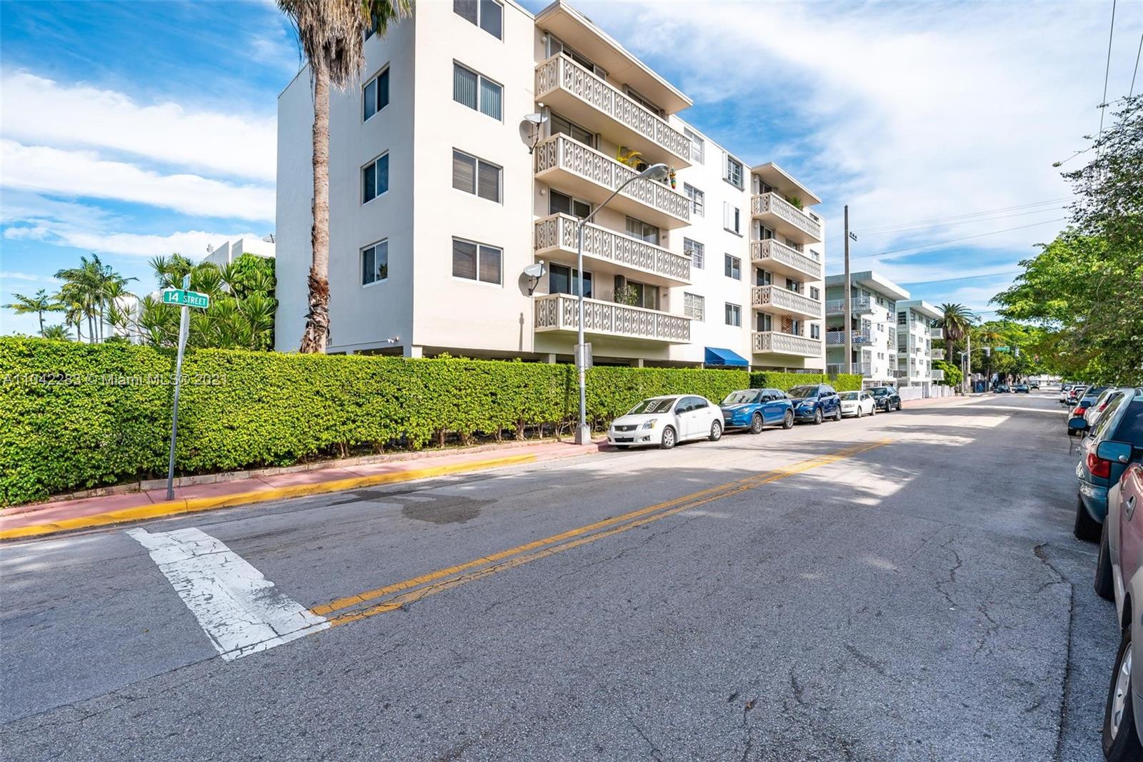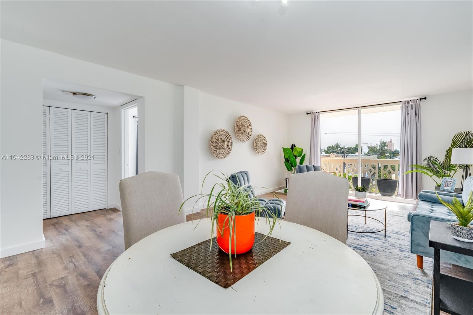 Newly decorated top floor corner unit with pretty views of Miami Beach. Comes with one assigned gated parking space (not covered.) Apartment has in-unit washer/dryer and pretty new wood vinyl floors throughout, new shower, new double-vanity sink and new oven. Sun-drenched South-facing unit with balcony and large walk-in closet in bedroom. Gated elevator building located only 1 block from Flamingo Park and 3 blocks to the beach. Pet friendly building with reserves.