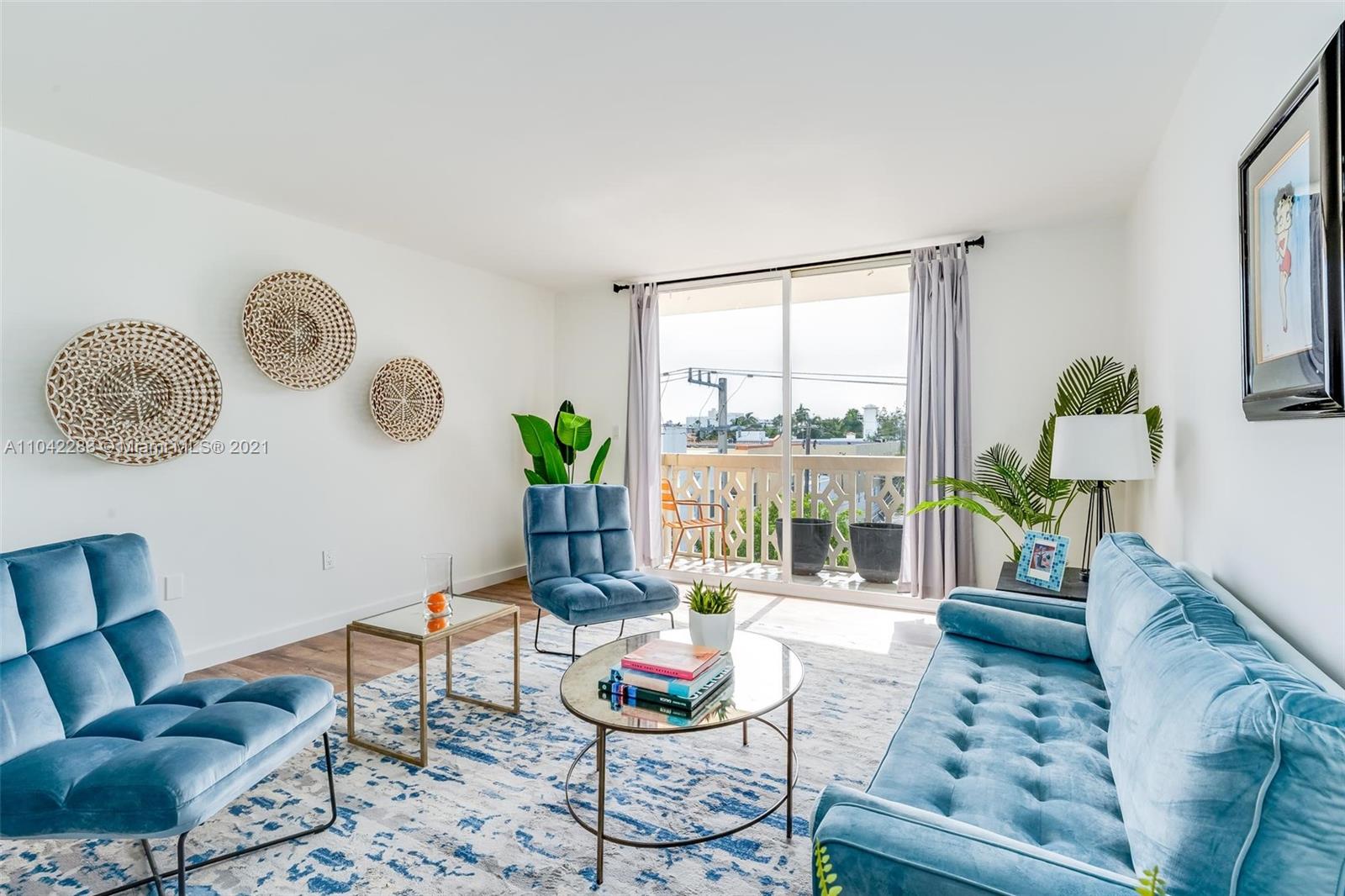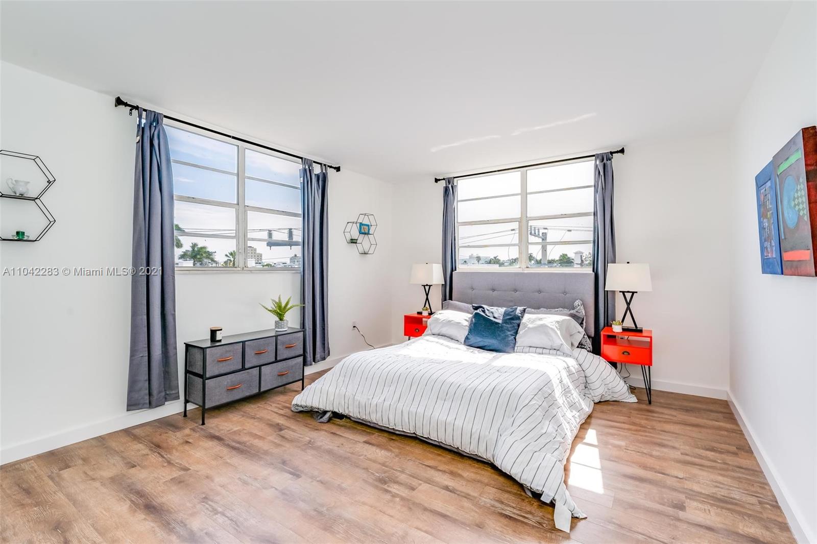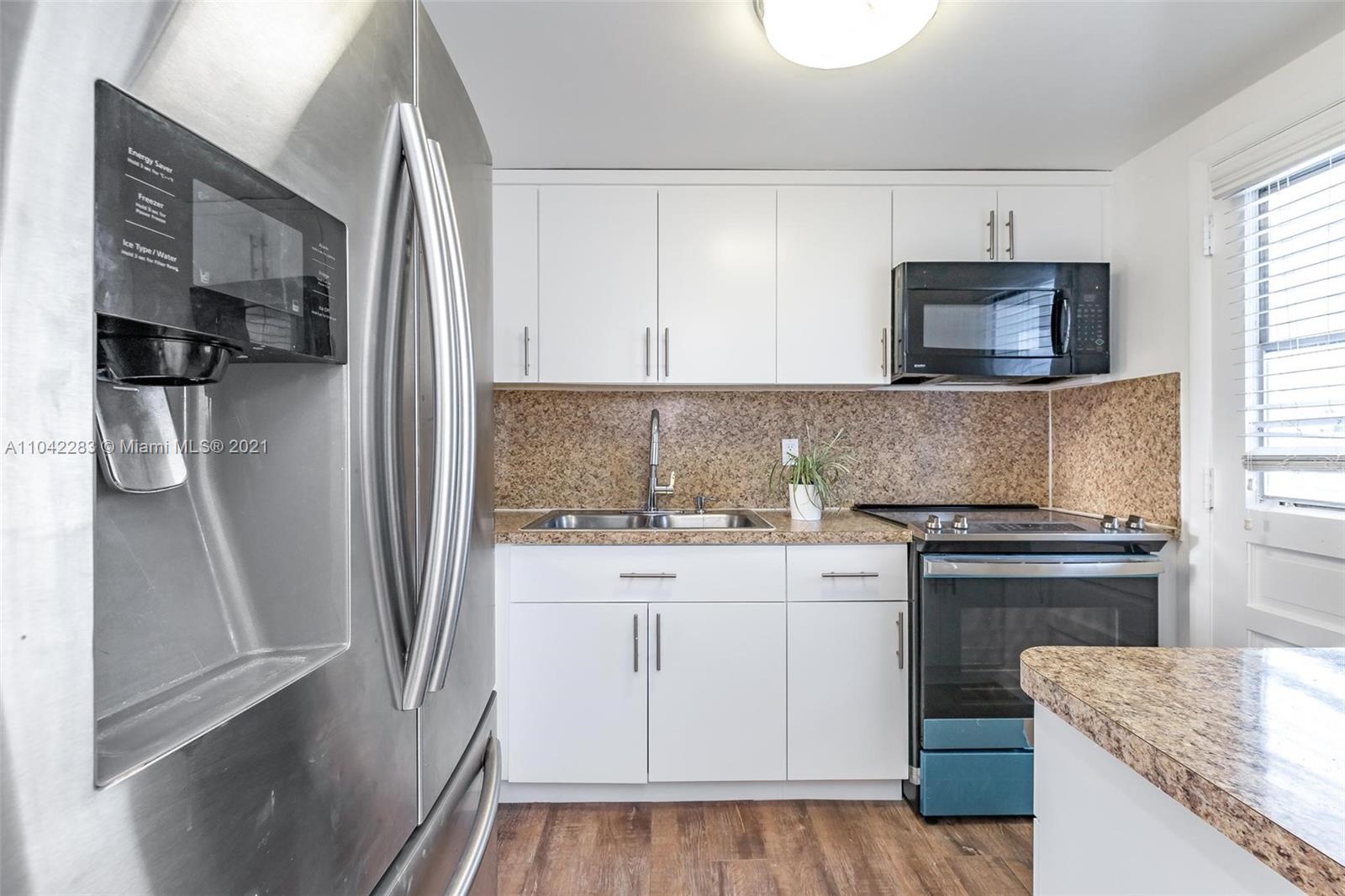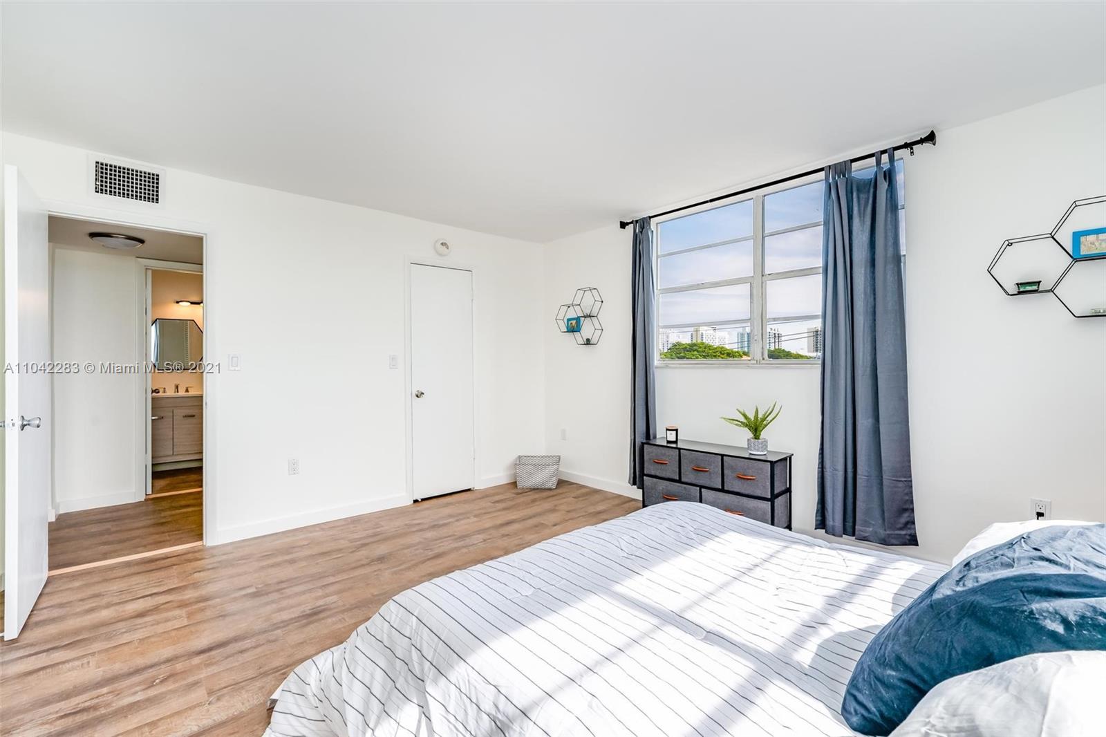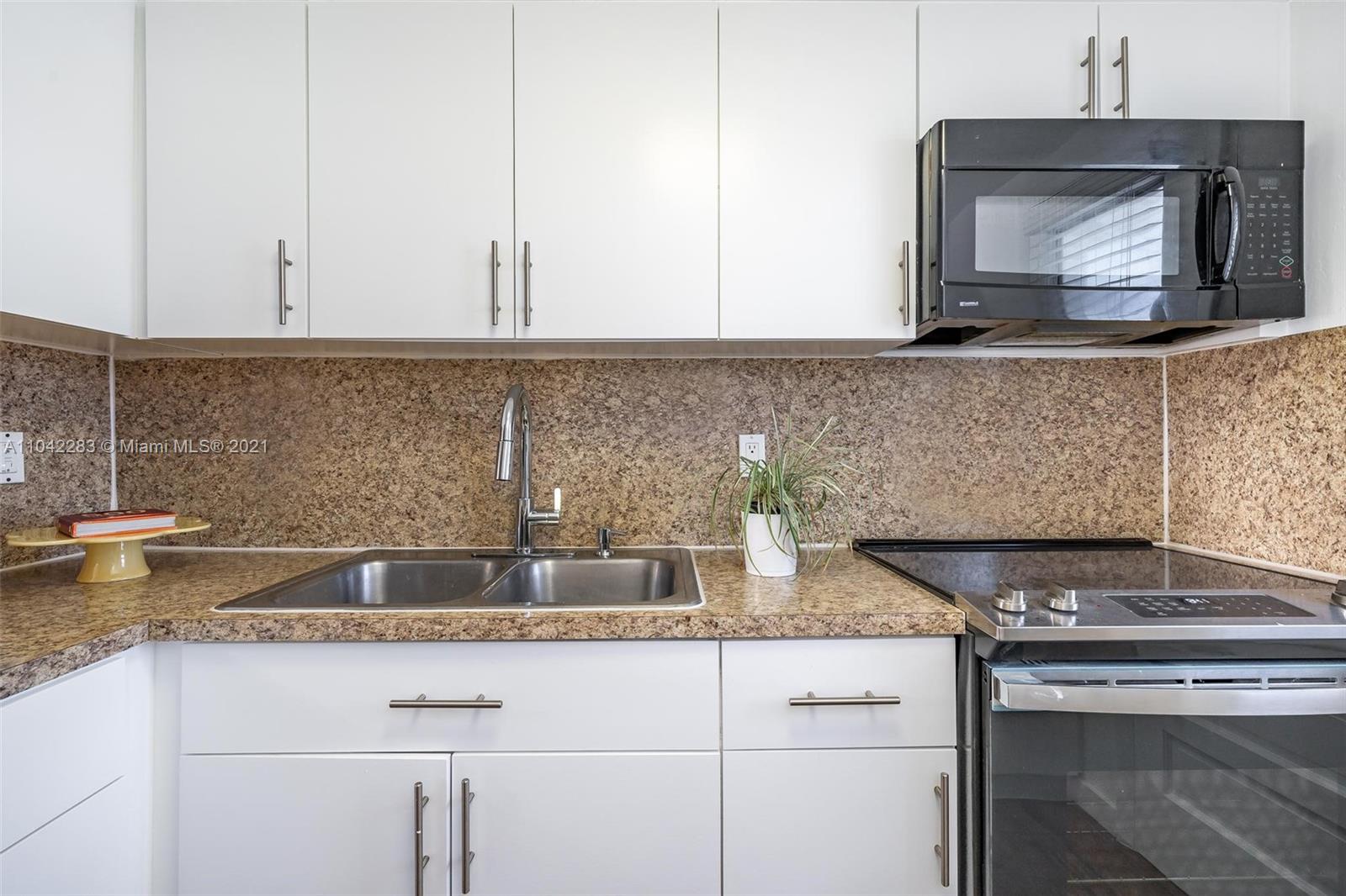 Newly decorated top floor corner unit with pretty views of Miami Beach. Comes with one assigned gated parking space (not covered.) Apartment has in-unit washer/dryer and pretty new wood vinyl floors throughout, new shower, new double-vanity sink and new oven. Sun-drenched South-facing unit with balcony and large walk-in closet in bedroom. Gated elevator building located only 1 block from Flamingo Park and 3 blocks to the beach. Pet friendly building with reserves.