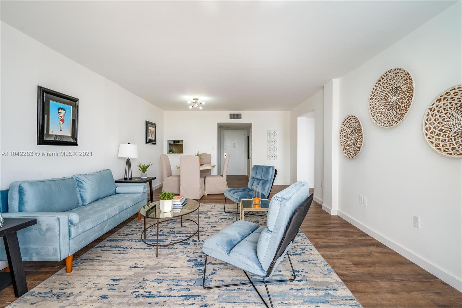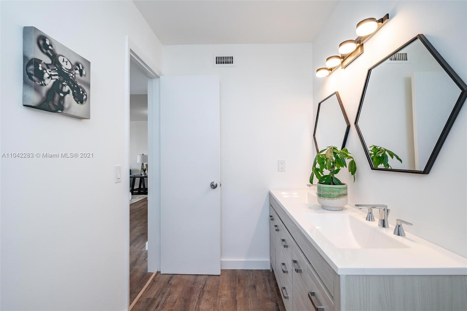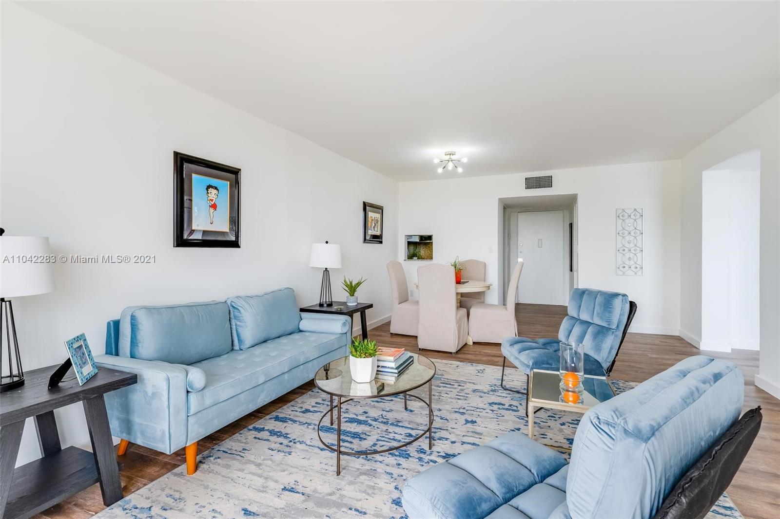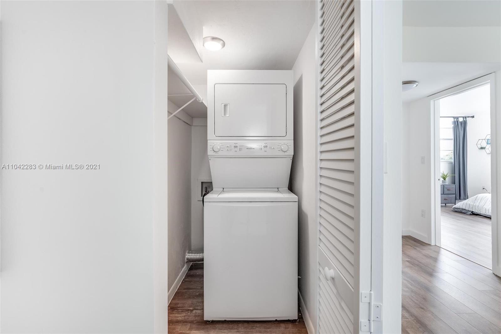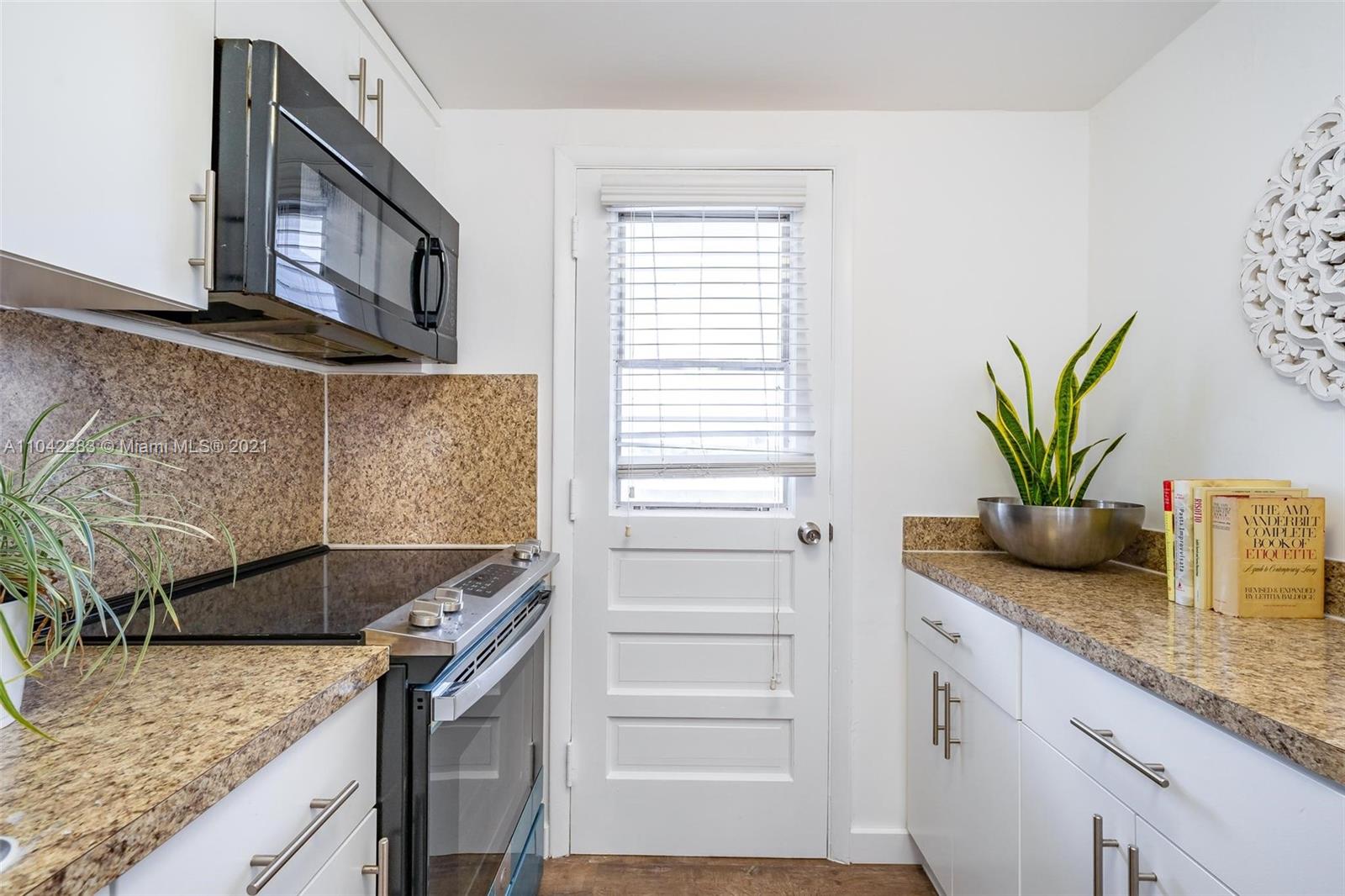Newly decorated top floor corner unit with pretty views of Miami Beach. Comes with one assigned gated parking space (not covered.) Apartment has in-unit washer/dryer and pretty new wood vinyl floors throughout, new shower, new double-vanity sink and new oven. Sun-drenched South-facing unit with balcony and large walk-in closet in bedroom. Gated elevator building located only 1 block from Flamingo Park and 3 blocks to the beach. Pet friendly building with reserves.