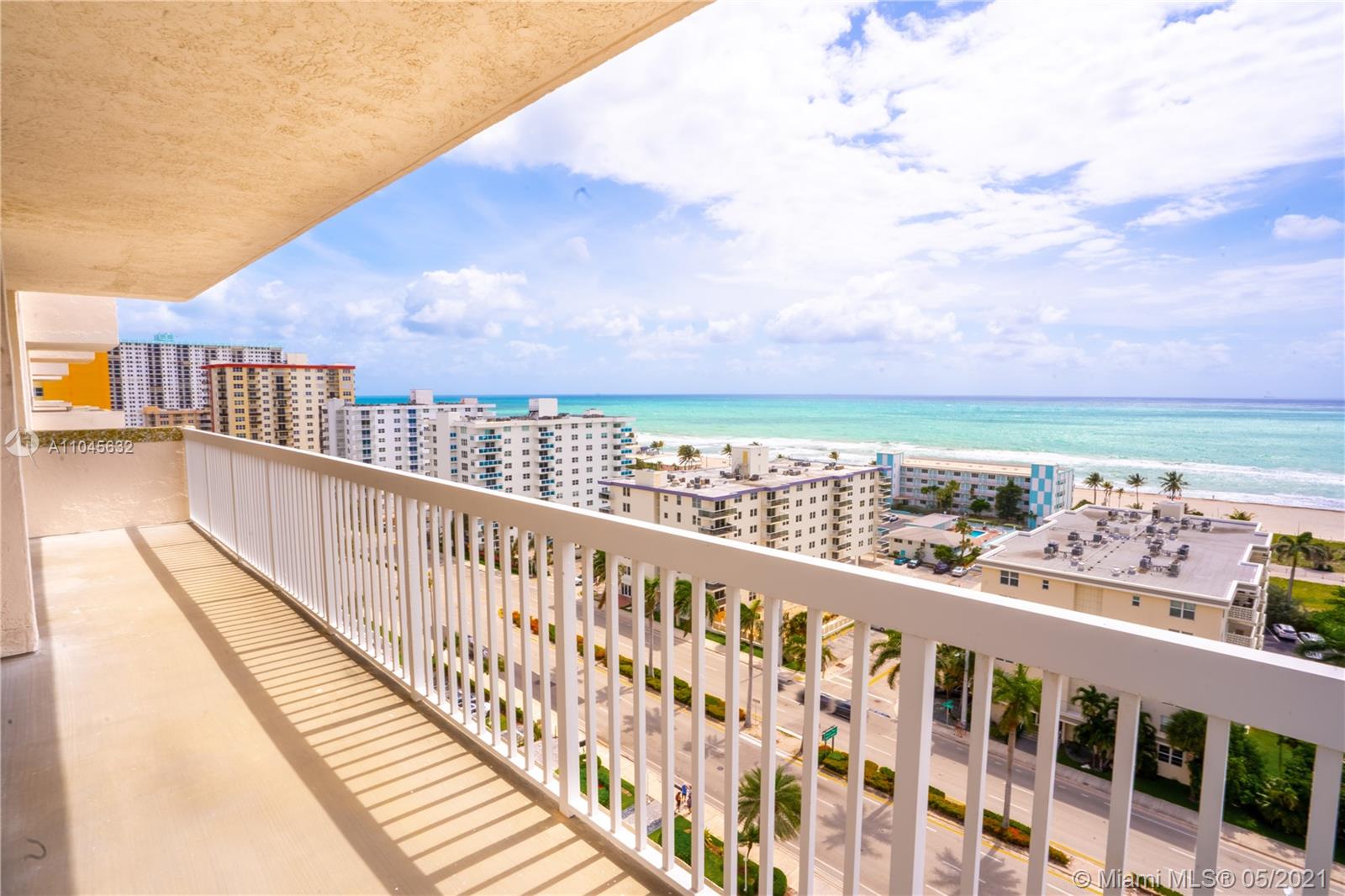 Rarely available corner unit with wrap around terrace! Magnificent views of Ocean and Intrecoastal. Unit features 2 bedroom 2 bath with a split floor plan and eat in kitchen. Best location just minutes from the world famous Hollywood Broadwal, Downtown Hollywood Historical entertainment District. A short ride to Fort Lauderdale Airport, shopping and dining. Make this unit your own, sit and enjoy ocean views from every room.