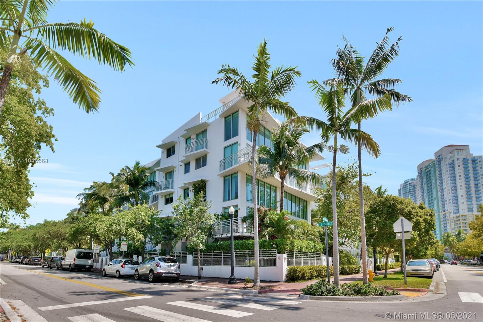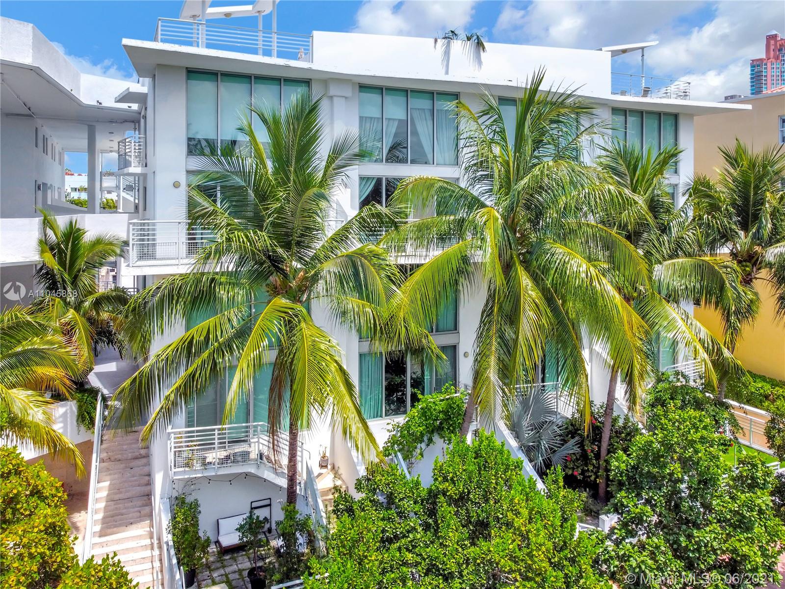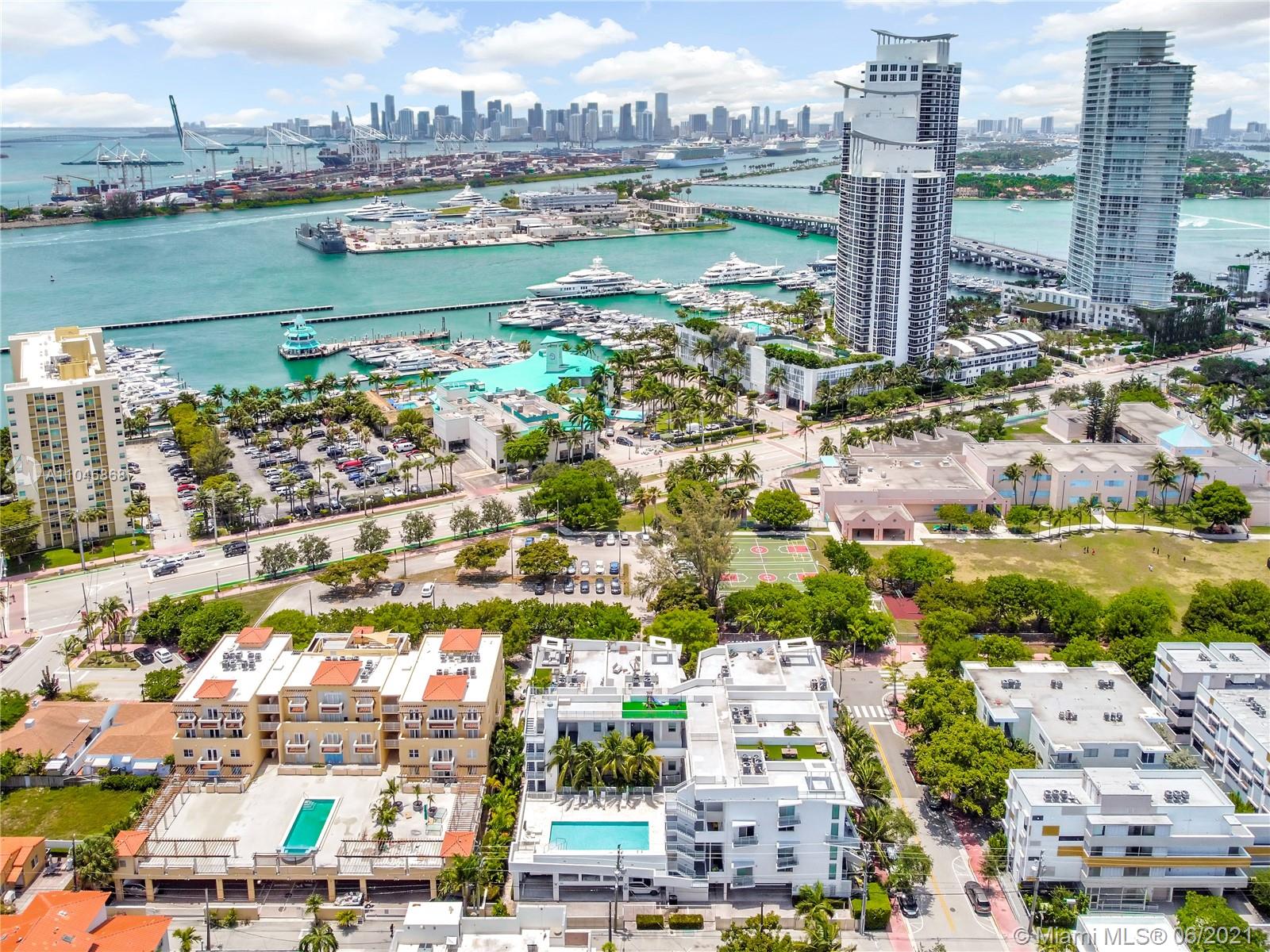 REDUCED!!! Amazing Rooftop and Garden unit. Watch the sunsets through 18-foot floor-to-ceiling impact windows. A Boutique building with only 20 units, a pool, and 2 covered parking spaces. Located in one of the hottest areas in South Beach. Walk to the beach, marina, dining, grocery, S.Pointe Park & 'A' schools! 2 large dogs are welcome.