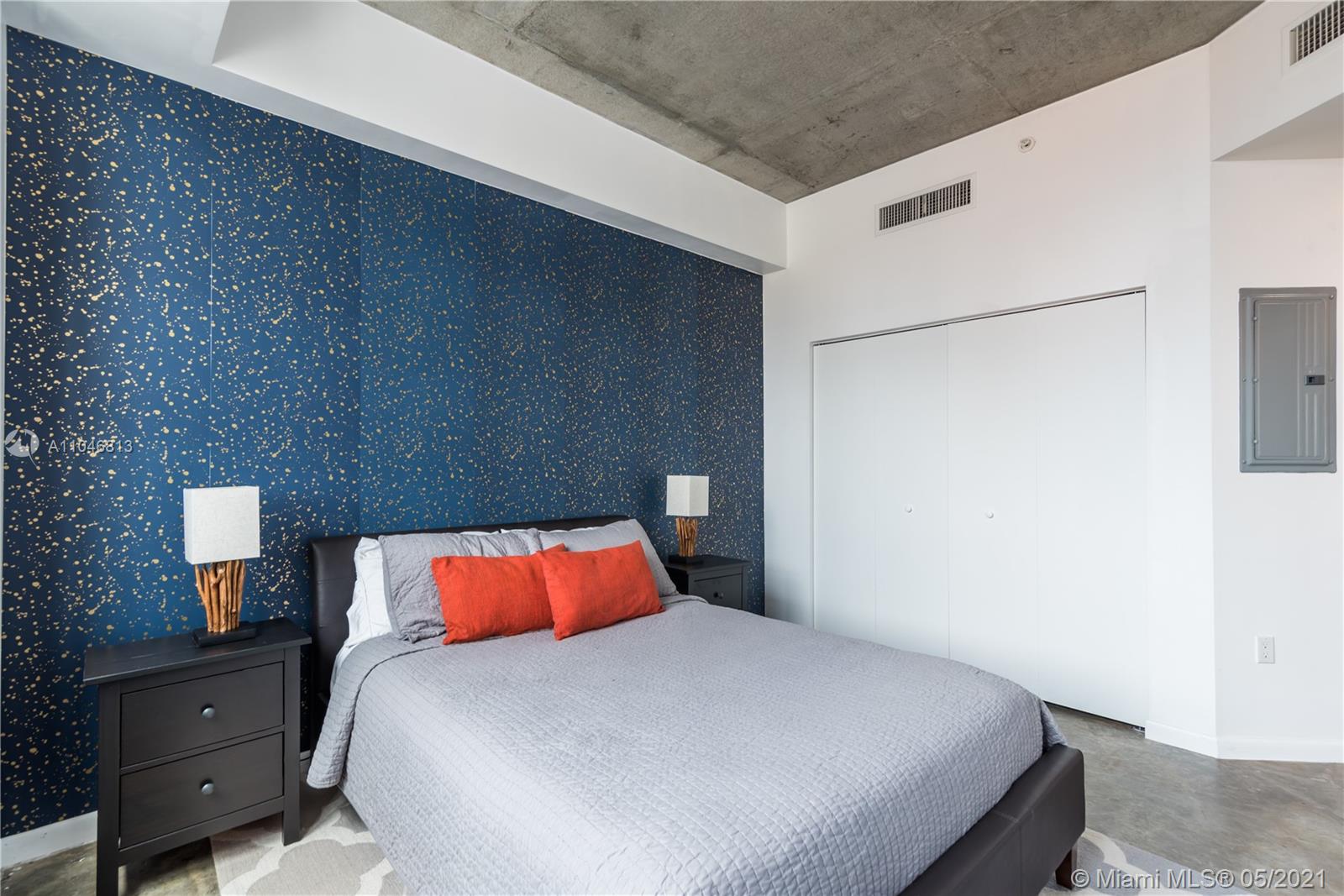 Bright west facing loft, 2 full baths, concrete floors and ceilings, lots of storage/closet space, in-unit washer/dryer, hurricane impact windows and a balcony. The 2nd bedroom is opened to the living room, currently used as a home office, but can be converted to an enclosed bedroom. The building features full time security and maintenance, doorman, roof top pool and spa, top floor gym with great views, and a 2nd pool on ground floor. Great downtown location, right next to the metro mover station. 1 parking space is guaranteed in the parking garage across the street at $60/month paid directly to Miami Parking Authority. For this unit, 2 Pets are allowed up to 30lbs each. Pictures were taking with previous tenant’s furniture.