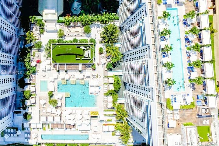 Beautifully finished and furnished, high floor 1 bed / 1 bath at the 1 Hotel & Homes. Highly desirable 12 line with wide open Southeast Ocean views over the pool deck and coastline. Interior features large Italkraft kitchen, stainless steel appliances, Brazilian porcelain flooring, energy efficient windows and more. Owners enjoy private resident entrance and lobby. Amenities include valet service, 4 pools, private beach and pool area, spa, gym (including Soul Cycle), cabanas, concierge, free Audi E-Tron car service and much more. No rental restrictions providing the perfect blend of lucrative investment property & personal hideaway. Managed by a 3rd party management company, with very attractive positive cash flow.