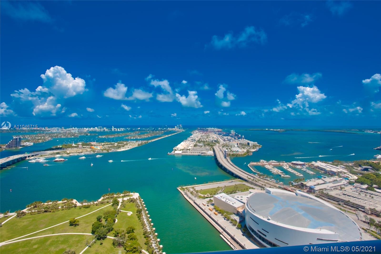 Ultra-luxurious 3 bedrooms 3 bath condo soaring 55 floors above Miami with truly spectacular unobstructed water and city views. From the private elevator directly into this elegant flow through, the breathtaking east and west views go on for miles and miles. Top-of-the-line flooring throughout, gourmet kitchen, lavish bathrooms, and custom closets all compliment the five-star lifestyle that only 900 Biscayne can offer. From the resort-style pools, spa, top-of-the-line gym, free-spinning classes, private theater, lux resident lounge w/ WiFi, children playroom, and much much more.