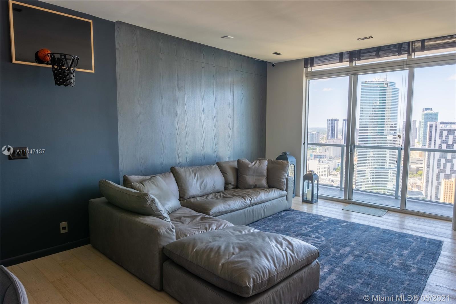 One-of-a-kind TURNKEY PENTHOUSE in the heart of Brickell! Every sqft is impeccably remodeled to maximize space, utility, and design. Over $150k in upgrades! Master bedroom features a beautiful custom built-in bed frame with extra overhead storage. A sliding wooden wall can either enclose the second bedroom or be kept open to make a larger living area- perfect for entertaining. Brand new AC from 2021. Fully SMART home- customize your lights, AC, security camera all thru your Home App! Balcony spans the length of the unit with views of Miami River, bay, and downtown skyline. Wifi & cable included in HOA. 24-hr reception/security/valet, 3 heated swimming pools, gym, separate men's/women's spa with a jacuzzi, sauna, and steam room, private movie theater, & multiple resident lounges/workspaces.