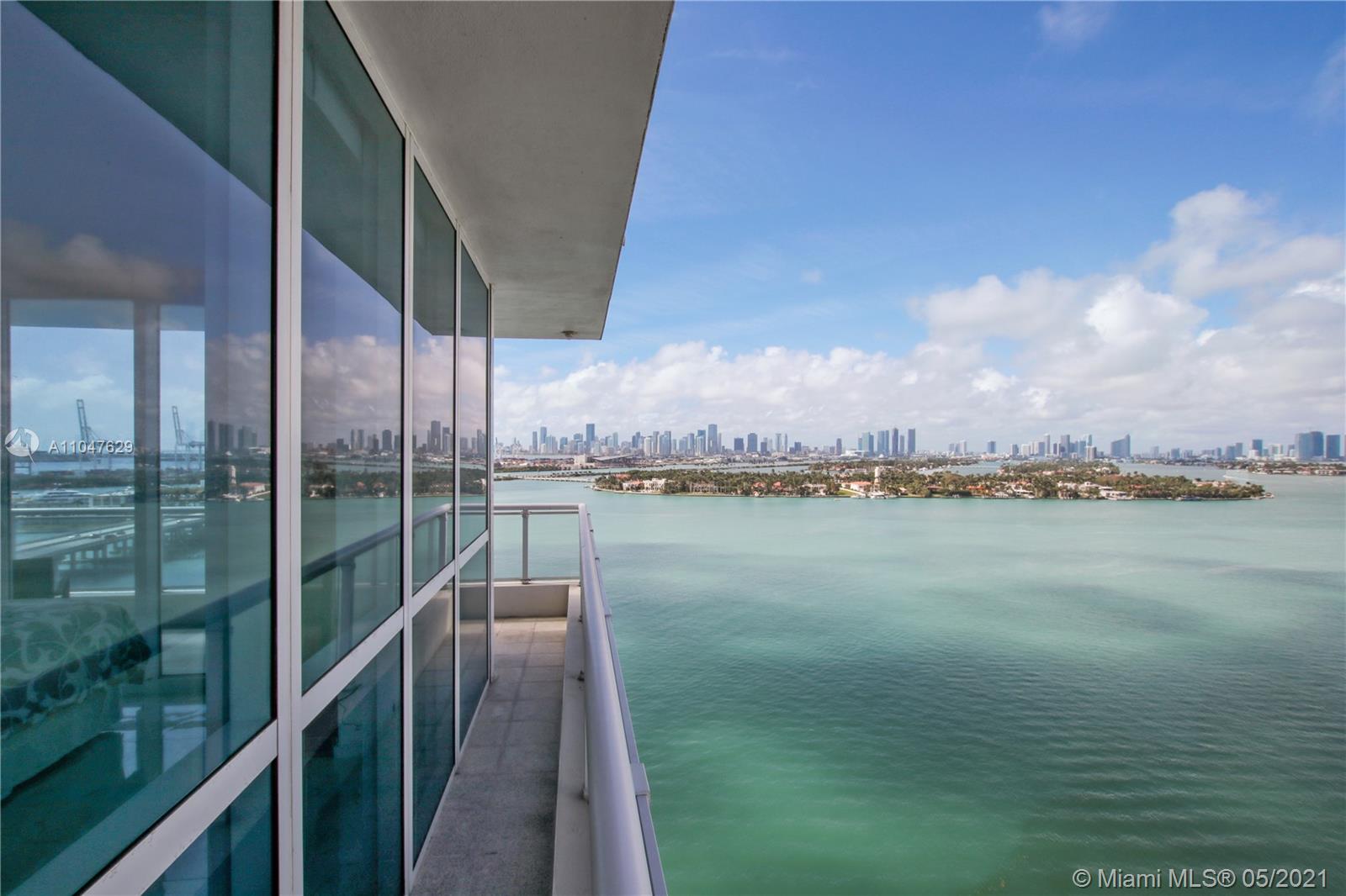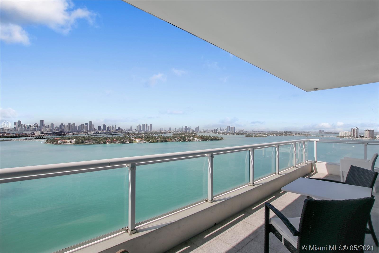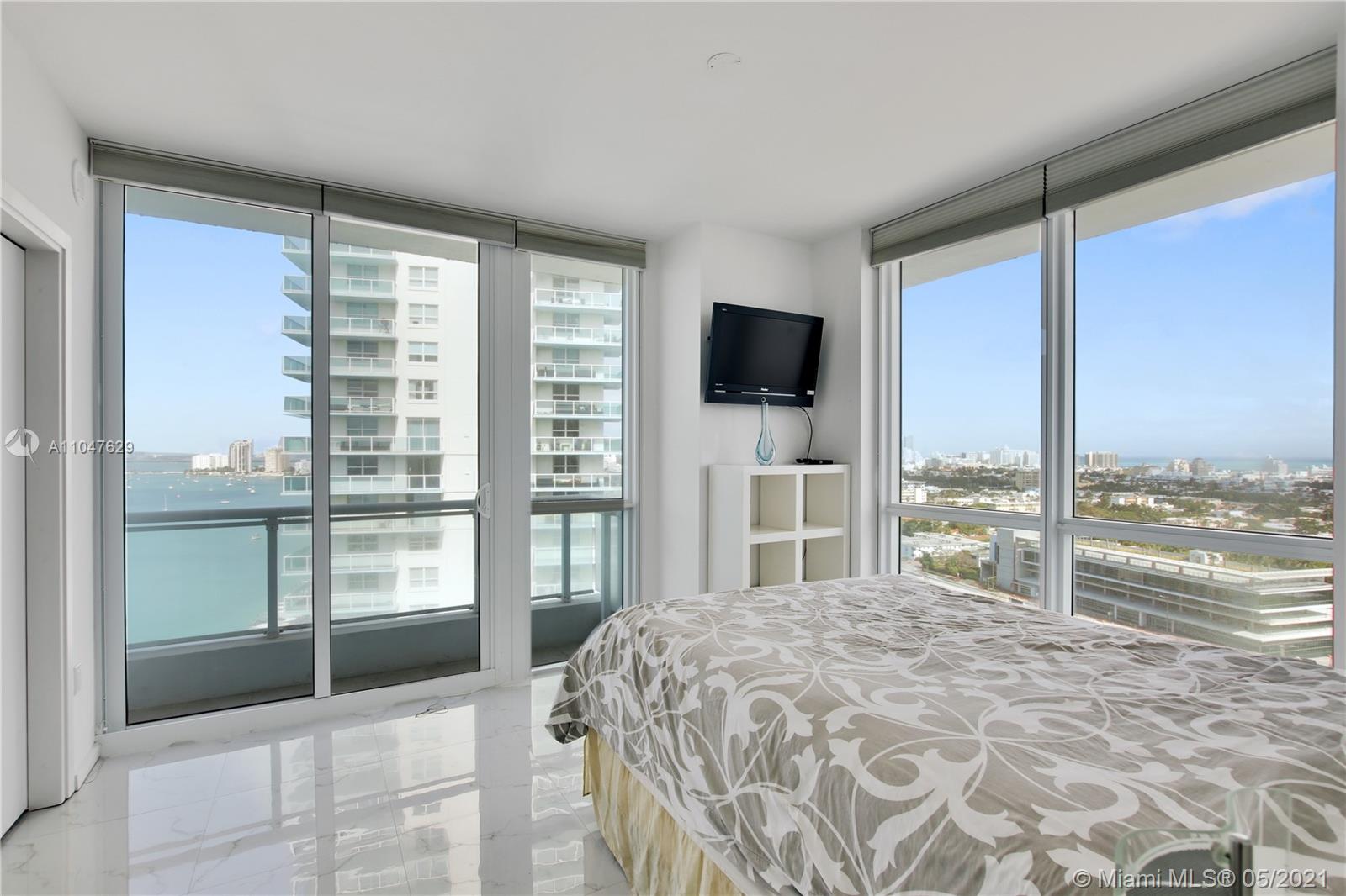Most desirable "14 line" corner unit, with probably one of the nicest views Miami can offer: City skyline, Star Island, South Beach and the ocean. Both bedrooms have sliding glass doors leading to the wrap-around balcony with views from every angle! Stunning finishes includes: marble and porcelain floors, European cabinetry, marble countertops and stainless steel appliances. Amenities includes: swimming pool overlooking the bay, Jacuzzi , exercise center, sauna and steam room, 24 hours concierge and valet. Exceptional location with 100% walkability to the beach, shops & restaurants, minutes away from Downtown and Miami International Airport. New Bentley Bay Marina with boat docks available for rent up to 65 feet long vessel. The furniture are included with the sale. Ready to move-in!