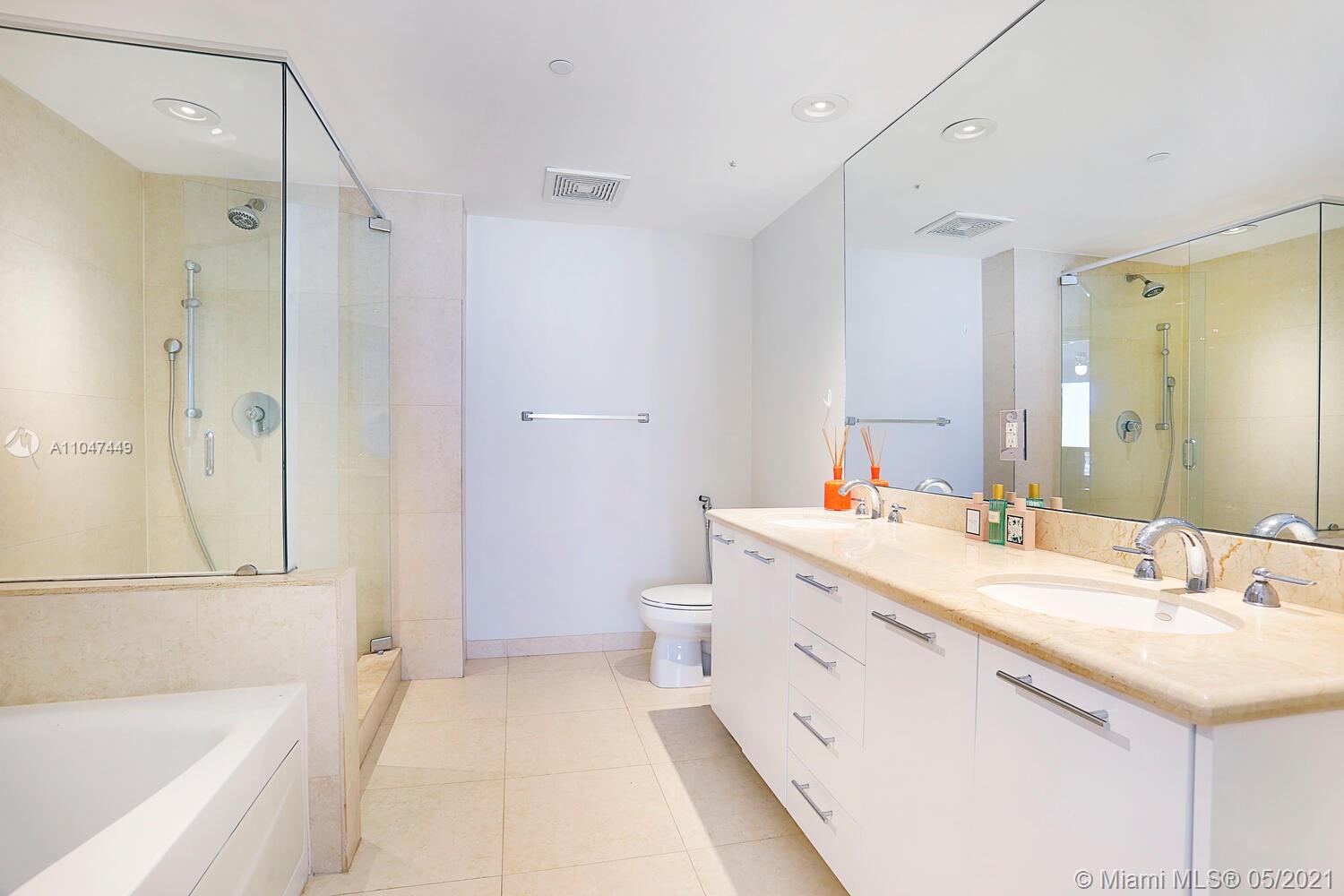 Live an urban lifestyle at “50 Biscayne”. Walk to Bayside Marketplace, Museum Park, American Airlines Arena, Bayfront Park & endless shopping & dining venues. Light-filled, open living spaces with walls of glass opening to a wrap-around balcony with bay and city views. Updates include: new Bosch appliances, new washer/ dryer, Silestone countertops, black-out shades and porcelain tile floors throughout. Sleek, European-style kitchen with dining bar. Master suite offers 2 walk-in closets and luxurious bath w/ soaking tub and glass-enclosed shower. Resort-style building amenities include: 24 hr. concierge, valet parking, Pilates room, fitness center, spa and pool w/ sundeck & cabanas. Minutes to downtown, Brickell, MIA and the Beaches.