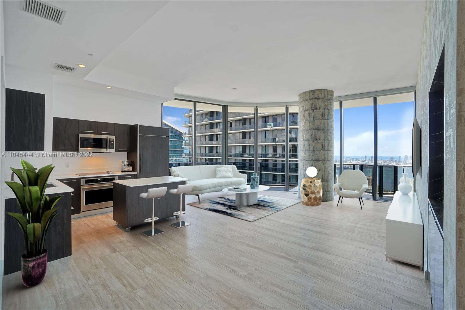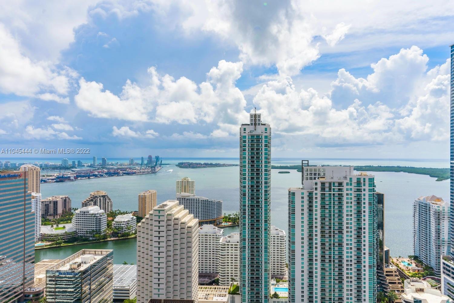 Boasting an array of sleek finishes and a thoughtful open plan layout, this immaculate 3-bedroom, 3 1/2 bathroom condo is a paradigm of contemporary Miami living. This stunning designer appointed 1,701 sq. ft. lower Penthouse features include wide plank engineered hardwood floors, 12 feet ceiling, floor to ceiling windows, central heating and cooling, and washer/dryer. Beyond a functional entryway space the home flows into a luminous, open- concept living, dining, and kitchen area. This lower Penthouse is on the 47th floor and has the incredible views of Biscayne Bay, Miami Skyline and Ocean to the East, North and South. This stunning condominium located right in the heart of Brickell city center steps to upscale shopping, dining & entertainment.