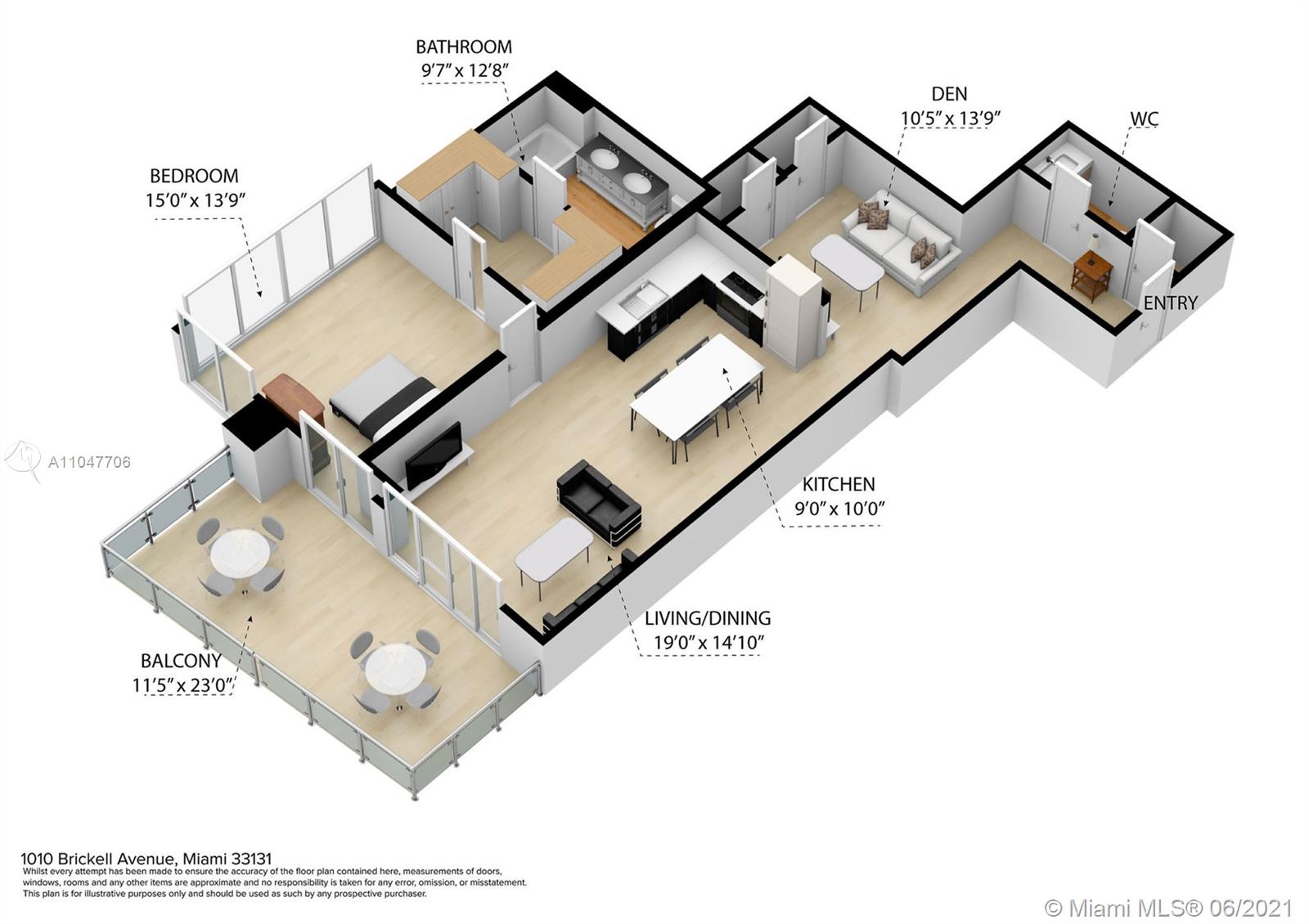 Spacious corner 1 bed w den and expansive views from the 44th floor of 1010 Brickell. Enjoy the large balcony which is great for entertaining friends and family. Enjoy the resort lifestyle with extensive amenities... basketball court, two story club reserved for the building community, rooftop pool, rooftop bar, indoor pool on 50th floor, fitness center, kids activity room, spa, sauna, treatment rooms, bowling, virtual golf, valet parking, 24-hour security and much more! Located in the center of Brickell within distance of everything! Minutes to Brickell City Centre and many shopping, dining and entertainment venues. Virtual staged furniture in photos.