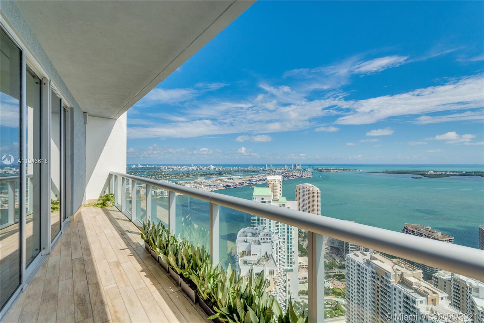 Castle in the Sky Condo w/ unobstructed views of Biscayne Bay, Ocean and Miami Skyline. Exclusive 2 Story PH residence with over 2k sqft. of living area + 1k sqft terrace garden to entertain family and friends. Custom and unique designed condo incl: 3 Beds 3 Baths glass tiled floors, Italian Kitchen cabinets, stainless steel appliances, granite countertops, upgraded modern bathrooms and SMART interior features, BBQ, Outdoor shower. The urban resort amenities incl: 300 ft pool, 50 person hot tub, 28k sqft, spa and fitness ctr., movie theatre, game room, poolside cafe, 24 hrs security, valet, and concierge and retail restaurants. Located in the heart of Brickell walking distance to City Centre, Arena, minutes to Beach and Airport. Seller is accepting Bitcoin payment.