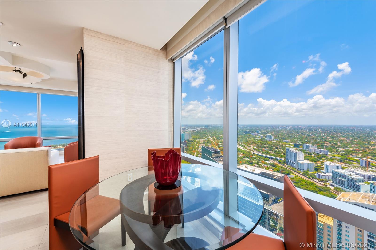 Exclusive Lifestyle only Four Seasons Residences can offer. Turnkey, 55th floor 2 Bedroom/ 2.5 Bathroom corner unit with wrap around, breathtaking floor to ceiling panoramic Biscayne Bay and city views. 2,240 sqft per owner. Elegant & beautifully appointed residence: Italian design furniture, custom wall units and high-end finishes throughout. Foyer entry, formal dining & living room with floor to ceiling windows and marble floors. Well-equipped spacious & bright kitchen with Poggenpohl pearwood cabinets, breakfast nook, & terrace access. Large bedrooms, Master with spacious walk-in closet. First Class Amenities include 24 hour concierge, valet, two heated pools, jacuzzi, poolside cabanas, restaurants, wine room, business center, party rooms, 50,000 Sqft Equinox fitness center & Spa.