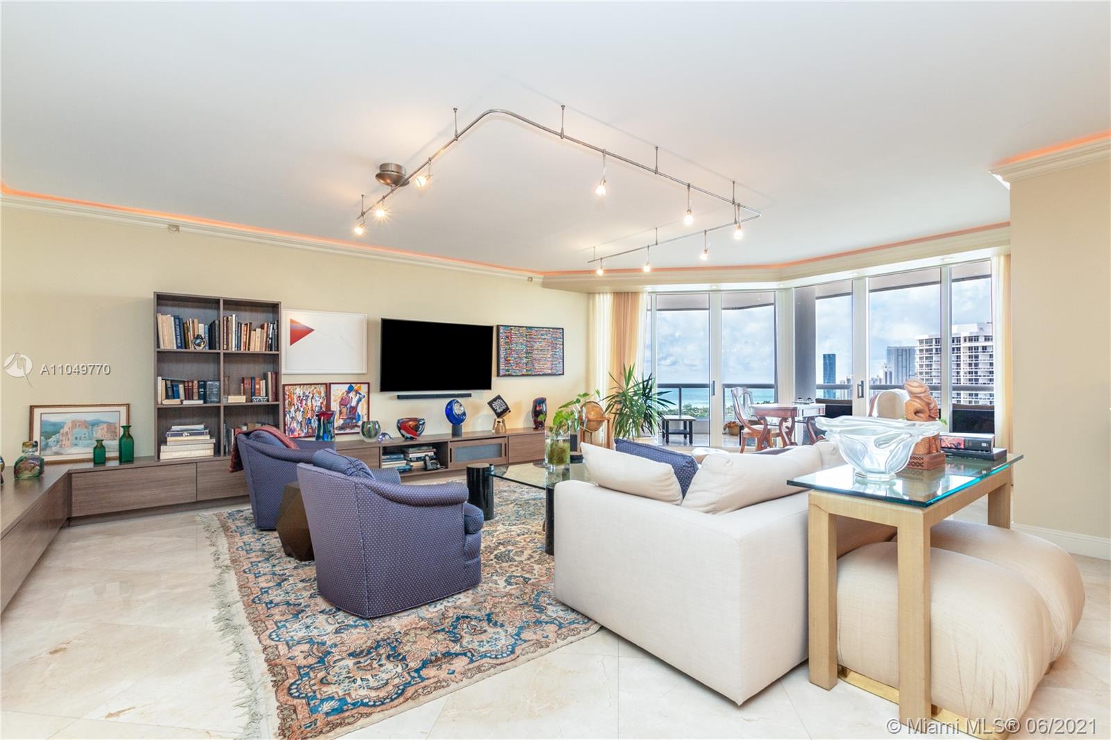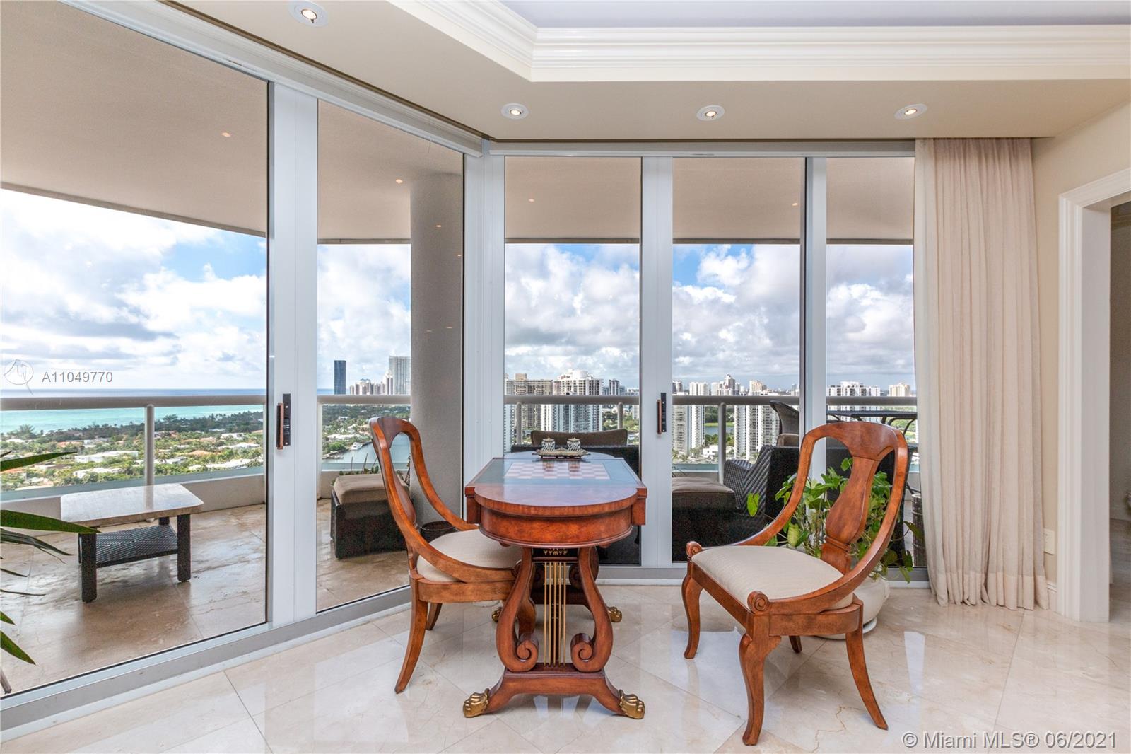 OCEAN VIEWS! TWO BALCONIES! SOUTH, EAST, & NORTH EAST OCEAN & INTRACOASTAL VIEWS AND THE HOMES IN GOLDEN BEACH. PRIVATE ELEVATORS. THIS BEAUTIFULLY MAINTAINED SPACIOUS RESIDENCE BOASTS 2720 SF. UPON ENTERING THRU THE PRIVATE ELEVATOR THE CUSTOM ITALIAN DOUBLE DOORS AND THE BEAUTY WITHIN THESE WALLS CAPTURES YOUR HEART. SPACIOUS PRINCIPAL SUITE, SPACIOUS EAT IN KITCHEN, RENOV. KITCHEN W STAINLESS HIGH END APPLIANCES, GREAT ROOM WITH A CUSTOM BUILT IN, KITCHEN HAS A BUFFET FOR EASY ENTERTAINING, CUSTOM CLOSETS, EXPANSIVE CLOSETS IN THE PRINCIPAL WING. AMENITIES: 3 POOLS, A CHILDREN'S PLAYGROUND, GORGEOUS SPA W/FABULOUS CLASSES, TENNIS COURTS, A CAFE, NAIL SALON, UNLIMITED CLASSES INC. SPINNING, ZUMBA, PILATES (PRE-COVID)WALK TO THE WATERWAY SHOPS & MARINA. LUXURY LIVING.