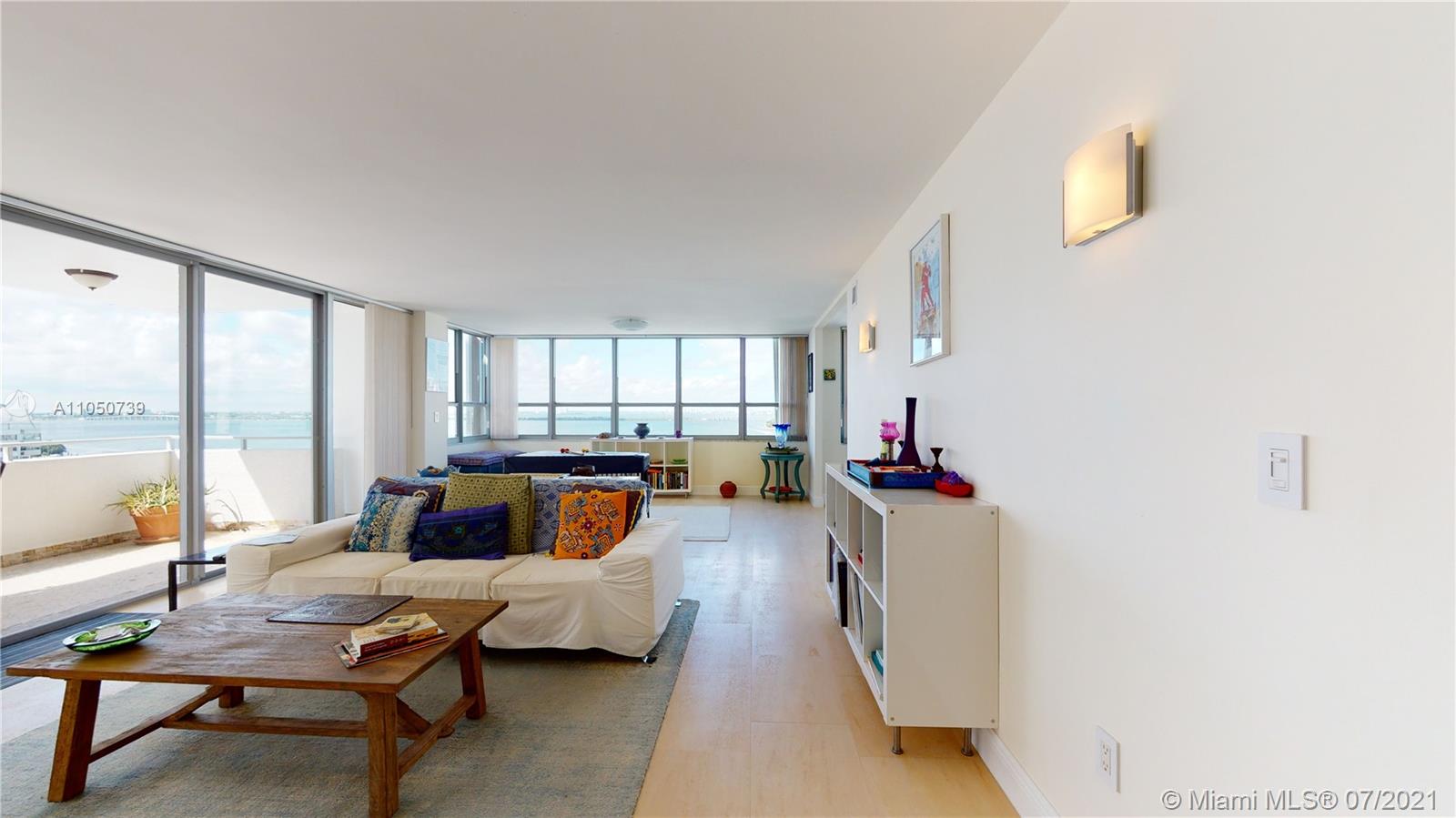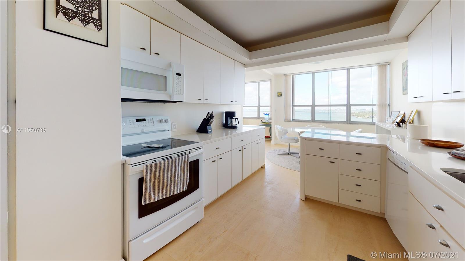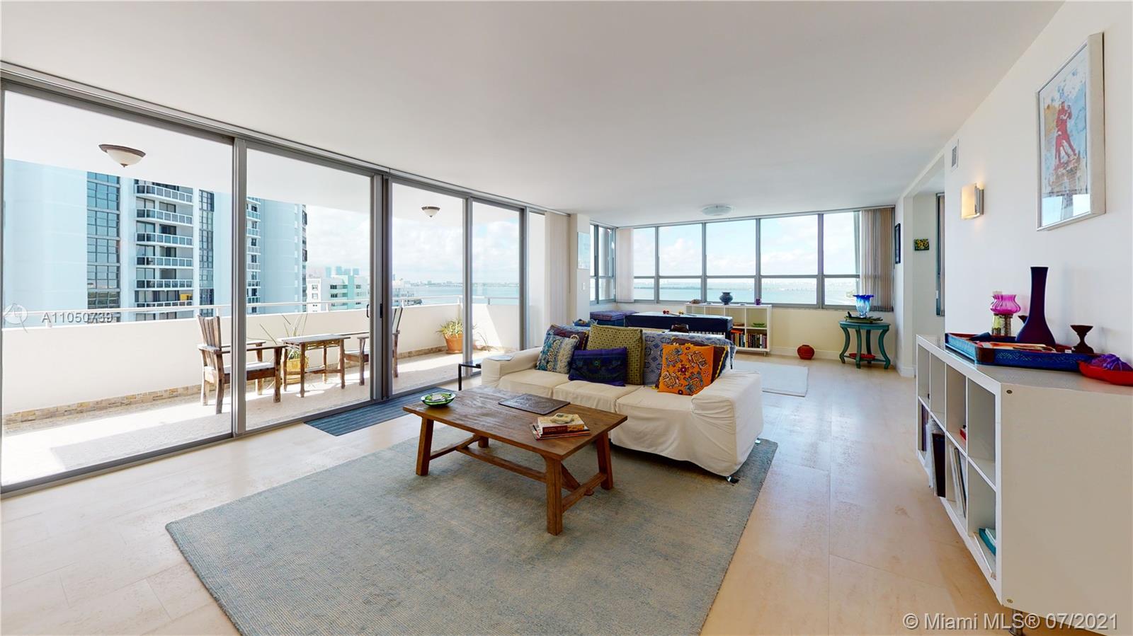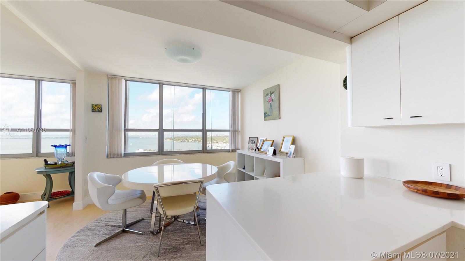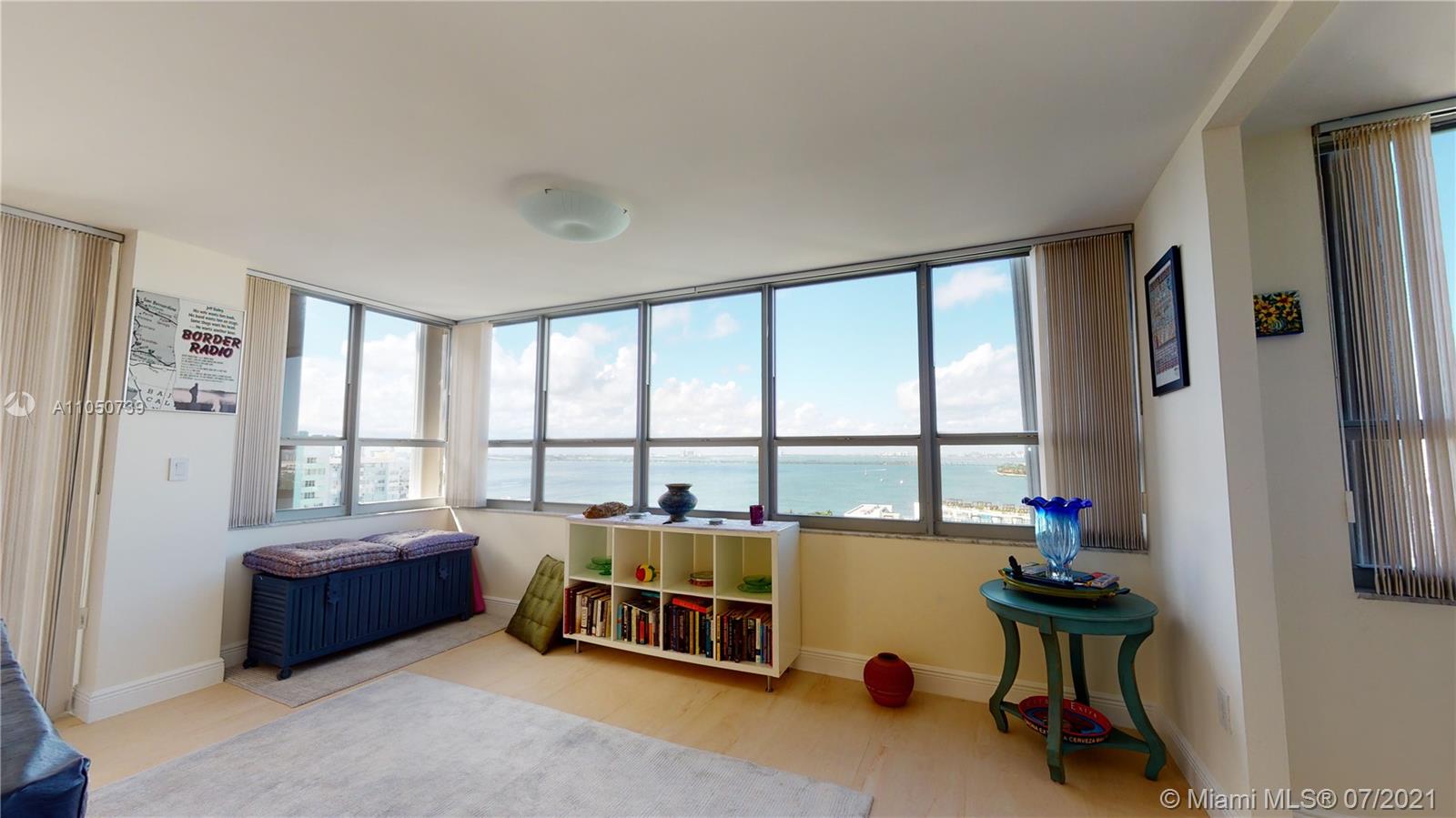 40 YR re-certified and well underway for clearing 50 YR in 2022. Clear blue skies, abundance of natural light, spacious rooms, ample storage, beautiful bay and marina views. Porcelain tile floors, impact windows/doors, ensuite bathrooms, HUGE balcony, and TONS of storage. Building renovations are underway-NEW hallways (completion 12/21), entry doors, lighting, wallpaper, elevators, fire sprinkler system, AC and more. Perfect location to enjoy the best of the Beaches and MIA. Everything you want to see or do-minutes away. Pet friendly building, and you can install a washer/dryer in the unit.