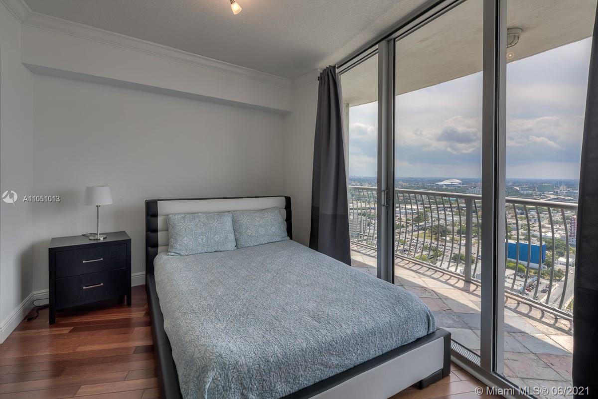 Stunning 2 bedroom 2 bathroom furnished condominium. Beautiful corner unit on the 43rd floor with spectacular city views and located in the heart of The Performing Arts Center District. Great location and close to main highways, South Beach, downtown and Brickell. Kitchen has granite countertops and stainless steel appliances. Sliding glass partitions open up to a second bedroom or to expand the living area and views. The terrace extends the entire length of the condo. The Building allows 30 day minimum rentals / 12 times per year and is ready to produce or for a second home owner. Great amenities with a pool overlooking Biscayne Bay, 2 jacuzzis, spa, gym and sauna. Valet Parking & 24 Hr Lobby!!!!
