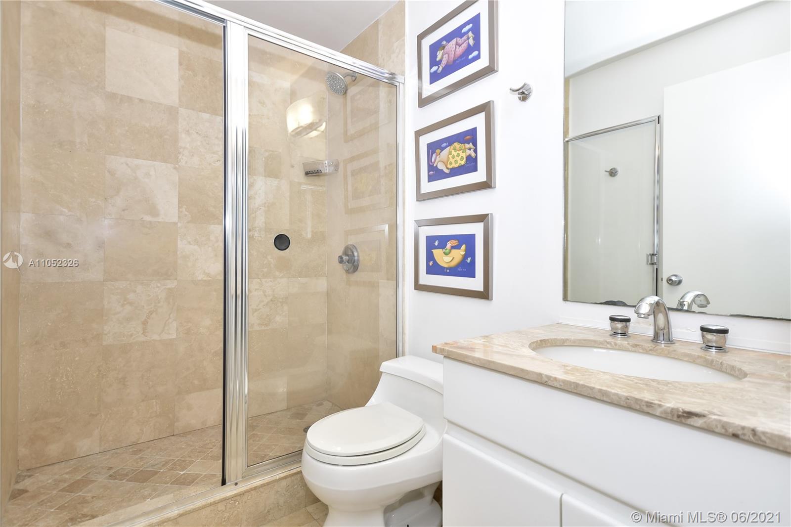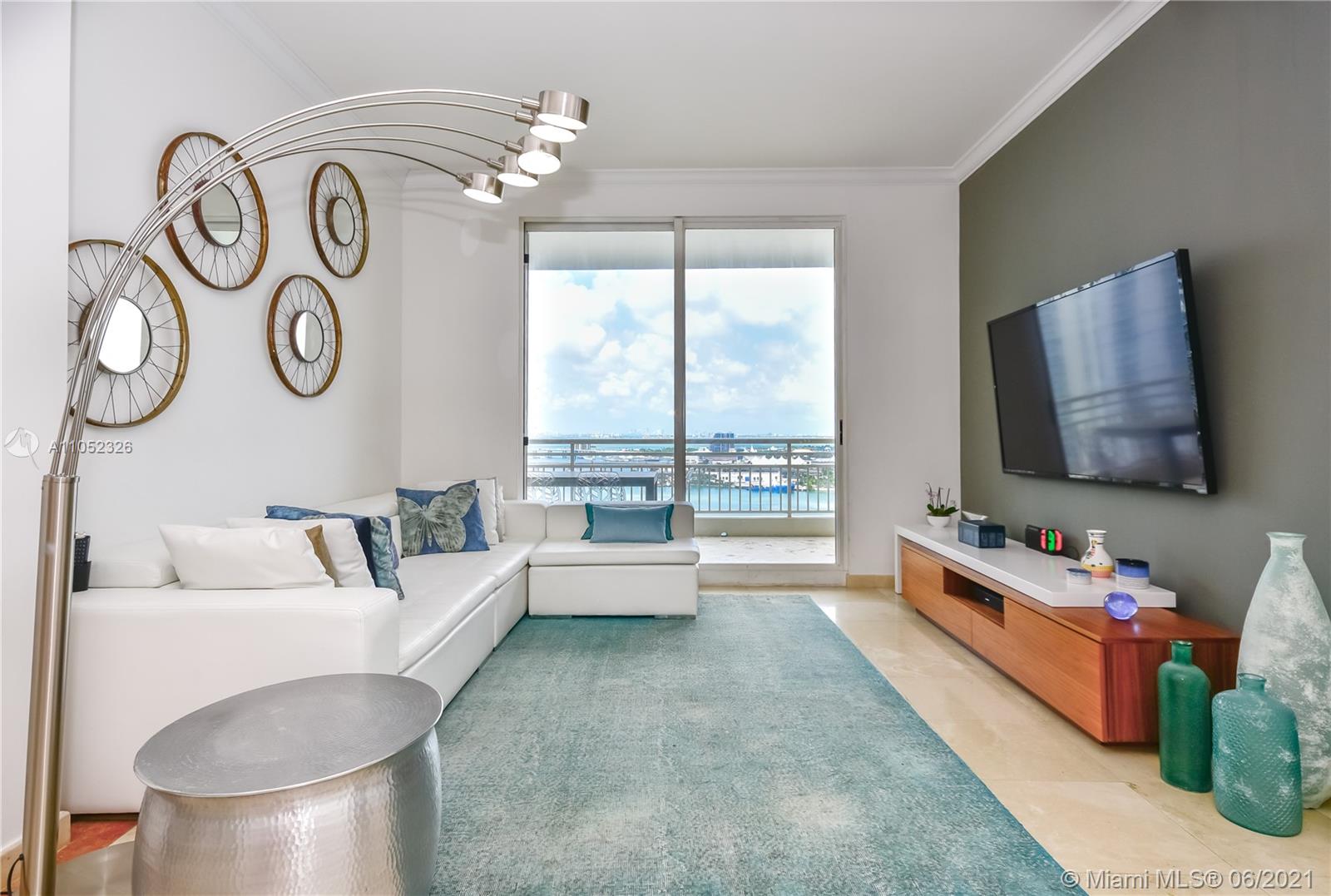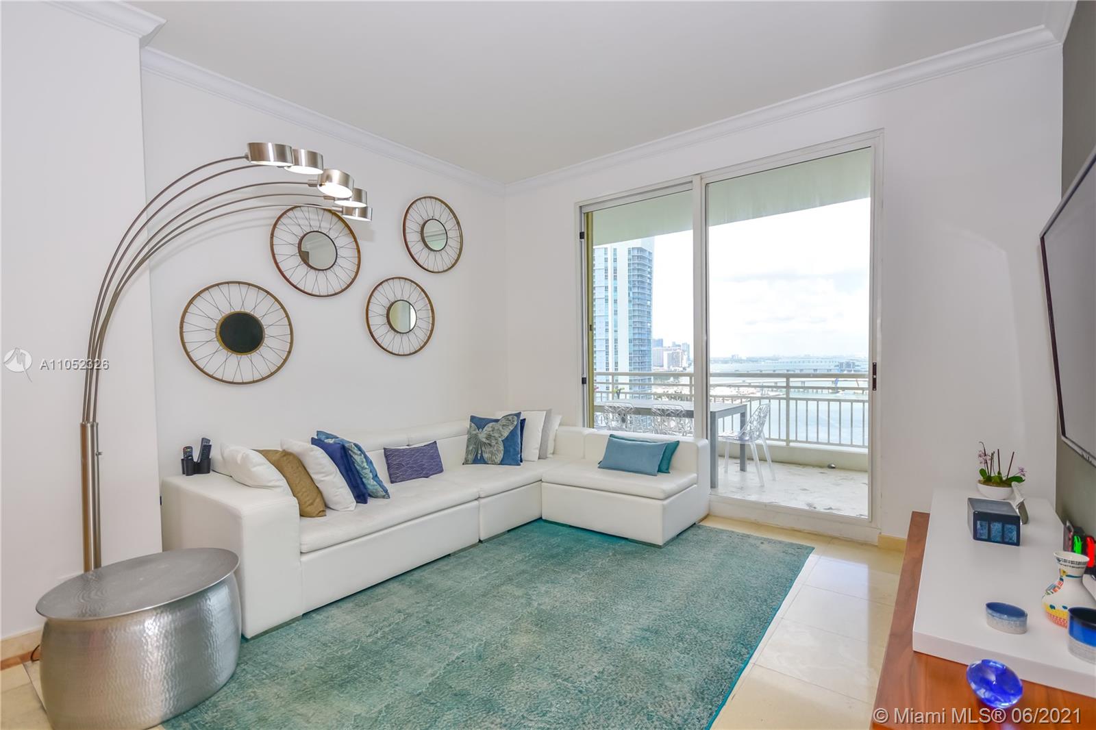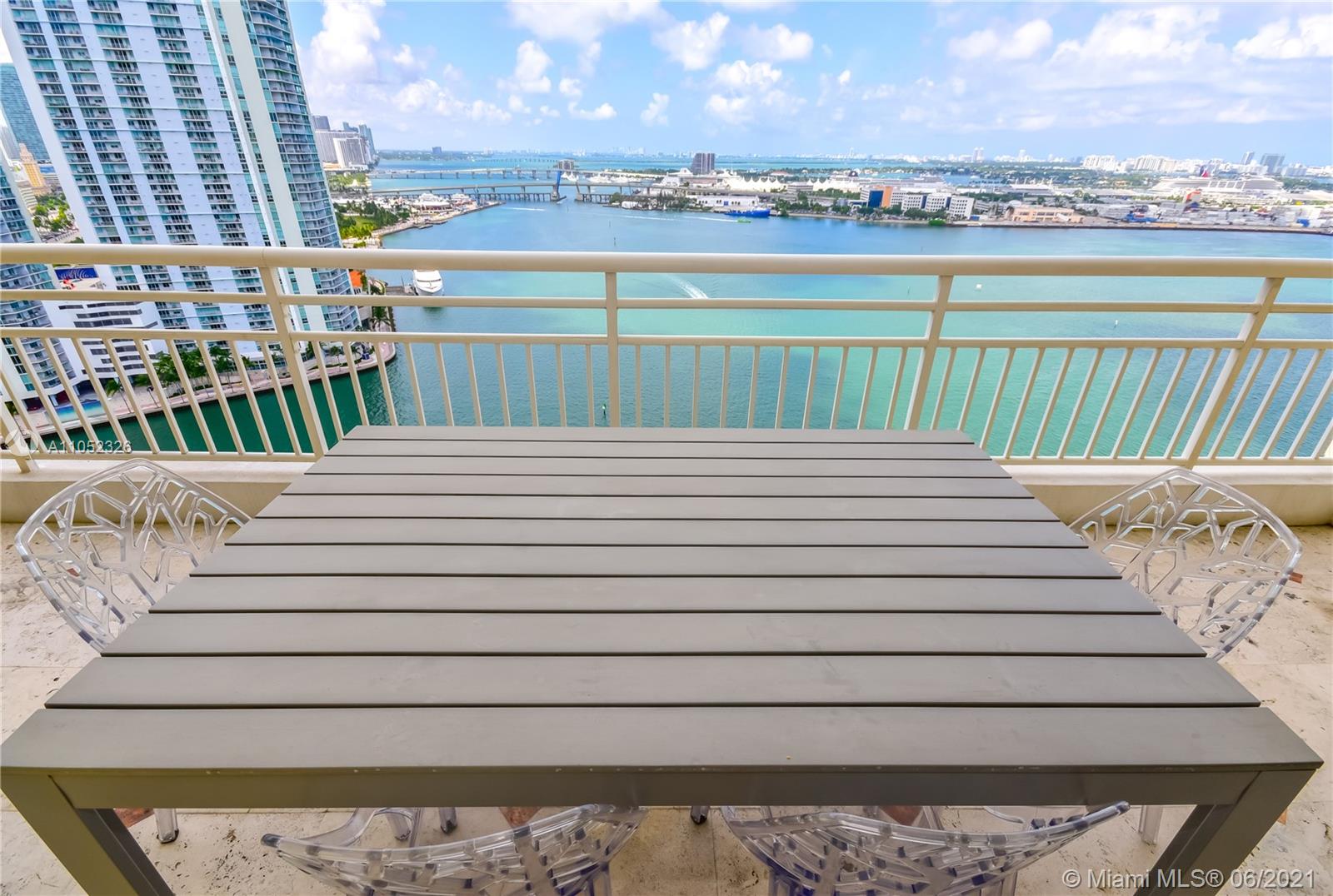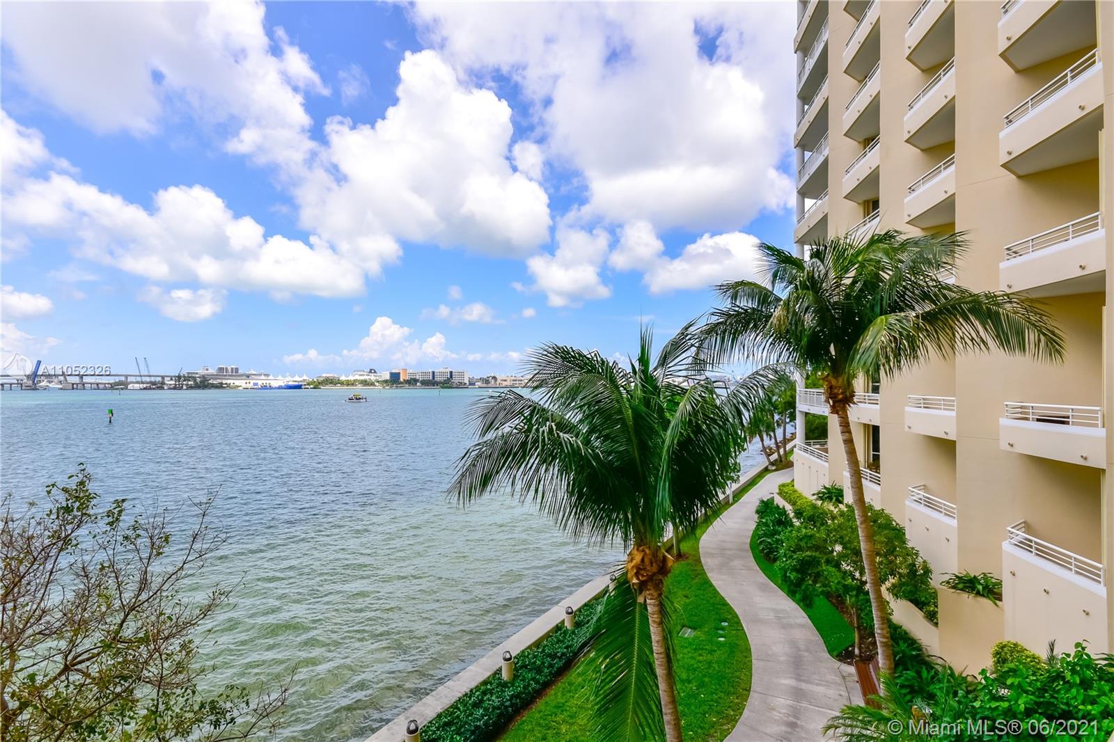 Breathtaking bay views from this 3 bed 2.5 bath unit in the exclusive Brickell Key, a private island that offers children’s playground, park, restaurants, deli market, etc. Full service condo with concierge, pool, BBQ area, clubroom, squash court, business room, gym, sauna and valet. 2 assigned parking spaces. Pest control, basic cable and internet provided by the condo association.
