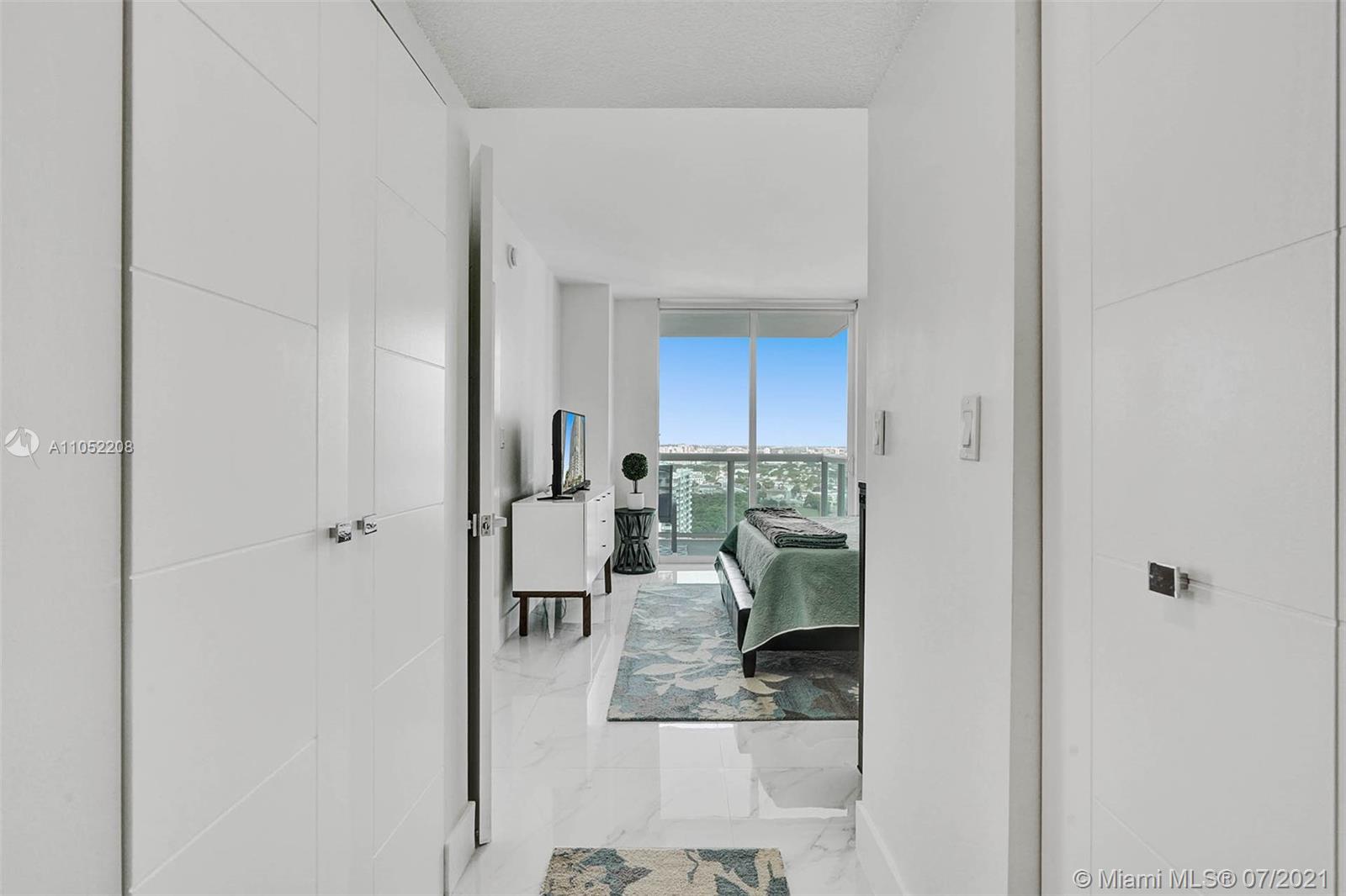 Substantially remodeled luxurious unit on the 28th floor at the 1800 Club Condo in the heart of Edgewater. This 2 bedroom and 2 bath features white porcelain floors throughout, modern kitchen, quartz counter tops, stainless steel appliances, custom master bedroom walk-in closet. No details have been spared in this unit with custom design finishes throughout. Other Upgrades include: custom kitchen with quartz countertops, custom bathroom vanities, showers, recessed lighting, Tankless Water Heater, custom doors, and more. 1 parking space deeded, large storage. Full amenities building, state of the art gym sauna $ steam room, water included in low HOA. Walk to Margaret Pace Park. 2 blocks to people Mover, 5 Minutes to Downtown Miami, The design District, Midtown, Wynwood, Miami Beach.
