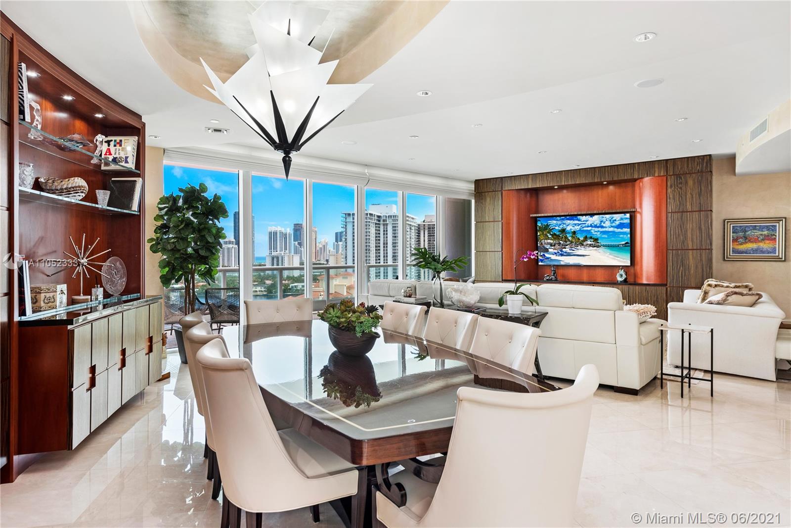 Beautiful corner apartment with delightful design in Porto Vita's prestigious North Tower. One-of -a-kind unique wood built-ins, hand painted walls, custom Murano Glass light fixtures, new AC, new washer and dryer, expansive terraces with sweeping Oceanview and City views. This is a 5 Star resort life style living with Fine Dining Restaurants and Bars, Fitness and Bar Center, Tennis Complex, Tot Playground, Pool side services and attendants. Docks are available for rent.
