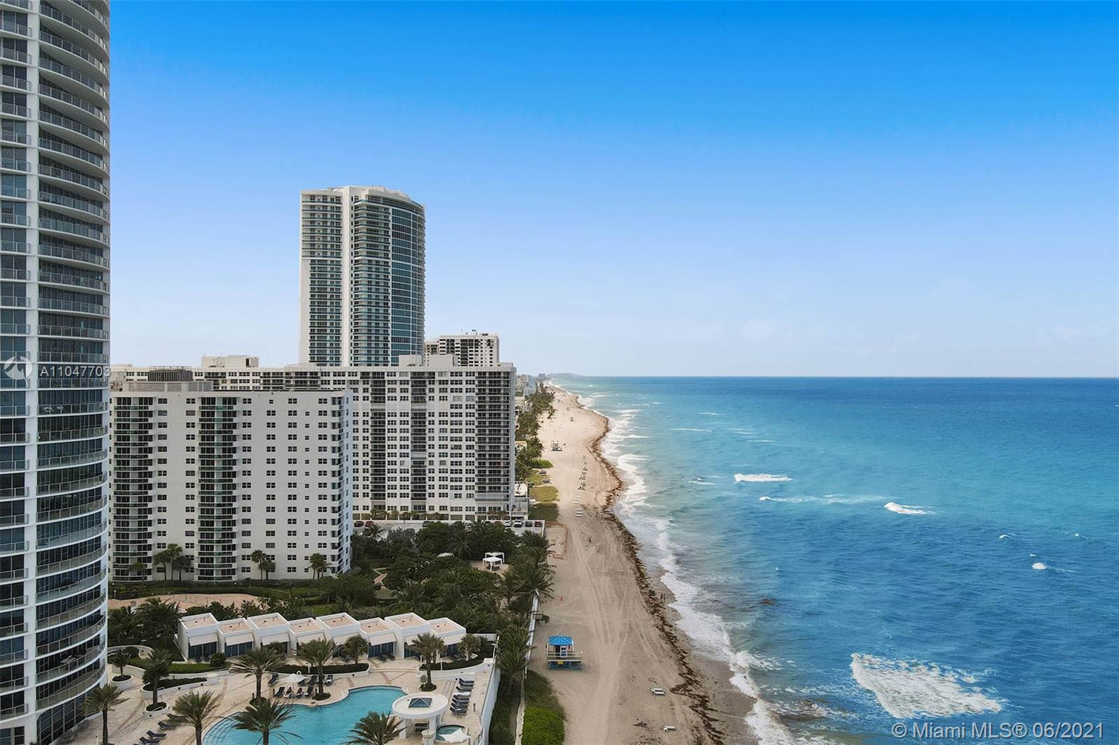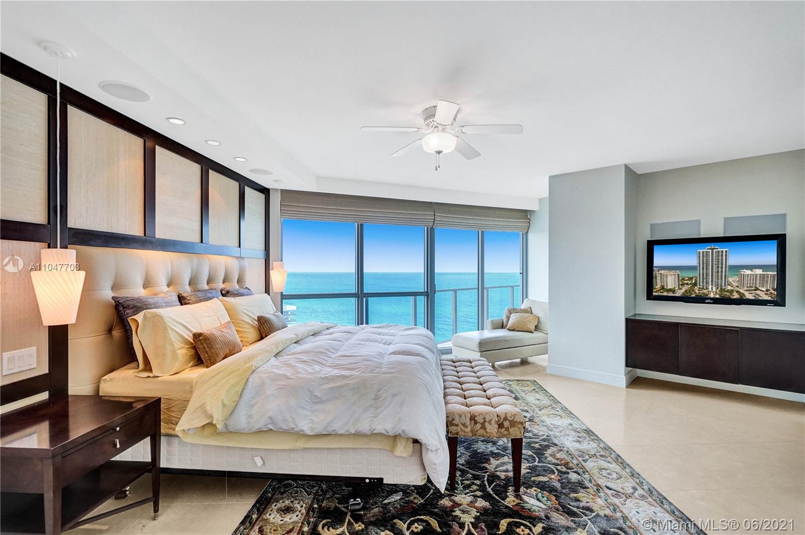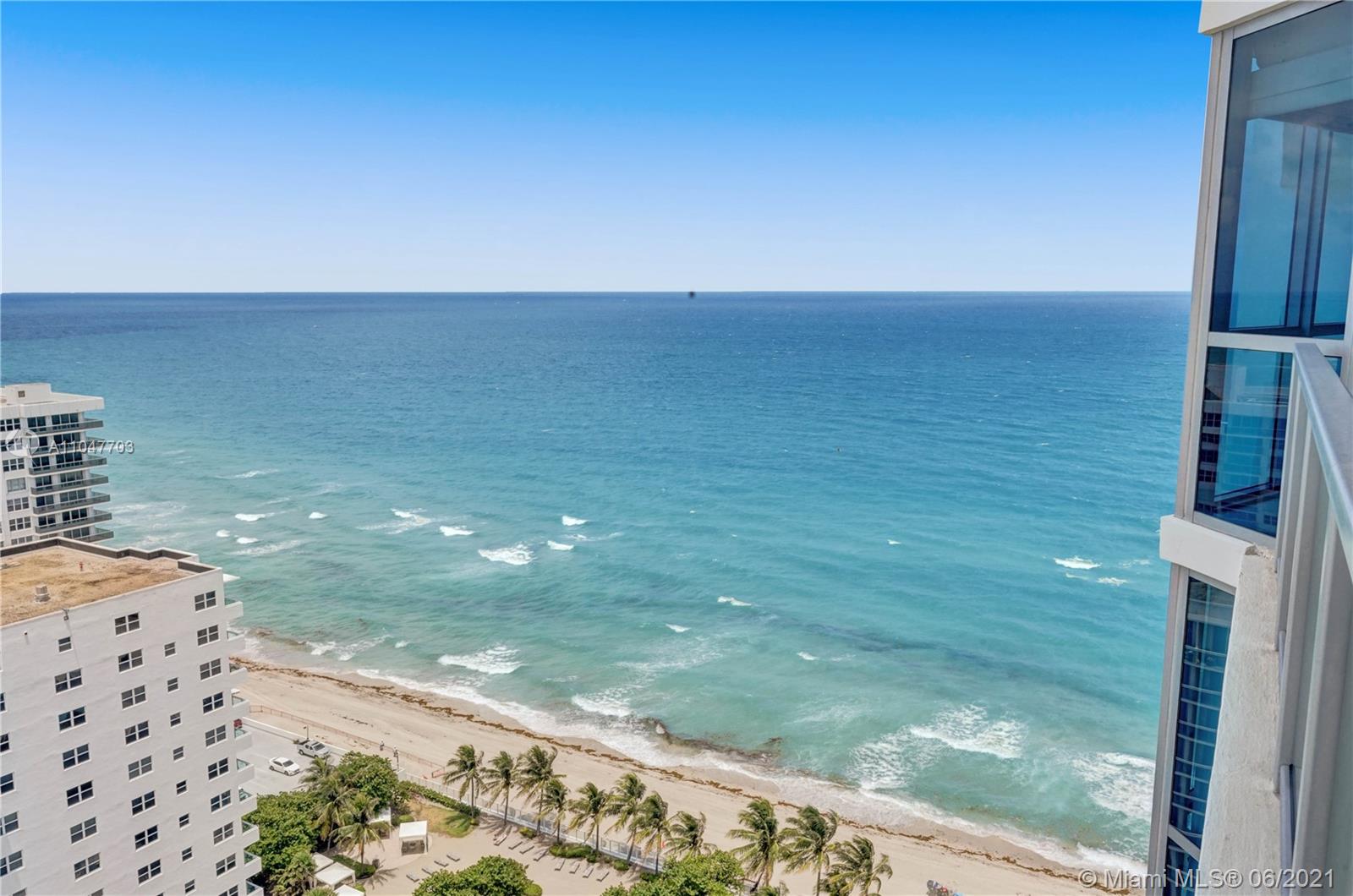 Incredible opportunity to own a luxurious villa in the sky. Panoramic ocean and Intracoastal views from every room through floor-to-ceiling glass. Designer touches by Steven G are everywhere: faux painted elevator doors, suede-covered suite doors, custom wall treatments in river stone, wood and tile. Other finishes and features include marble floors, granite counters, Italian cabinetry, high-end appliances, Jacuzzi tub, frameless glass shower, and built-in closets. Private elevator. Two parking spaces. Turnkey furnished. Ocean Palms is a majestic and modern tower located on 240 feet of beautiful Hollywood Beach. The five-star amenities include a two-story fitness center, spa with sauna and massage rooms, media room, party room, billiard room, ocean-side pool, hot tub, and tennis courts.
