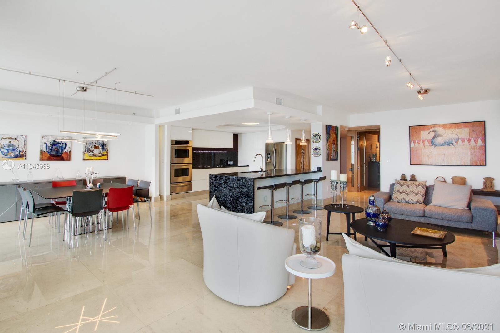 Turnkey! Beautiful & fully upgraded 4Bed/4.5Bath+Movie theater flow-though residence with spectacular Intracoastal & ocean views in luxury Peninsula II. Renowned Arquitects Antorsi/Lancara from Anil Arquitectura designed this contemporary masterpiece. Special features include an open modern kitchen with exquisite countertops and s/s appliances, formal living/dining room, custom designed bathrooms and closets, oversized marble flooring and recessed/accent lighting. Master bedroom has a sitting area, his/her custom built closets, Hunter Douglas electric shades and access to a separate balcony with gorgeous sunset views. Mesmerizing vistas from every corner of the home. Amen. include 2 pools, 2 gyms, sauna, spa,BBQ, tennis courts.Valet.Storage. Best location in the City of Excellence,Aventura
