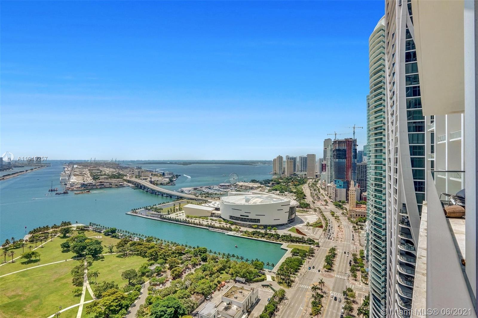 2BD/2.5 BTHS unit with breathtaking views of Biscayne Bay and Miami Beach. Unit features custom build in closets in both bedrooms, top of the line finishes, granite countertops, Viking appliances, white porcelain tile floors, large balcony, and private elevator. Luxury building with 24 hrs doorman, valet, spa, estate of the art exercise room, pool and much more! And, just minutes away by car: the American Airlines Arena, Brickell Avenue’s Mary Brickell Village and South Beach.