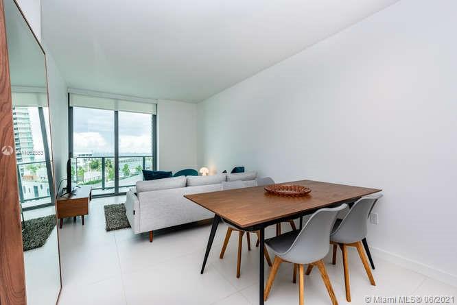 Architect’s pied a Terre, beautifully furnished and fully equipped apartment for sale 1 bedroom with 1.5 bath with shared shower. Newly installed custom walk-in closet, solar shades and blackout in bedroom. JUST BRING YOUR CLOTHES TO MOVE IN!! Unit features Porcelain floors, Italian kitchen and bathroom cabinets, quartz counters, Bosch appliances, washer/dryer, full height windows, balcony facing the bay and one parking. Paraiso Bayviews designed by Arquitectonica and Karim Rashid, includes gym, roof pools, sun decks, barbeque areas, tennis & basketball courts, spa, children playroom, teen room & billiards, tennis court. 24 HR lobby attendance, valet. Easy highway access, & walking distance to midtown.