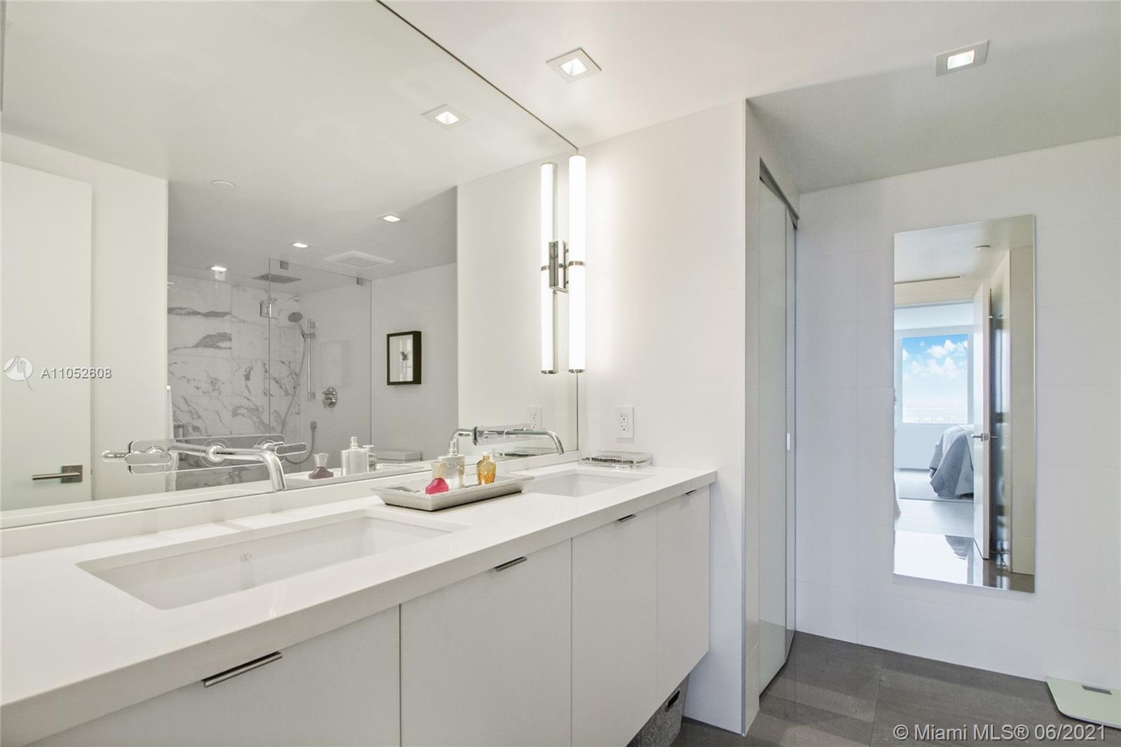 Rarely available SW exposure corner residence with 314 sq ft wrapped around terrace. Absolutely turn key, entirely renovated with flawless finishes, from Italian porcelain floors to new appliances. This magnificent apartment bears impact windows and sliding doors throughout. The opened kitchen is an invitation to entertain guests around the quartz countertop, completed with quartz backsplash and custom Italian cabinetry. Remodeled bathrooms with Carrera marble and DXV Fixtures, and walk in closet in master bedroom. One of the best line at South Pointe Tower, enjoy watching cruise ships sailing out from Port of Miami, thanks to unobstructed and breathtaking views of Govt Cut as well as South Pointe Park, Fisher Island and Miami skyline views