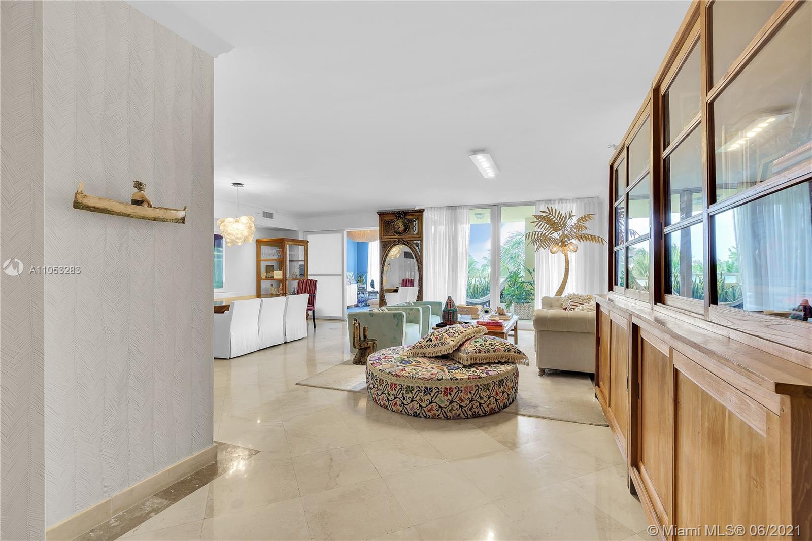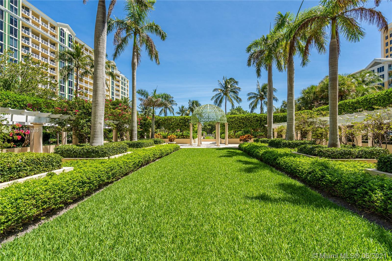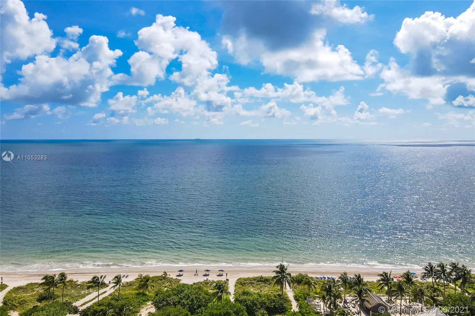 Luxury Ocean-Front complex next to Ritz Carlton in Key Biscayne. Elevator open directly into private foyer leading to this spacious 2 Bed, 3 Bath residence plus Den w/access to extended terrace; immersed in a tropical setting overlooking vast gardens and central fountain. Travertine floors throughout. Open living/dining area. Kitchen w/white cabinets & granite counters; top of the line appliances. Sperate laundry room w / access to service elevator & chute. Master suite w/ 3 walk-in closets and large bathroom; 2nd BD (21.4 x 12) w/ en-suite BH & many closets. A pleasure to show!