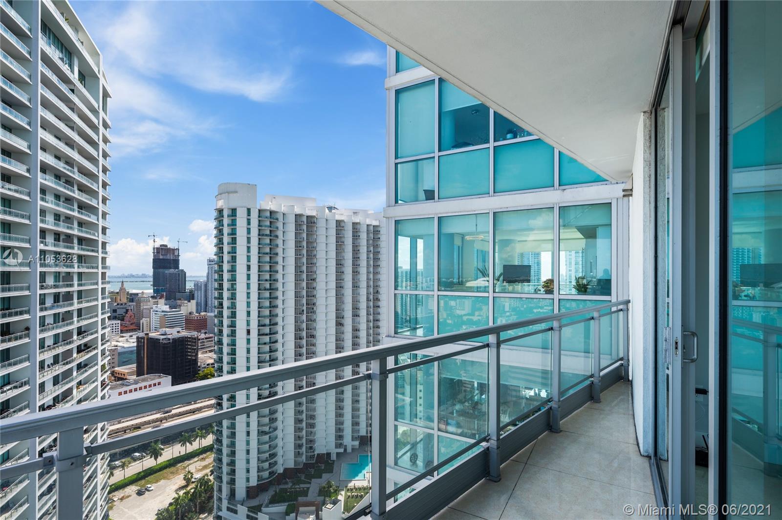 Completely updated luxury condo on desirable 10 line of the MINT condominium with 2 bedrooms, 2.5 baths on the 35th floor with great views of the Miami River, Biscayne Bay, Downtown Miami, and Brickell City Center. 24” x 24” tiles throughout the unit, including both balconies, stunning recently renovated baths, custom built-in closets, white screen shades in all windows, with full blackouts in the bedrooms, motorized shades, newly replaced cooktop, microwave and washer and dryer, modern lighting, and much more. Two balconies, gated community, with 5-star amenities. Ready to move in. Easy access to I-95, walk to Brickell City Center, Whole Foods and several high-end restaurants.