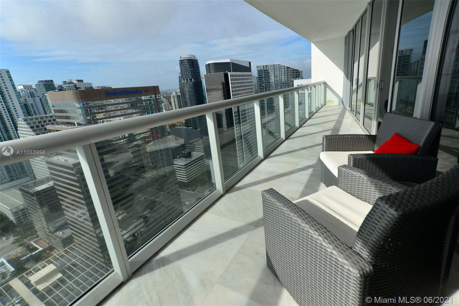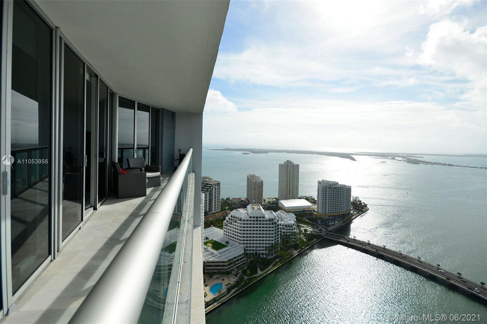 FOR SALE 2 BEDROOM 2 BATHROOM + DEN, 43TH STORIES ABOVE BRICKELL SKYLINE. BREATHTAKING WATER AND CITY VIEWS WITH FLOOR TO CEILING GLASS WINDOWS EVERYWHERE. EUROPEAN KITCHEN COUNTERS CREATE AN UPSCALE DINING AREA.WALKING DISTANCE FROM BRICKELL CITY CENTER, FINANCIAL AREA, RESTAURANTS AND SHOPS. BEST AMENITIES IN BRICKELL BY FAR! ****UNIT INCLUDE 2 ASSIGNED PARKING SPACES****. ***UNIT IS RENTED UNTIL OCT.19/2021 AT $3900/MONTH. BUYER MUST HONOR THE LEASE***