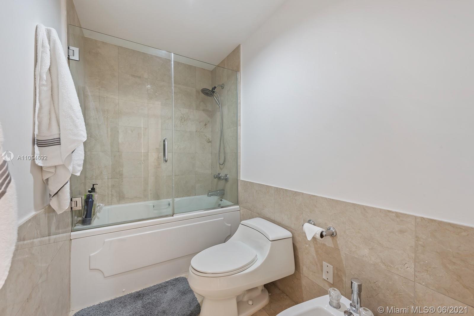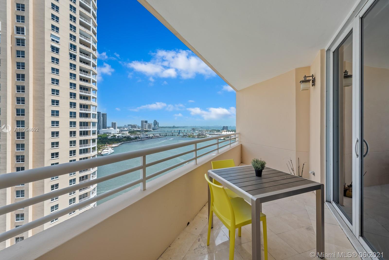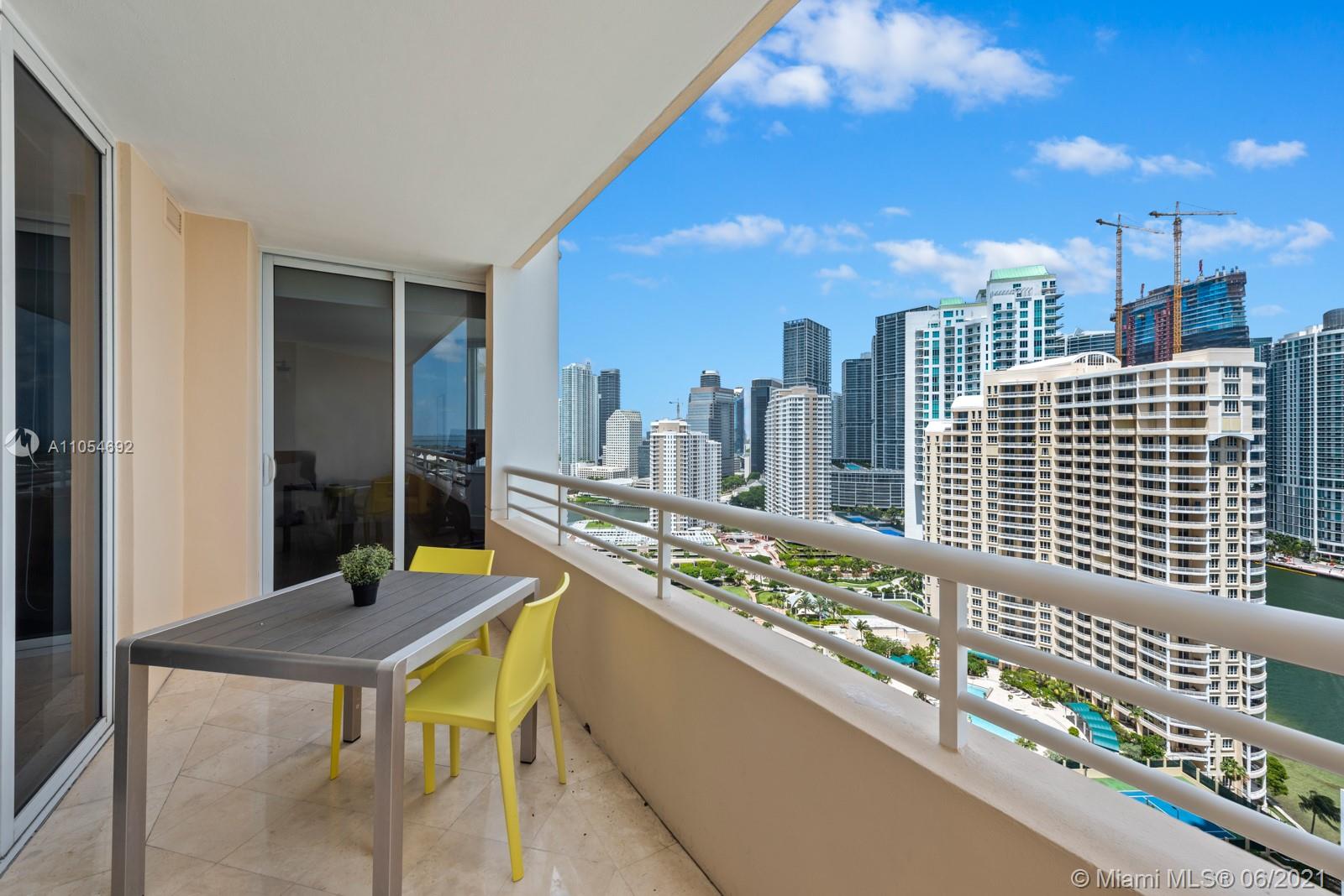 1 bed 1.5 baths condo in prestigious Two Tequesta Point building in Brickell Key Island. This high floor unit offers breathtaking bay, city skyline & island views. Large balcony, beautiful padded vinyl floors throughout, marble baths, California walk- in closet, open kitchen to living/dining room, brand new stainless steel appliances & granite countertops. Enjoy the dedicated barbecue area overlooking the bay & pool, two story bay front gym with basketball, squash & racquetball courts. Full service luxury building with 24 hrs concierge service and professional management. Brickell Key Island is a manicured community located only a short walk away from the Brickell Financial District, Brickell City Center & all area restaurants and entertainment venues.