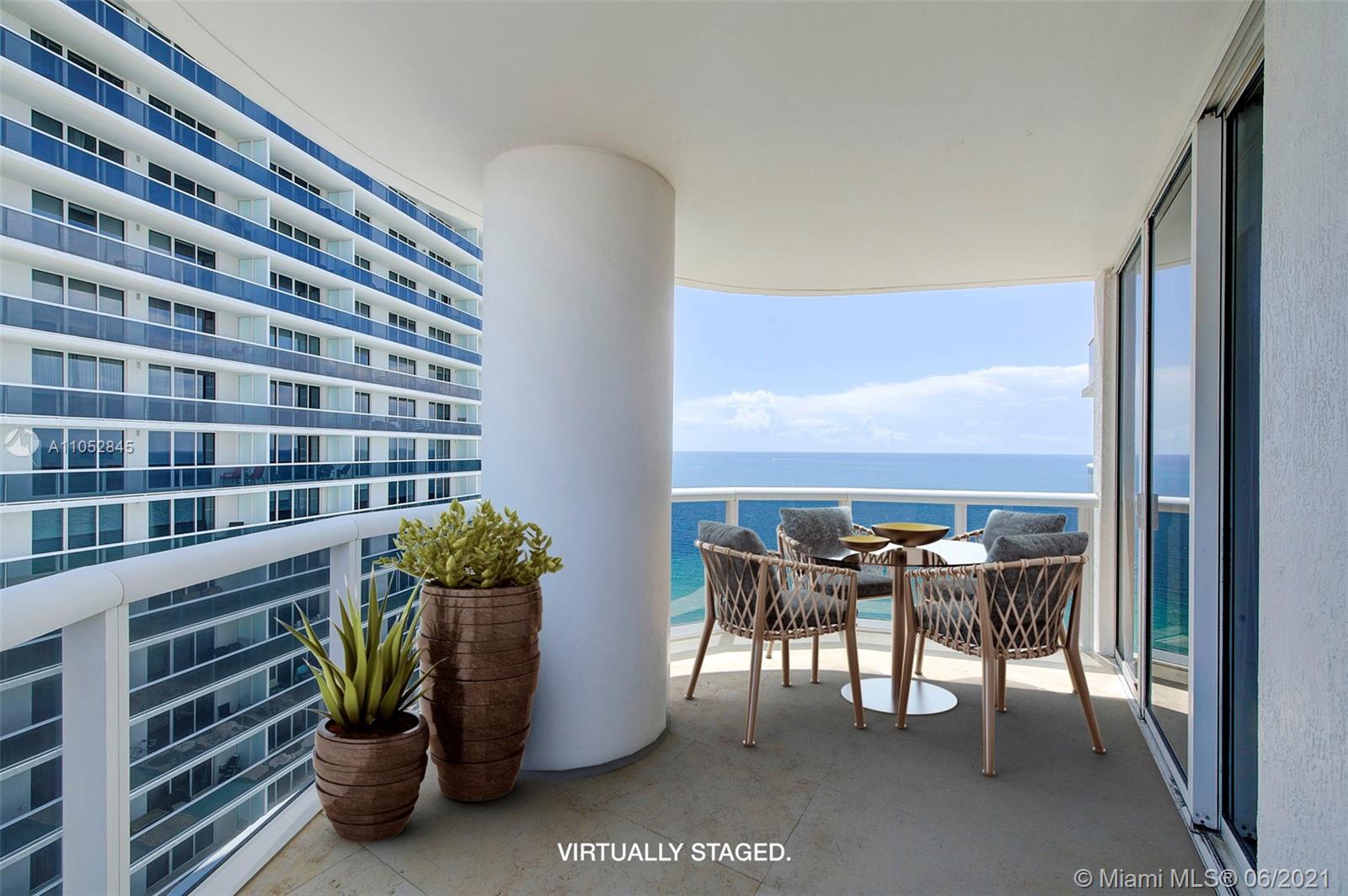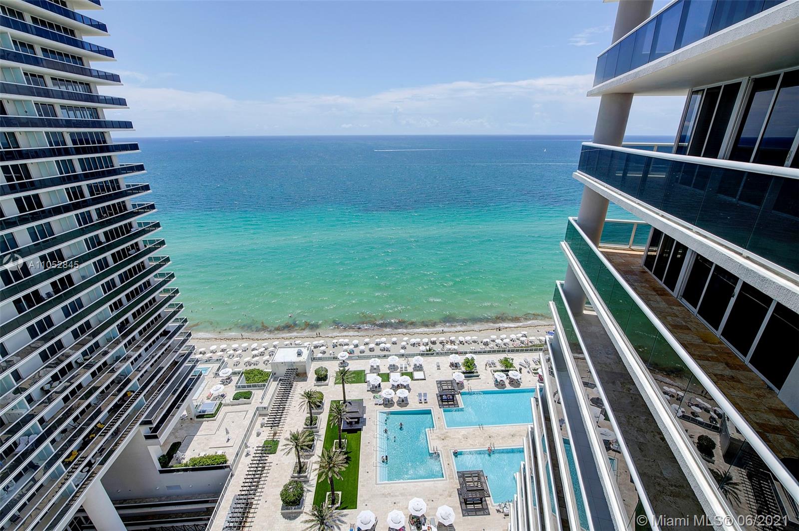 Rarely available spacious two bedroom two bath corner end unit with spectacular views of the ocean from the living areas and master bedroom. Perfect for gracious entertaining with 1,782 sq. ft. open layout. Delight in the breathtaking sunrises and sunsets from the expansive balconies (457 sq. ft.) Move-in ready, freshly painted, custom built in closet, marble flooring, Italian kitchen cabinetry & quartz countertops, laundry room. Two pets up to 25 pounds. Includes two assigned self-parking spaces & complementary valet for third vehicle. The Beach Club offers 5 star resort living with several heated pools, beach attendants, poolside cafe/bar, 50,000 sq. ft. fitness center, security, concierge and valet. Easy access to Aventura Mall, Gulfstream Park and the Shops at Bal Harbor.