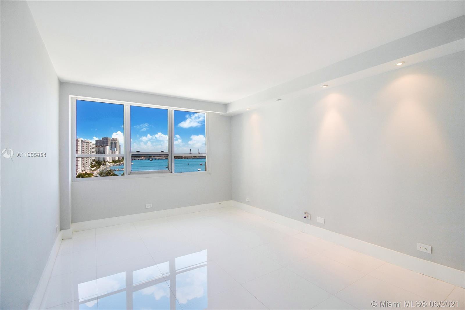 UPDATED and TOTALLY REMODELLED 2 bed/2 bath bay view unit showcases a high-end Italian kitchen, custom LED lighting on dimmers, upgraded designer chandelier, black out shades, impact windows and white marble floors. Popcorn ceilings and walls have been removed. Watch beautiful sunsets from your private balcony and cruise ships coming and going. Located just minutes from the beach and walking distance to Lincoln Road. An array of amenities include: infinity pool and spa, jacuzzi, fitness center, basketball courts, tennis courts, valet service, grocery store, restaurant with pool service, market/liquor store and more! The pool is newly renovated and features cabanas. Relax by the pool or take a walk to shops and restaurants or the beach. Flamingo Point has it all!